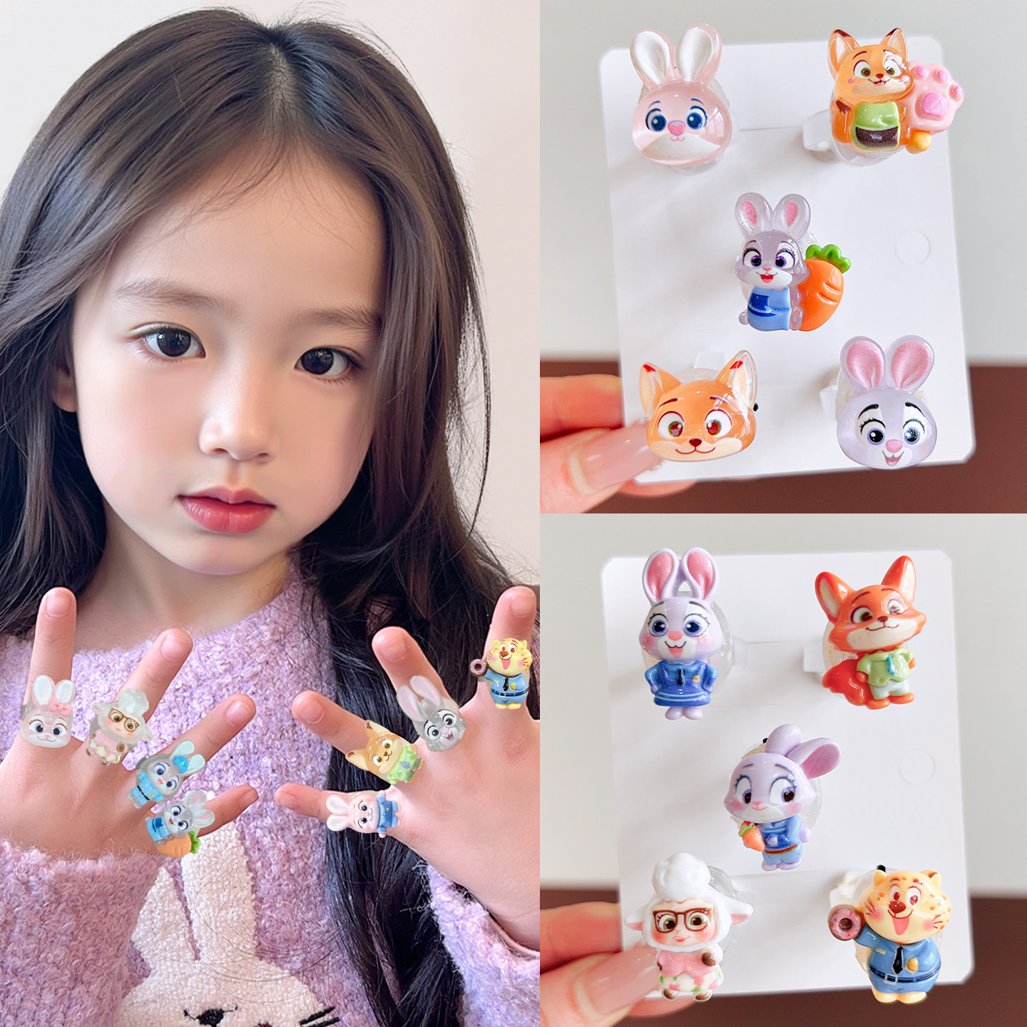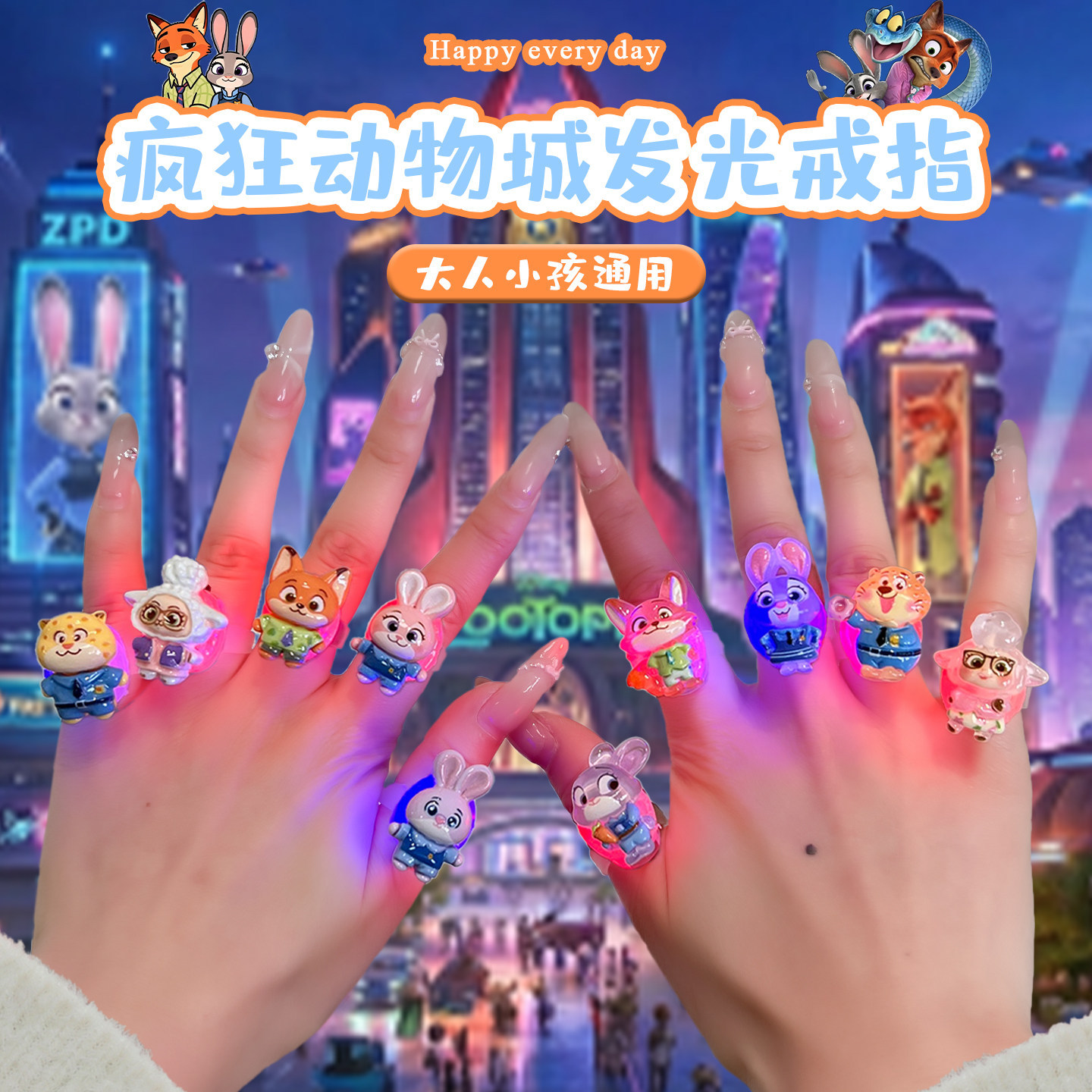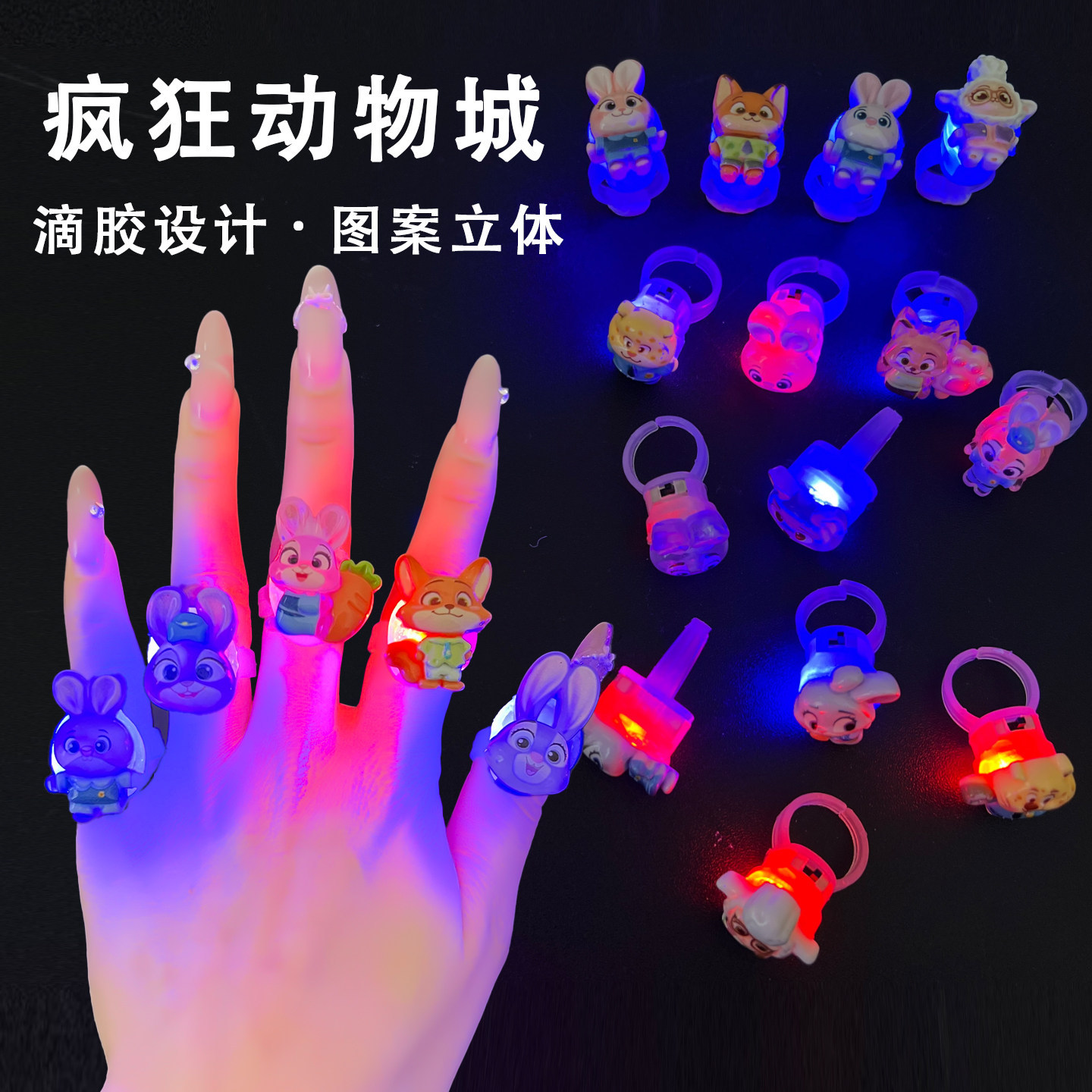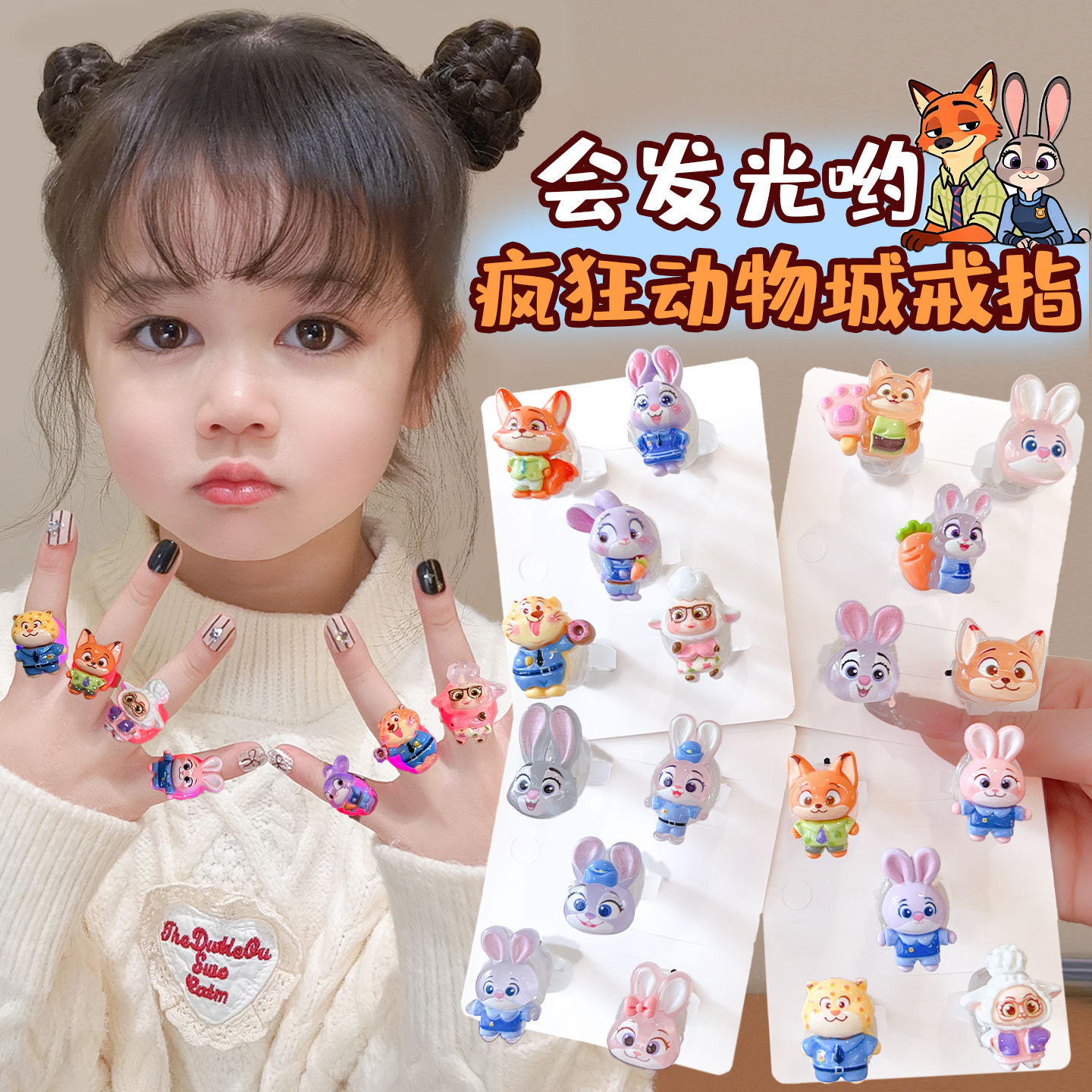 儿童发光戒指疯狂动物城兔子警官朱迪尼克宝宝玩具女童首饰套装