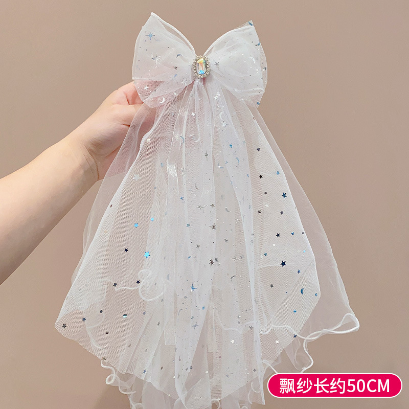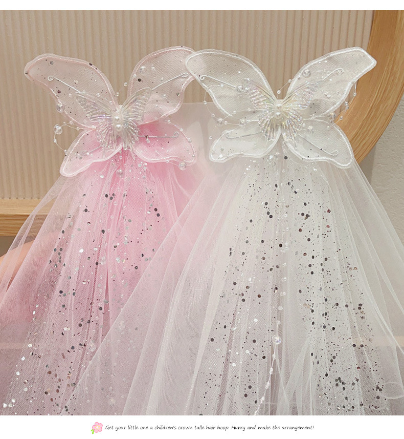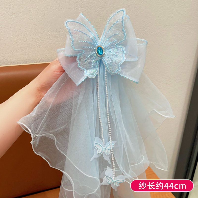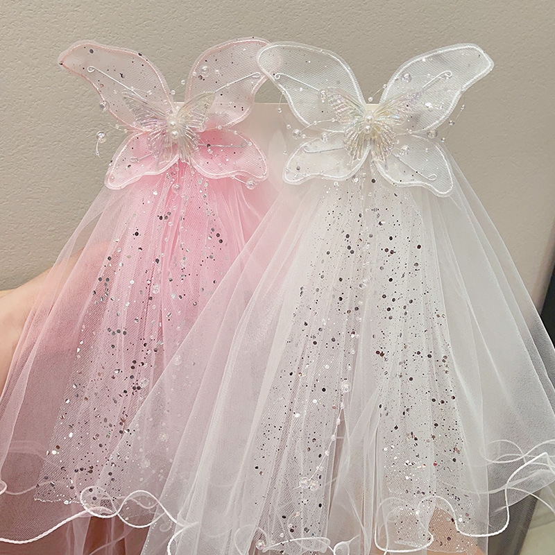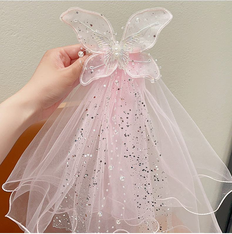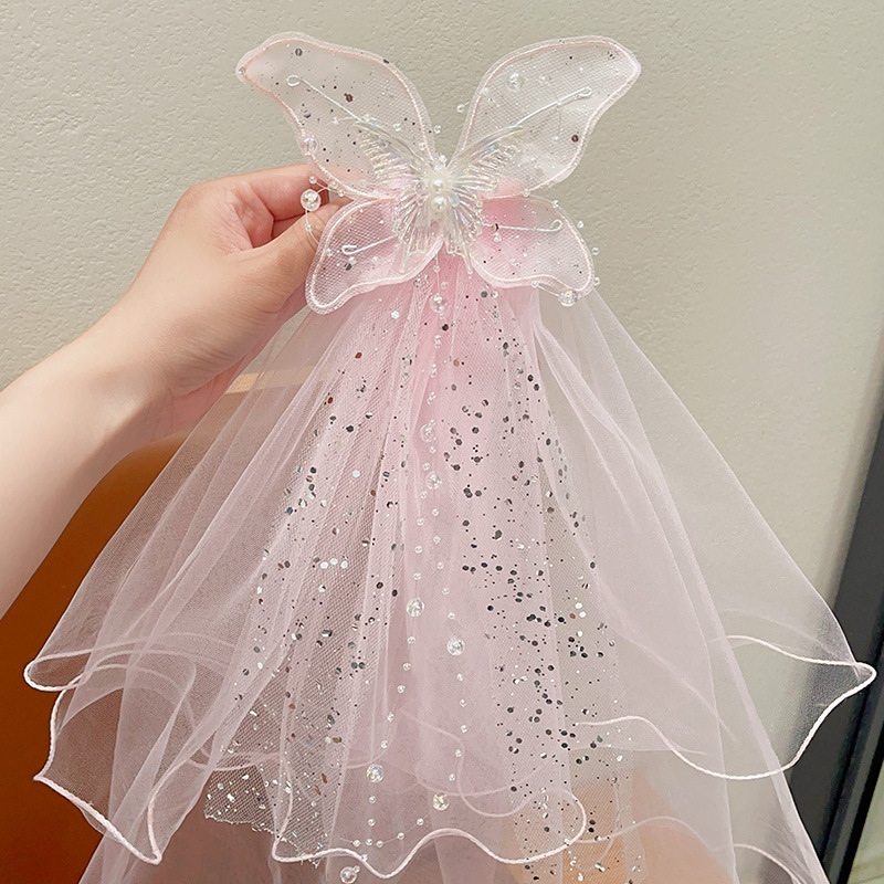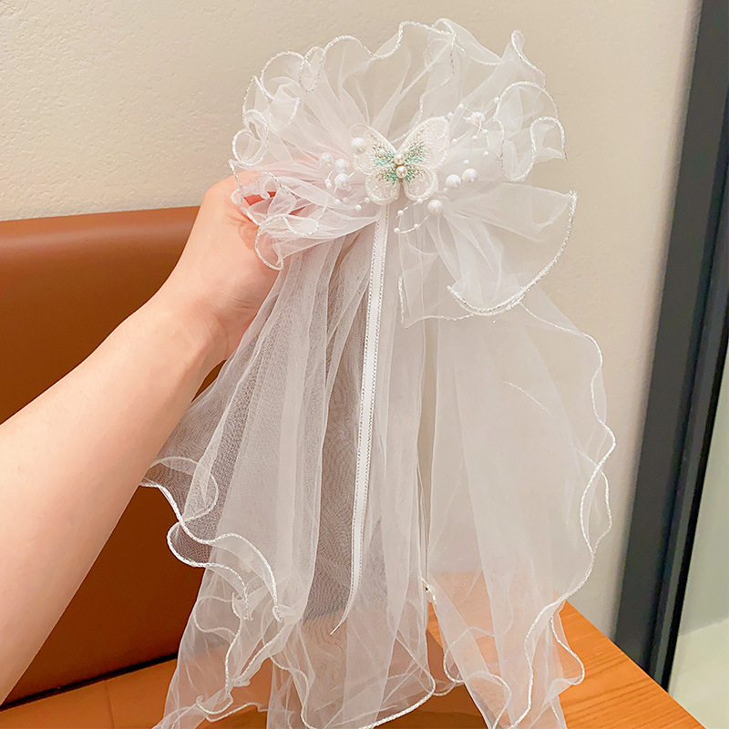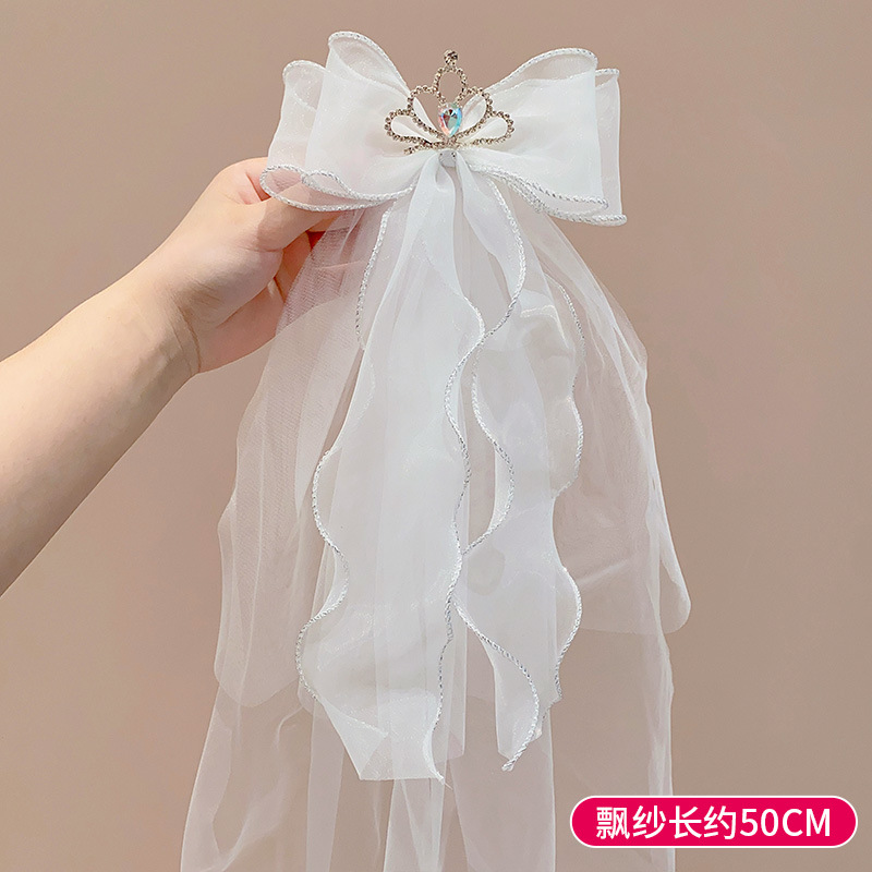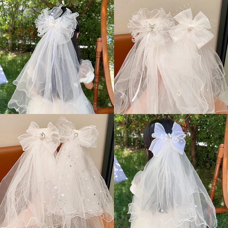 儿童公主裙头纱公主发饰超仙蝴蝶结发卡宝宝生日发夹婚纱花童头饰