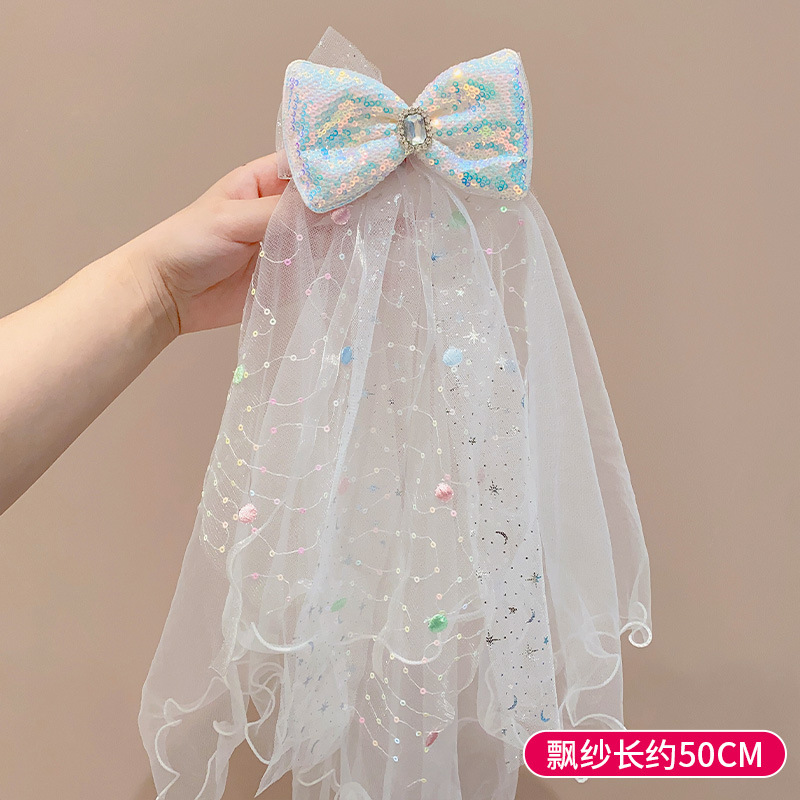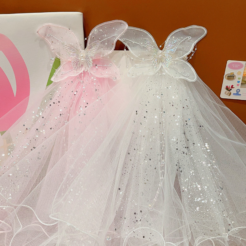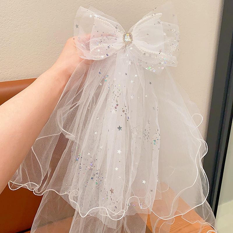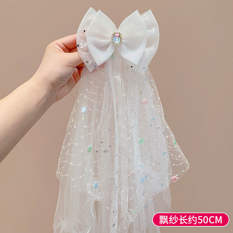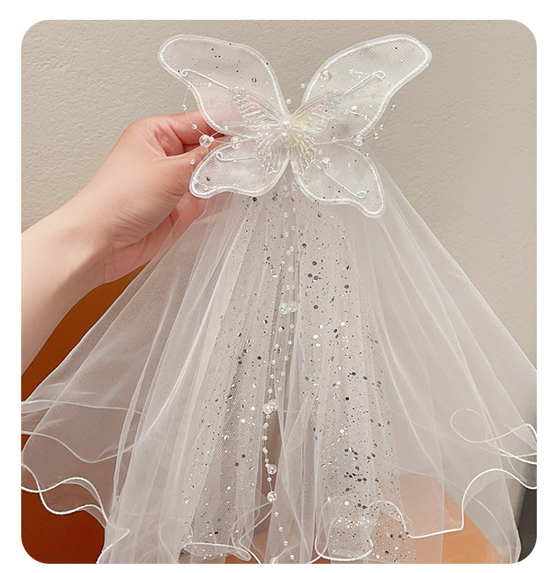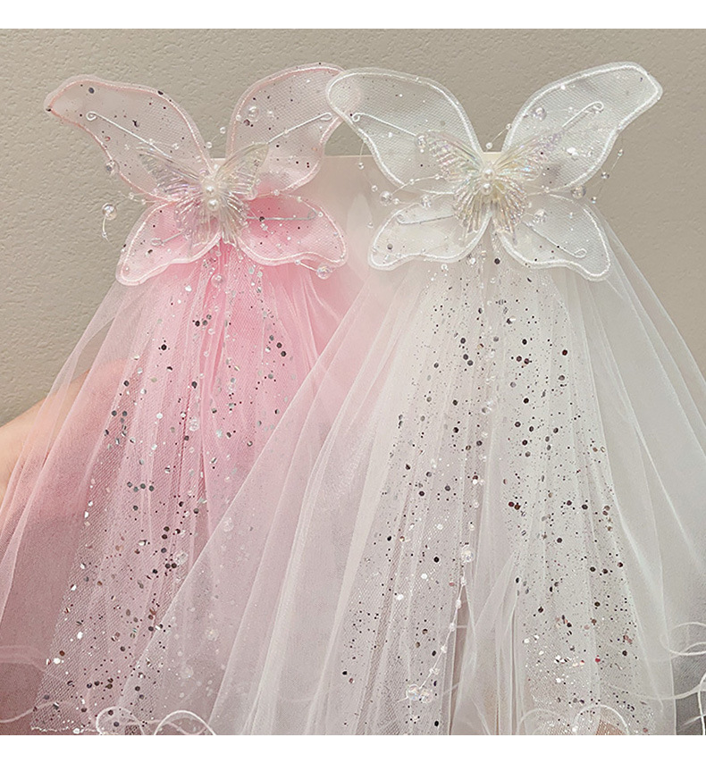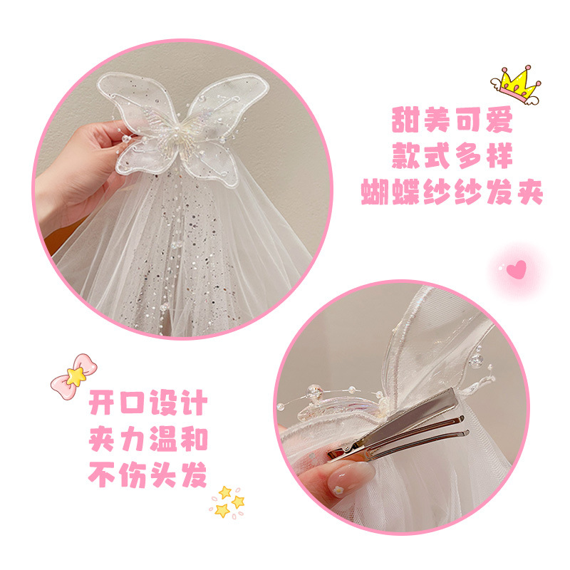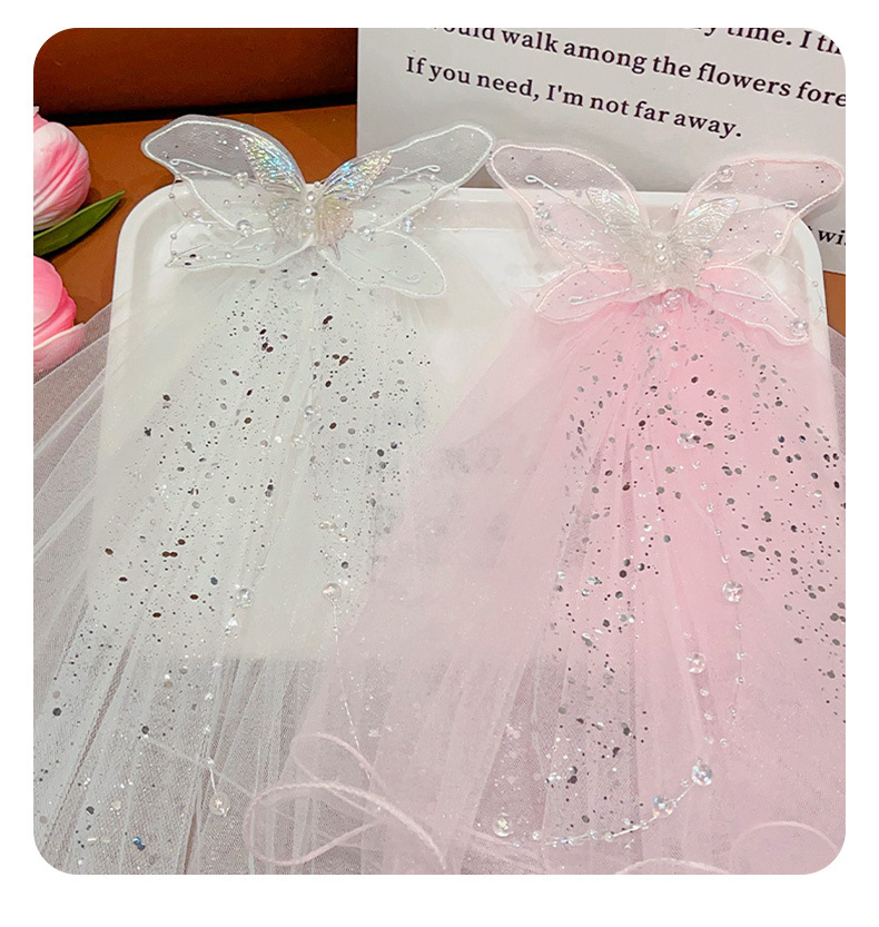 儿童公主裙头纱公主发饰超仙蝴蝶结发卡宝宝生日发夹婚纱花童头饰