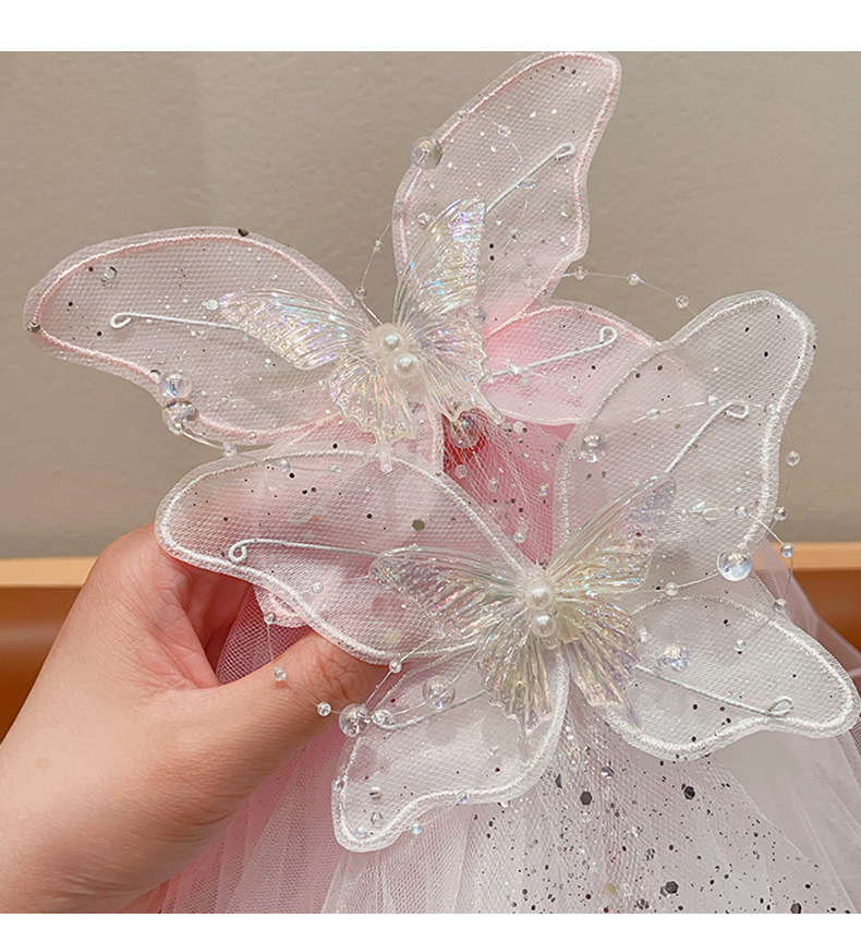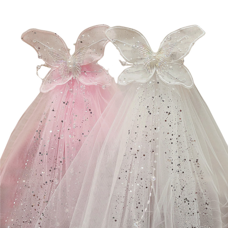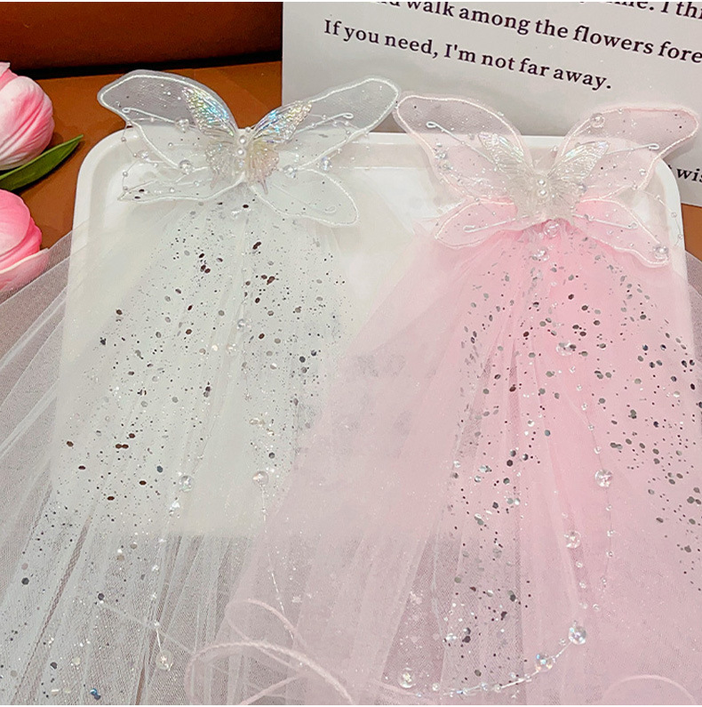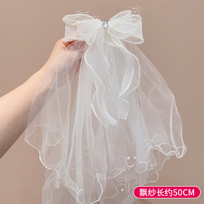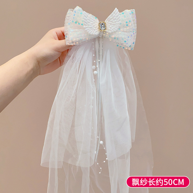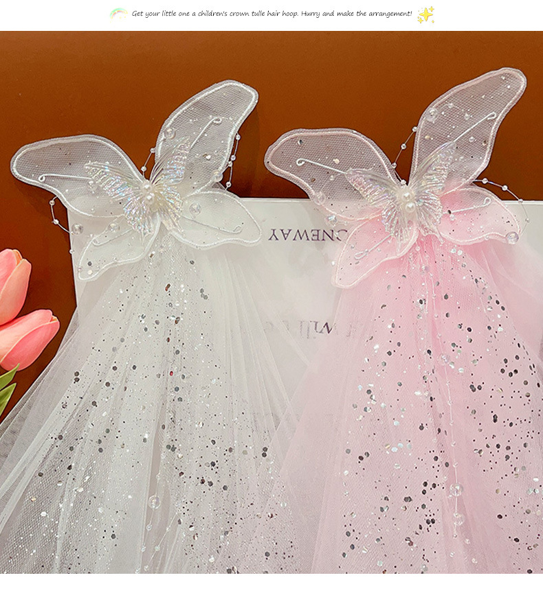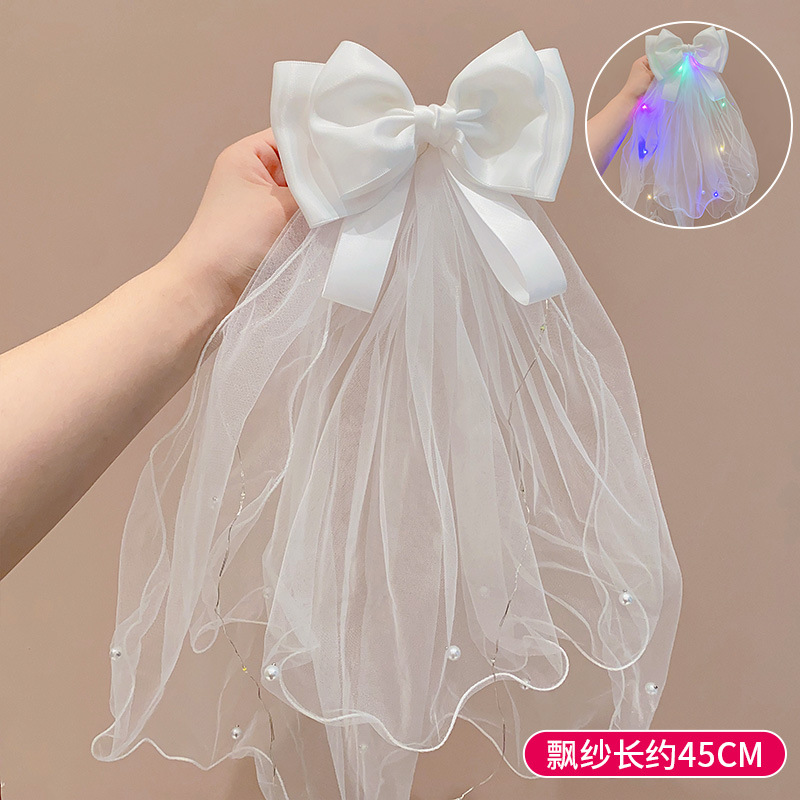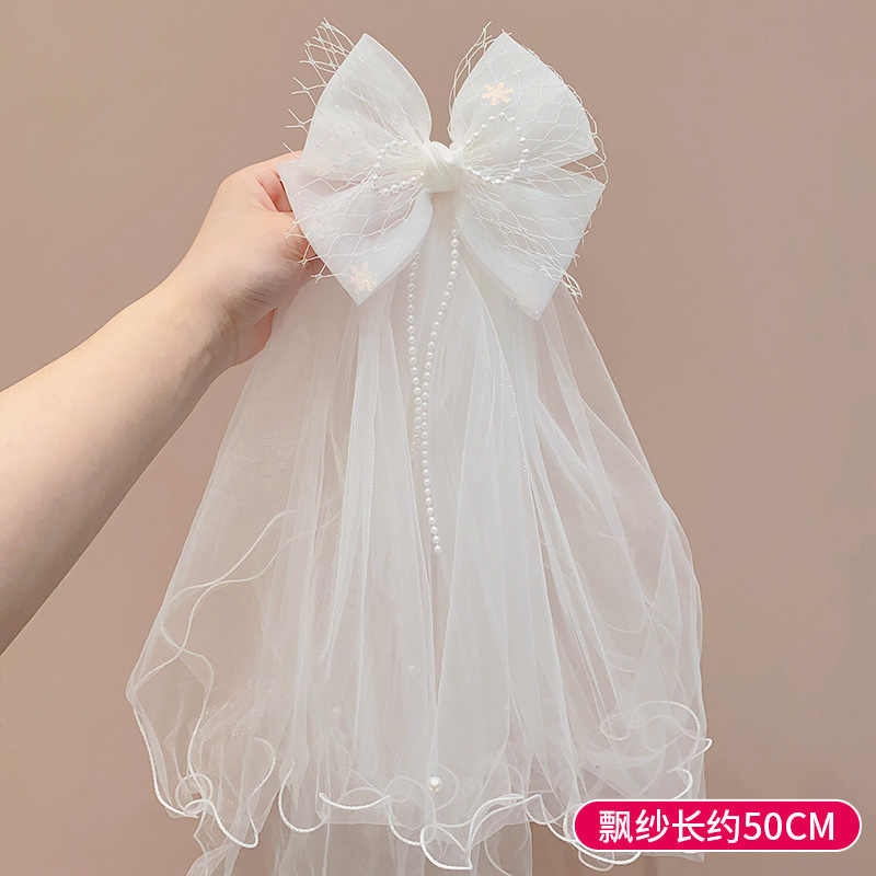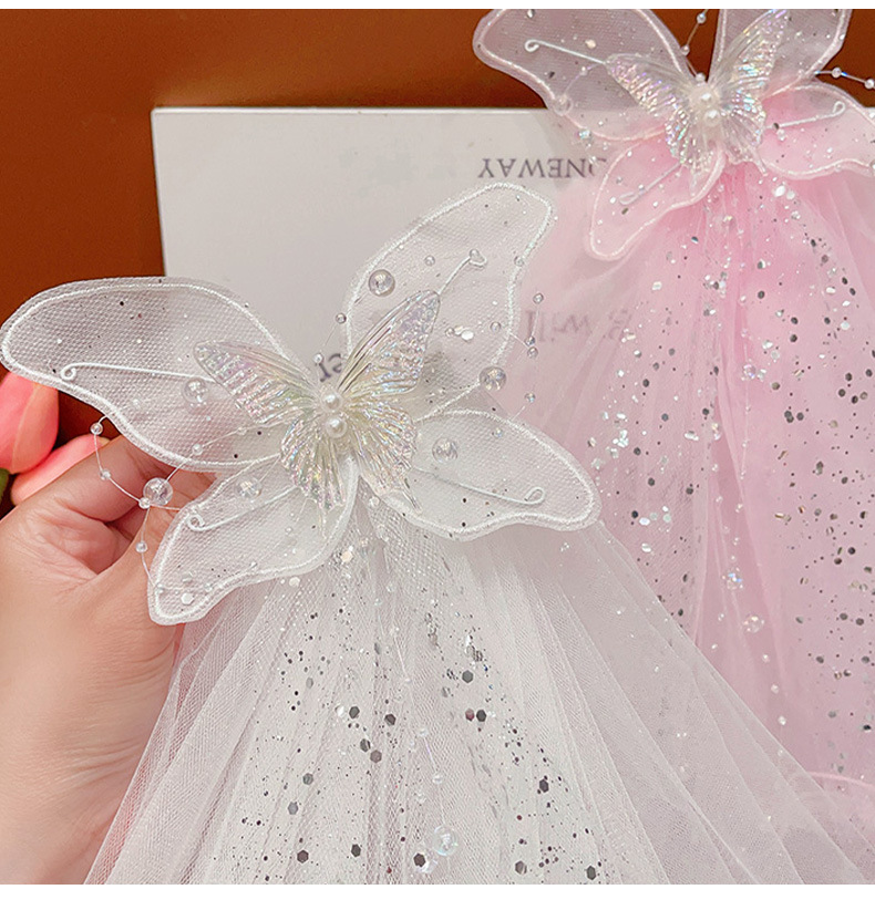 儿童公主裙头纱公主发饰超仙蝴蝶结发卡宝宝生日发夹婚纱花童头饰
