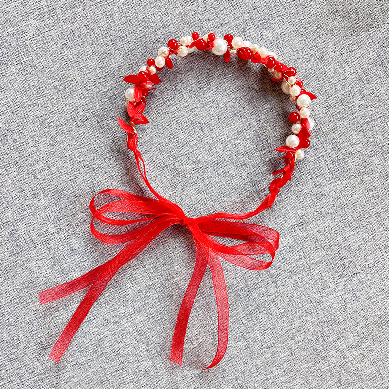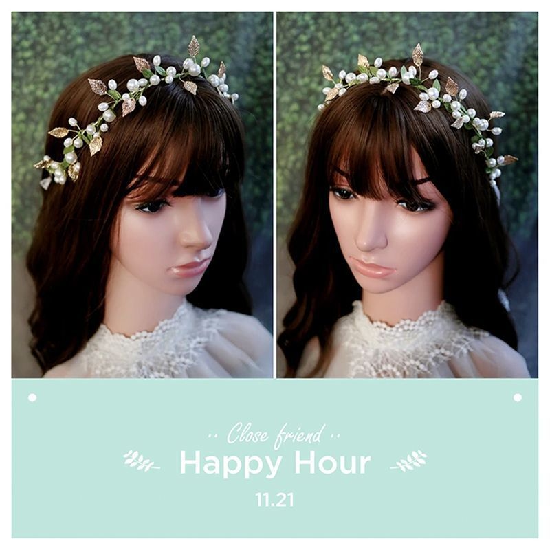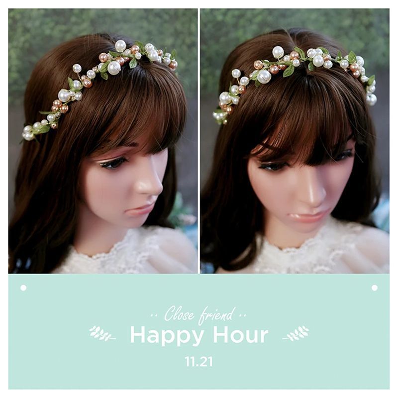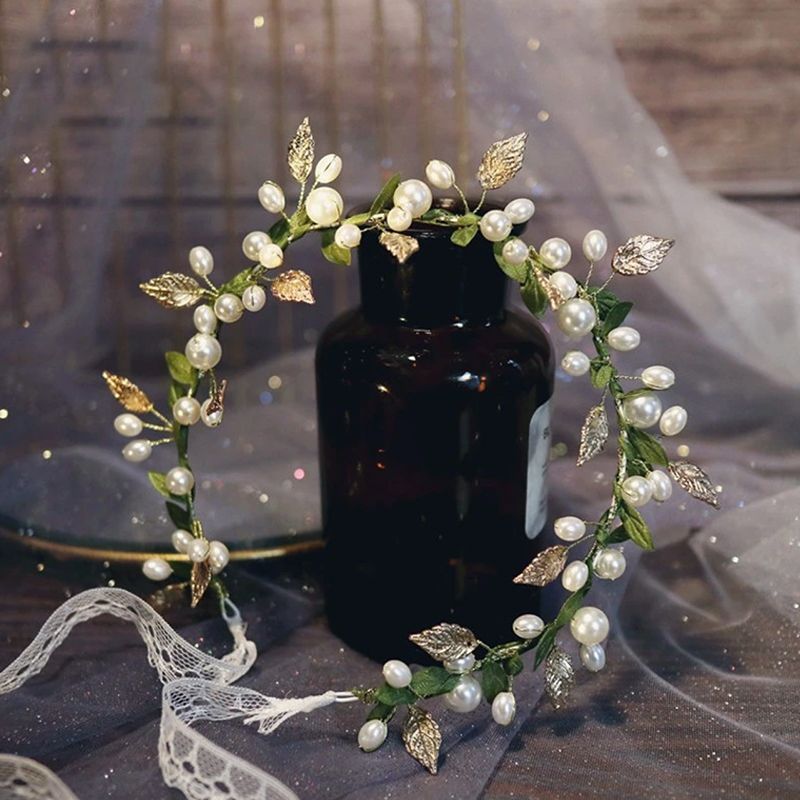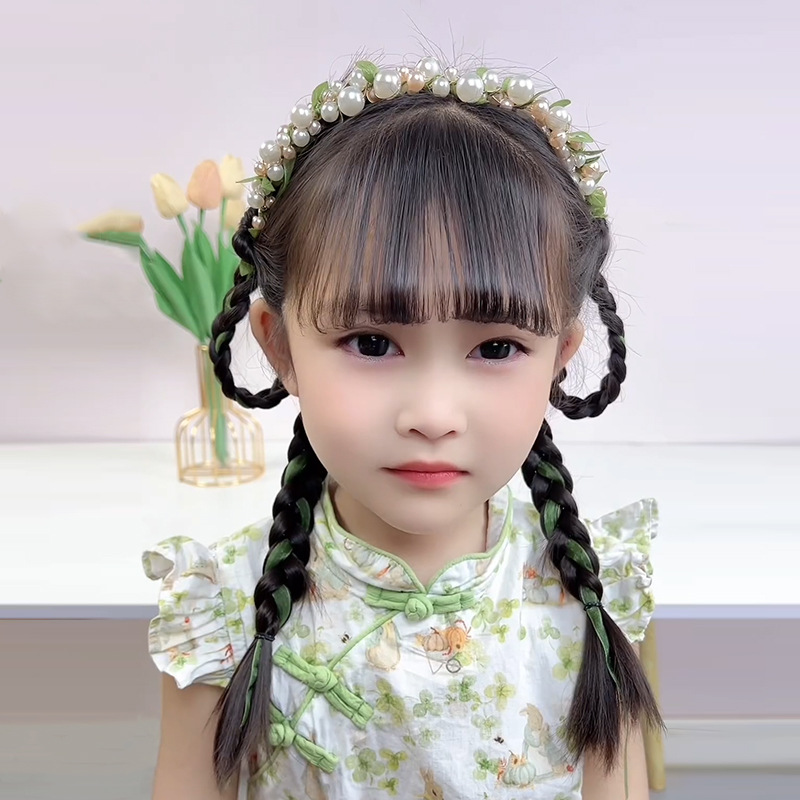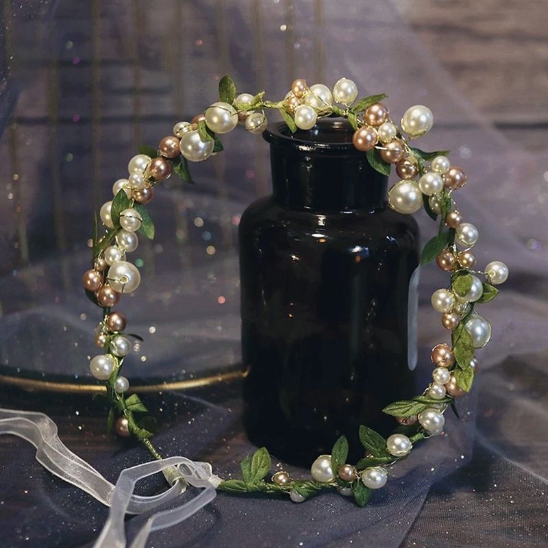 女童气质森系绿叶珍珠花环发带雪纱带编发发饰清新绿色系发箍头箍