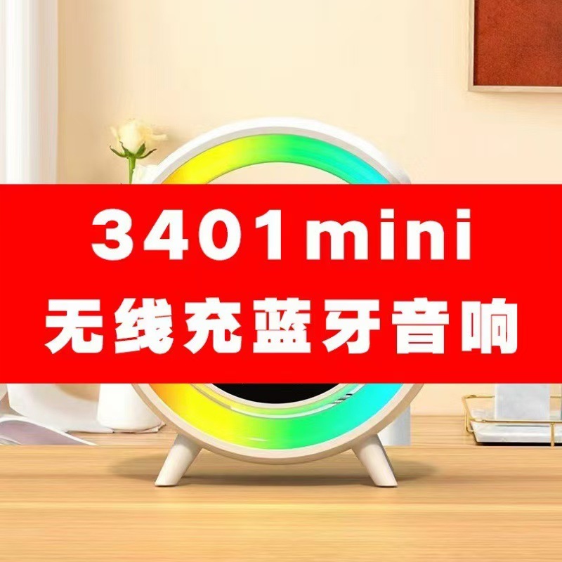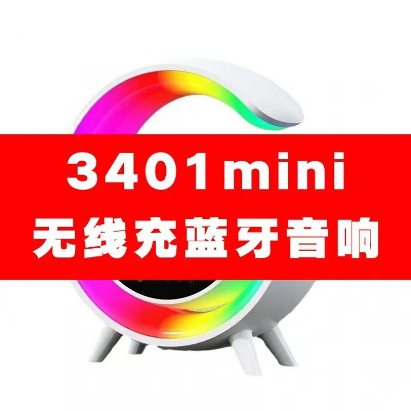 大G3401跨境新款大G蓝牙音箱无线充闹钟氛围灯多功能智能蓝牙音箱