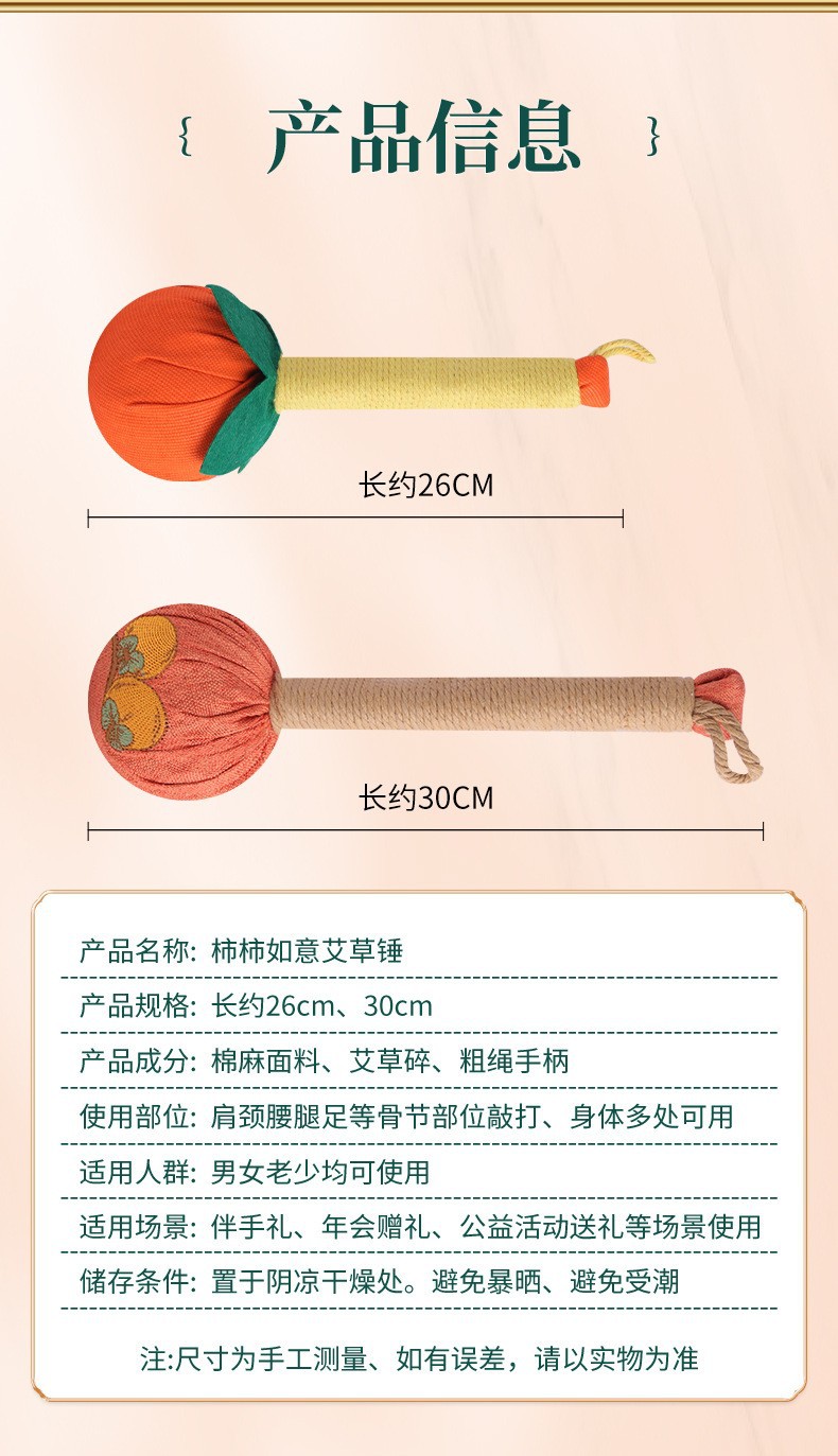 柿柿如意艾草锤伴手礼经络敲打养生锤按摩拍打艾灸锤20cm事事如意