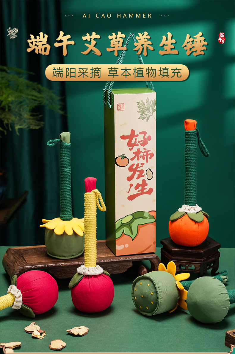 创意礼品柿柿如意艾草锤手工按摩锤养生锤活动小礼品端午节伴手礼