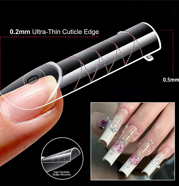 2026爆款美甲空间法式甲模 120片盒装带刻度透明水晶高透延长甲模