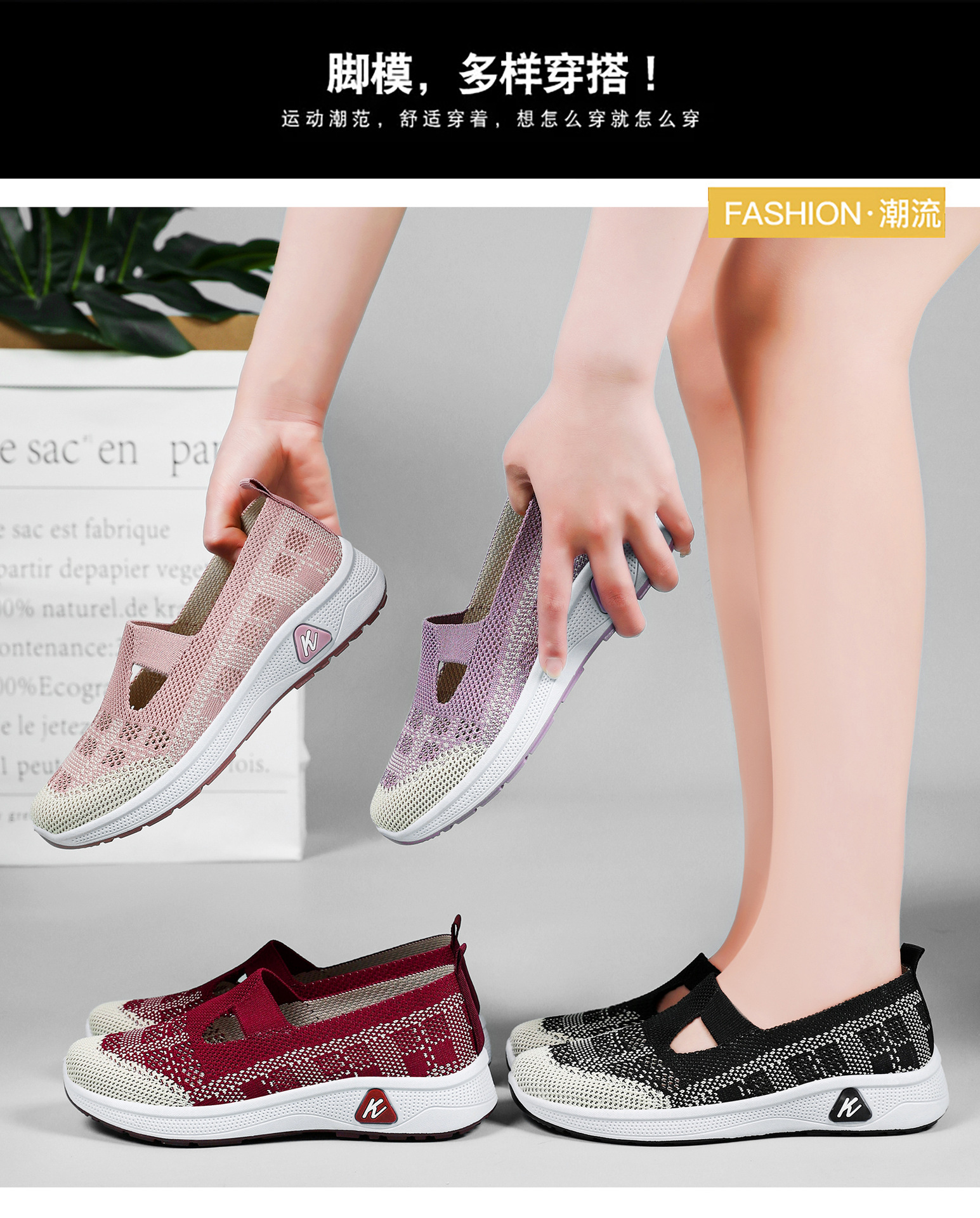 鞋子女一件代发休闲鞋春季透气舒适女鞋软底浅口单鞋一脚蹬妈妈鞋