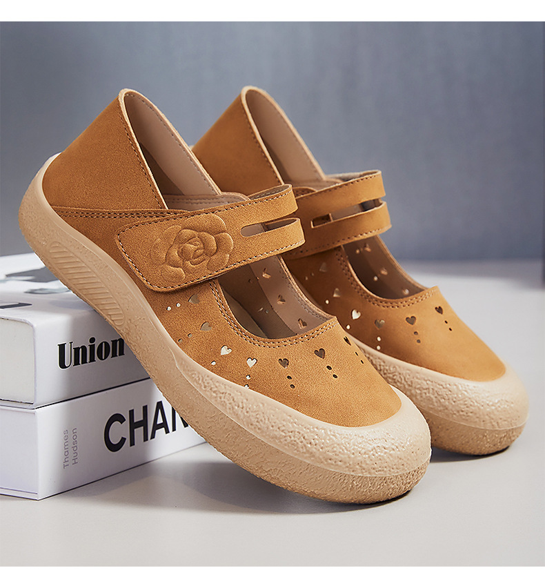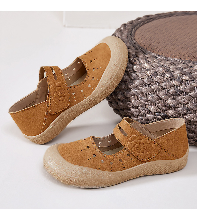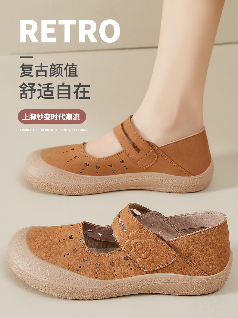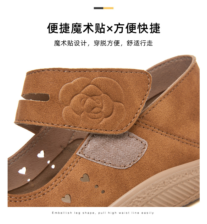 鞋子女鞋百搭夏季新款浅口镂空透气休闲鞋魔术贴便捷妈妈鞋批发