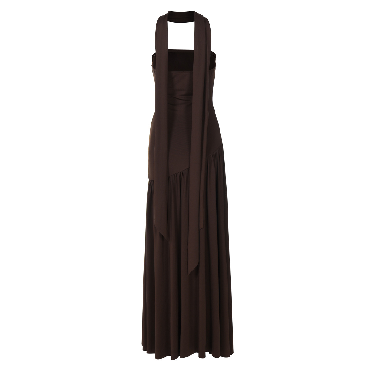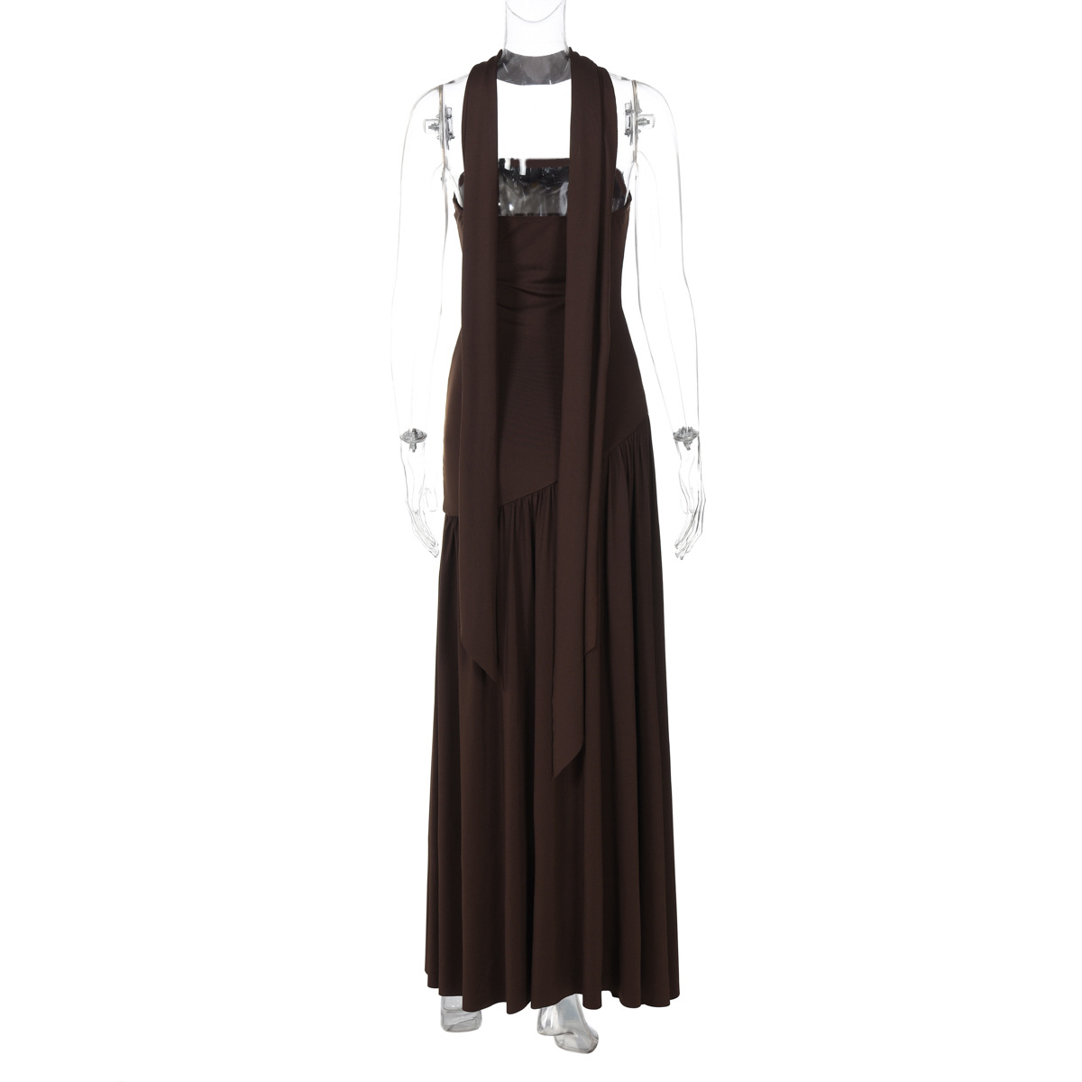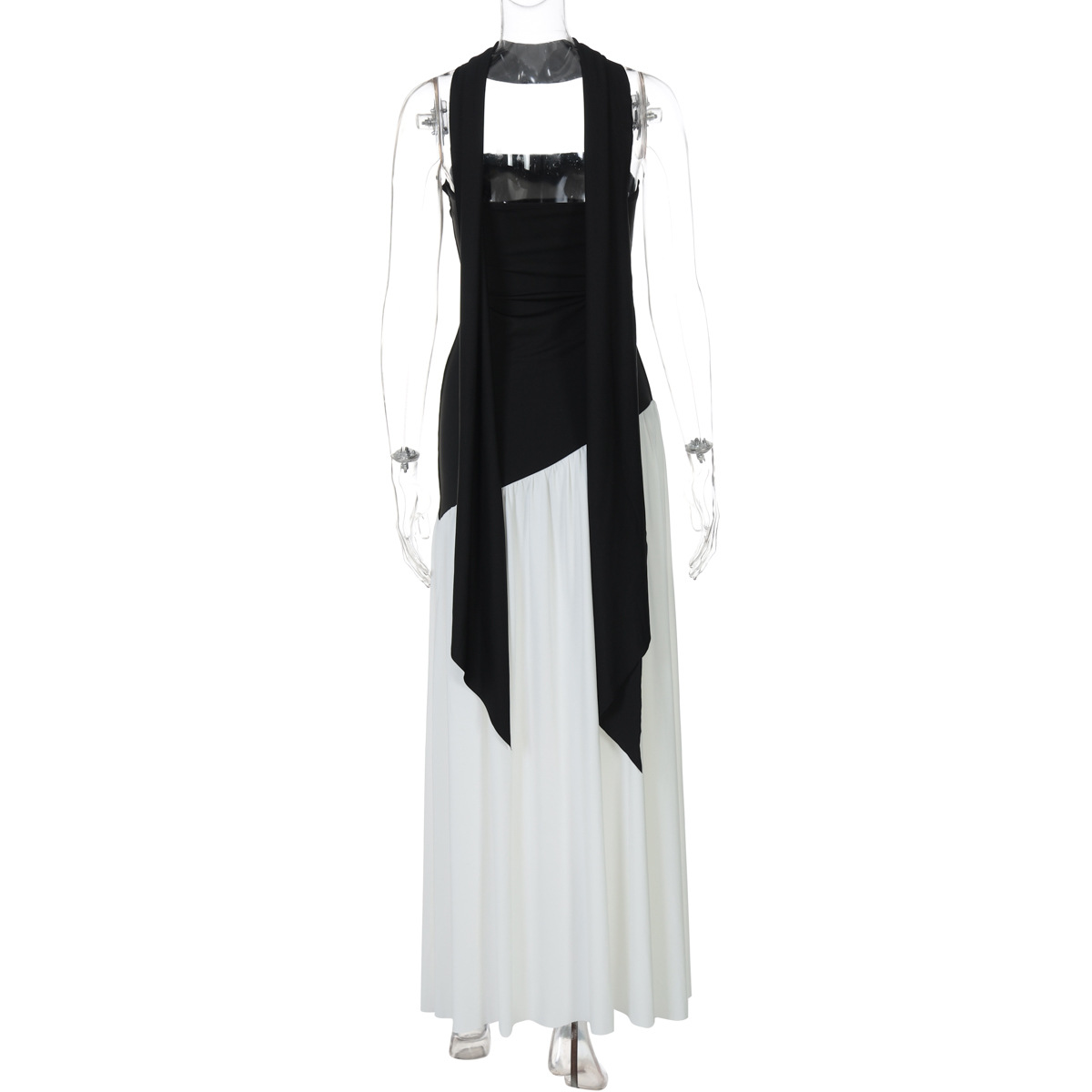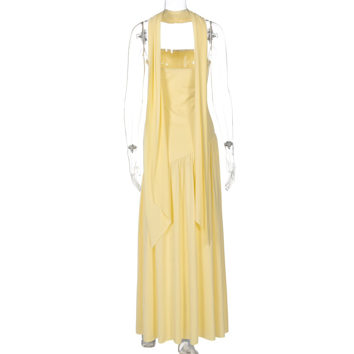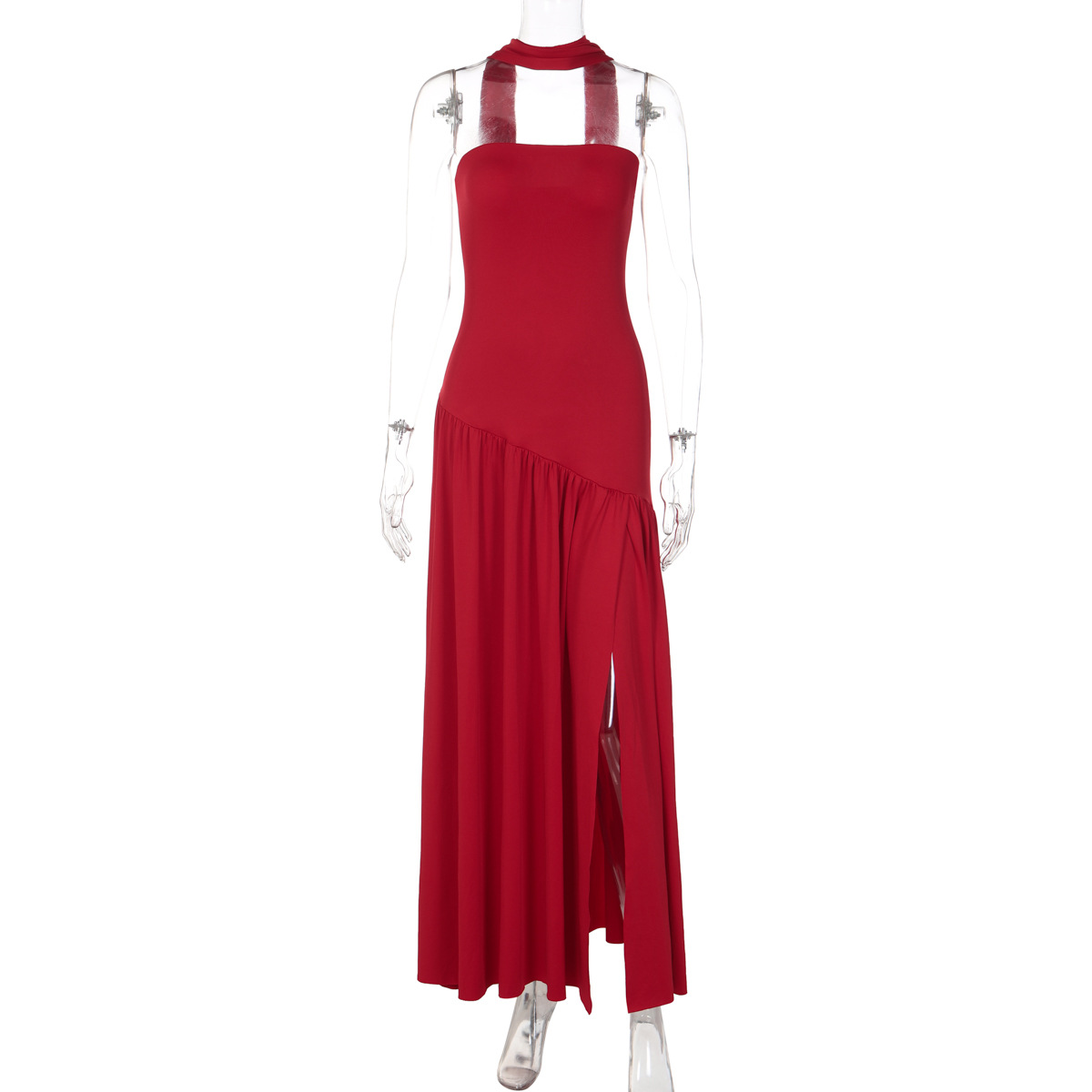 欧美跨境新款女装时尚气质抹胸修身纯色开叉露背优雅飘带连衣裙女