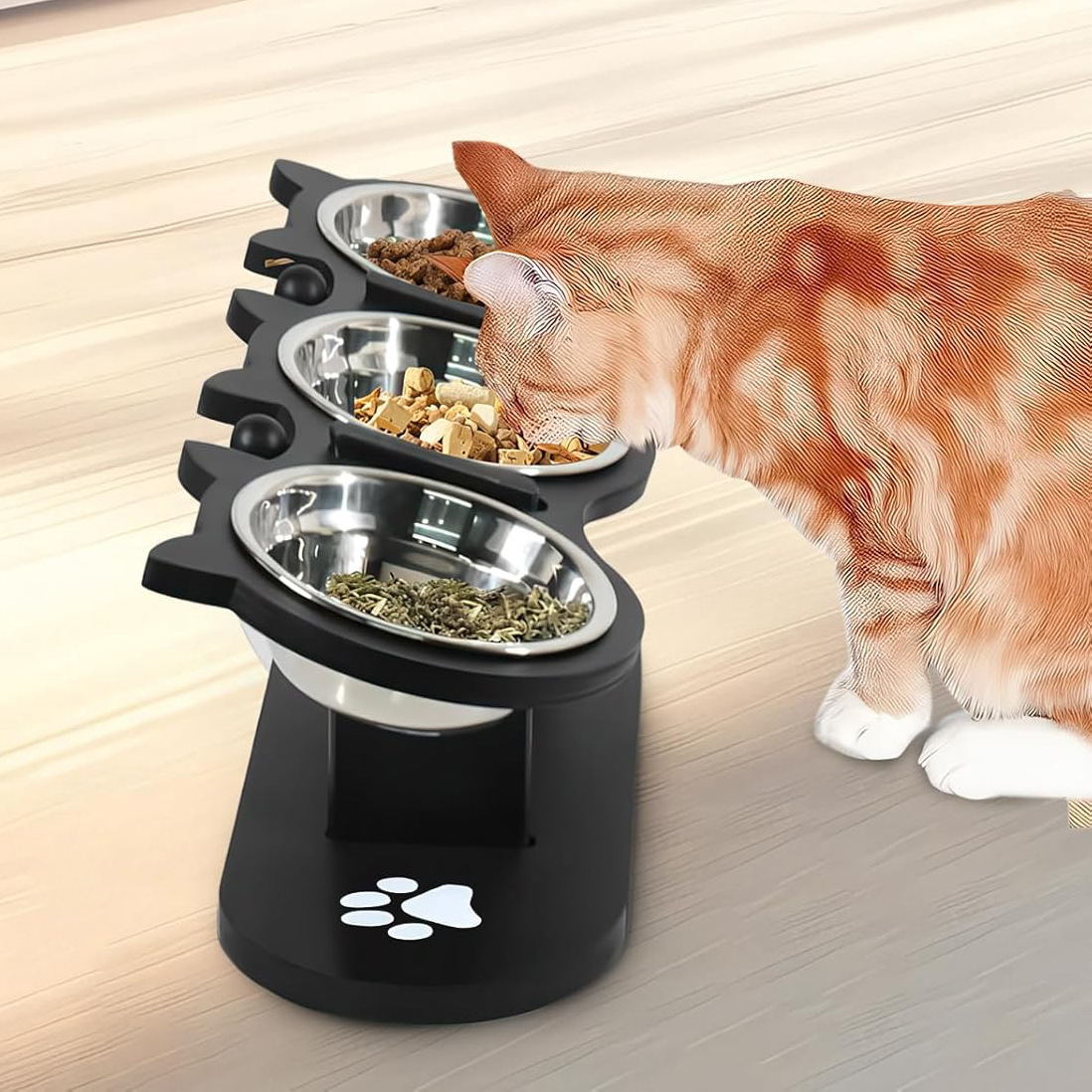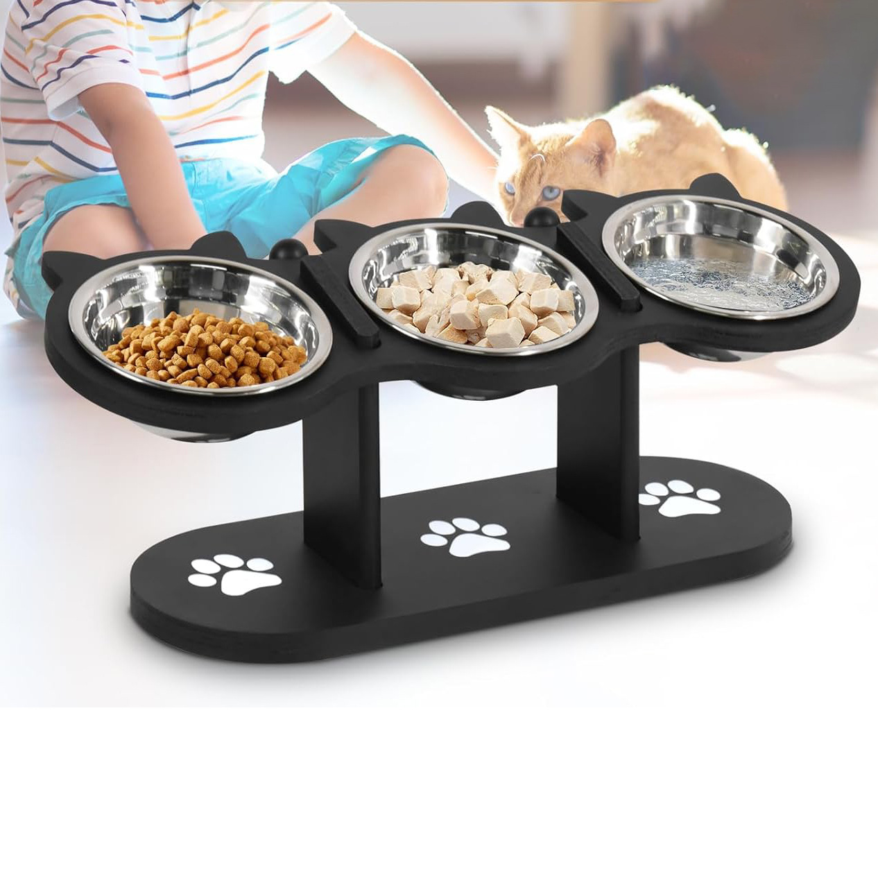 跨境木质宠物喂食器倾斜防滑护颈通用宠物食具可调节立架式猫碗架