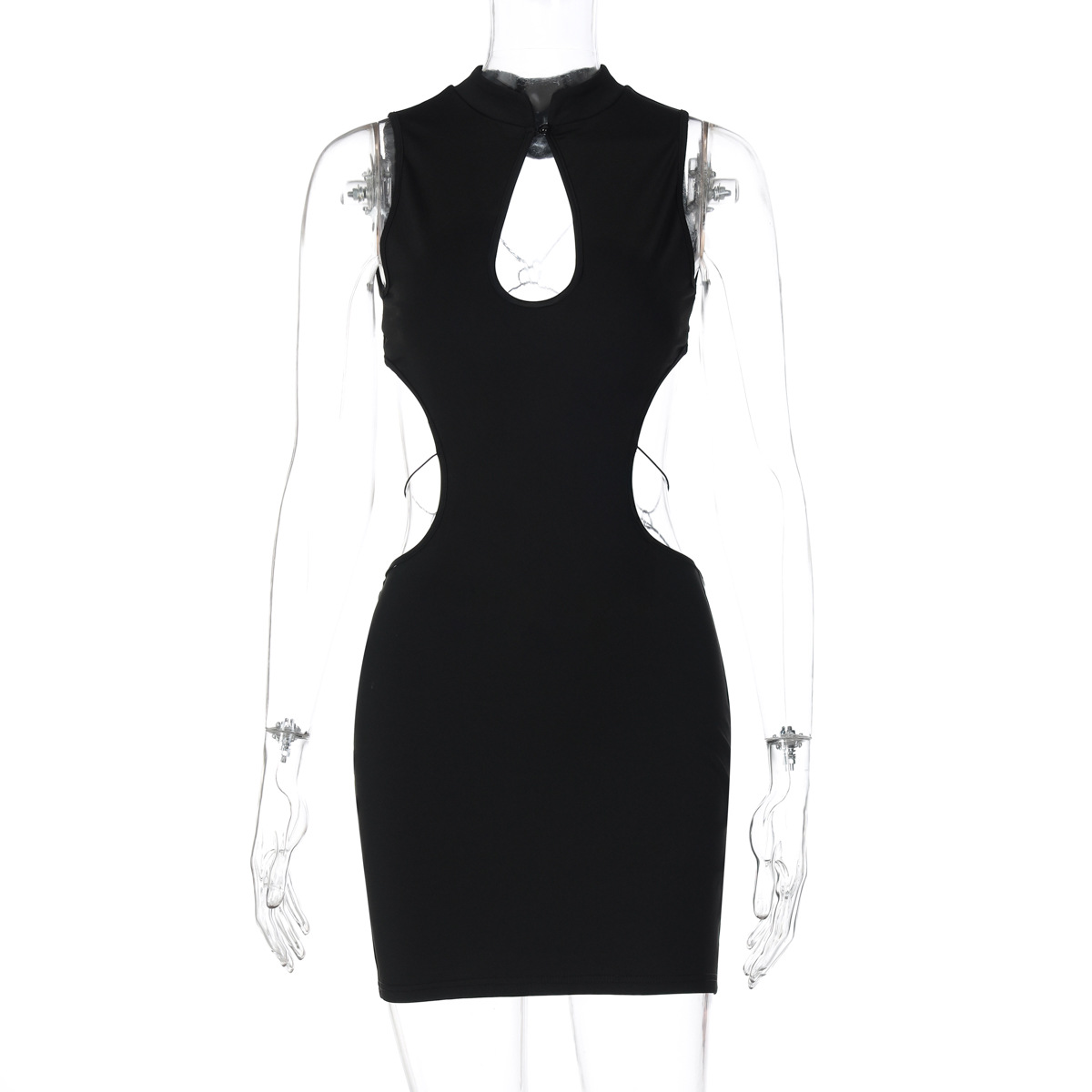 欧美跨境街头风新款性感镂空露背拼接蝴蝶金属装饰短款辣妹连衣裙