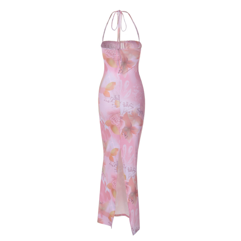 亚马逊跨境热销款时尚印花性感裹胸挂脖修长提升欧美风连衣裙代发