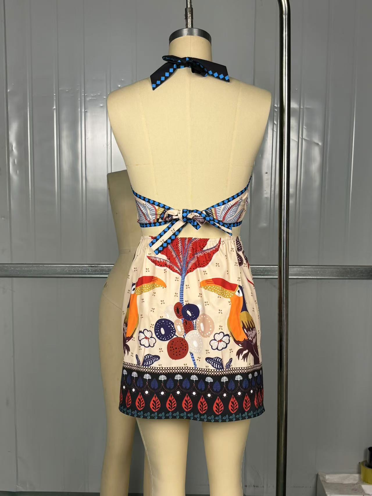 2025年夏季新款跨境欧美女士半身裙花纹吊带休闲轻松时尚