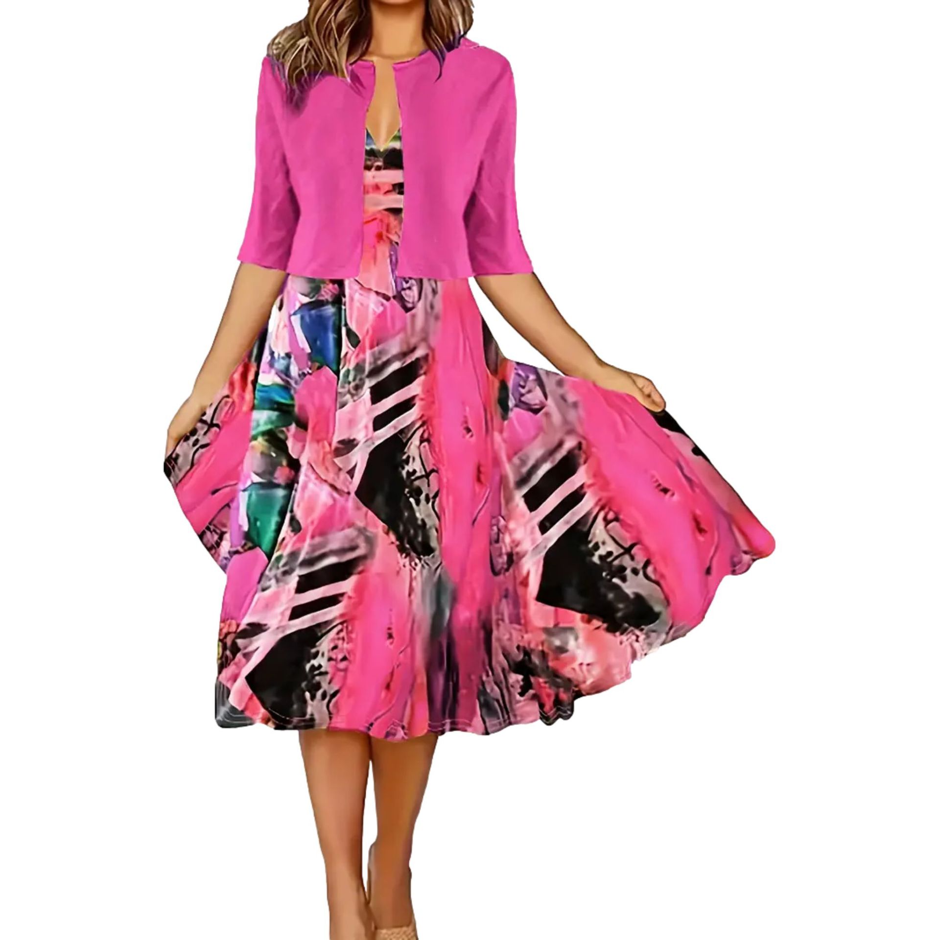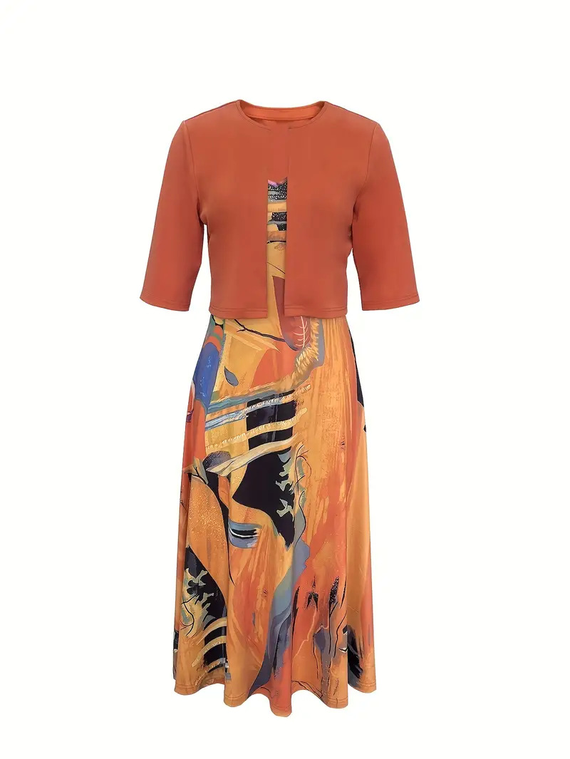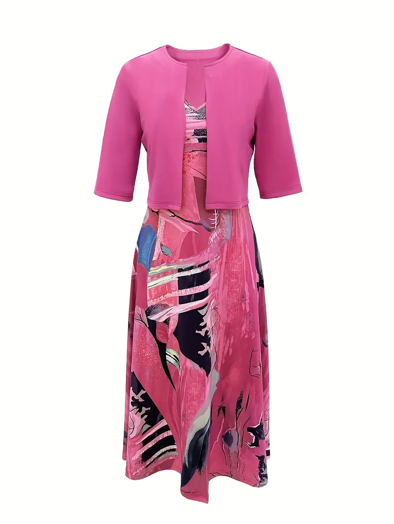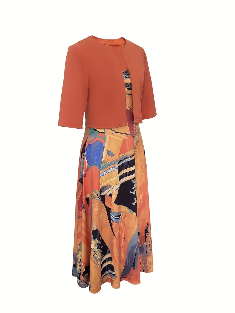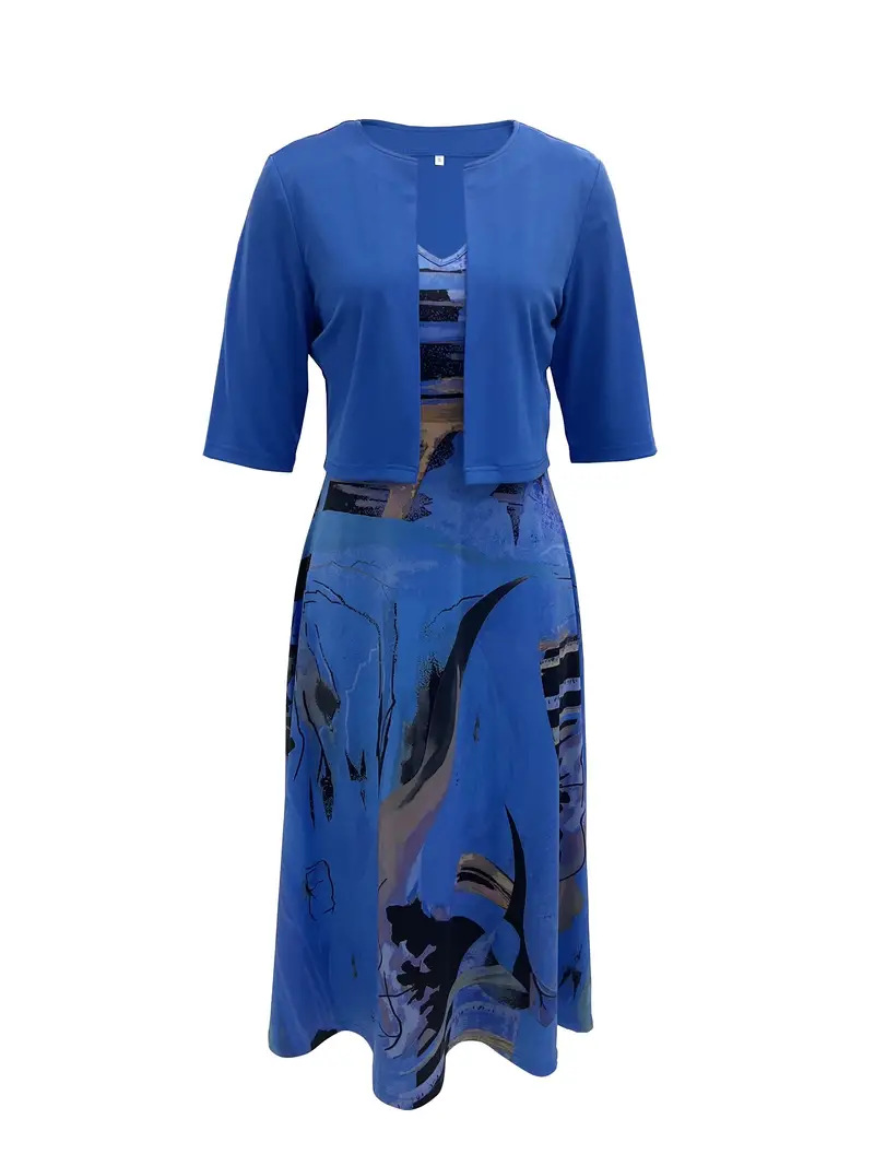 2023印花连衣裙欧美开衫亚马逊系带夏季迪拜优雅长裙套装女