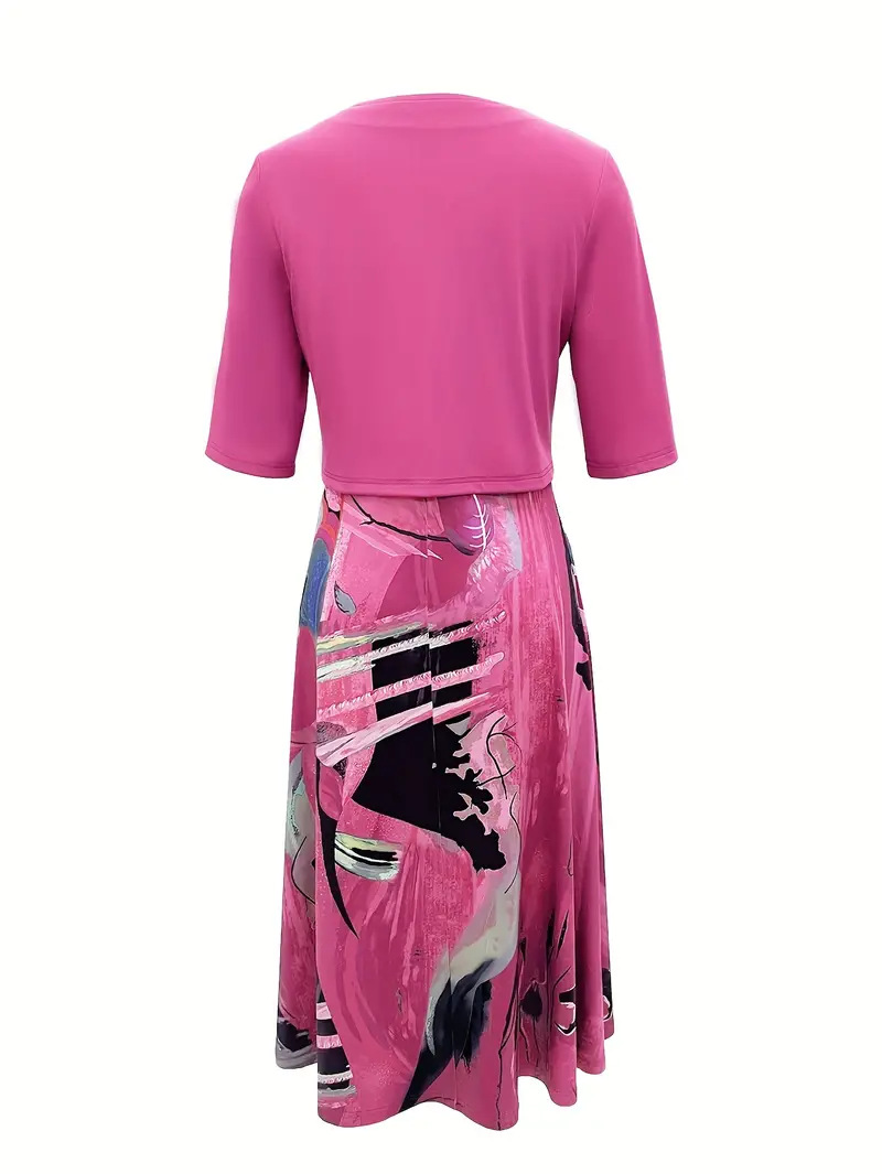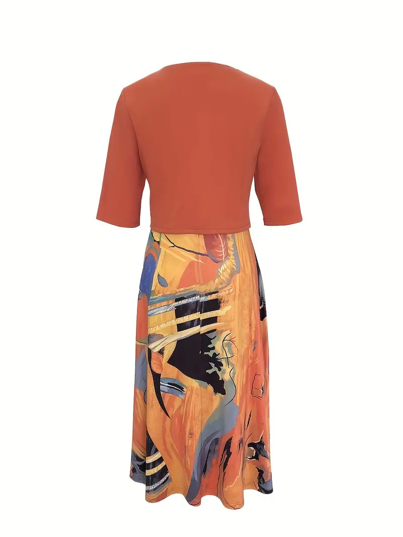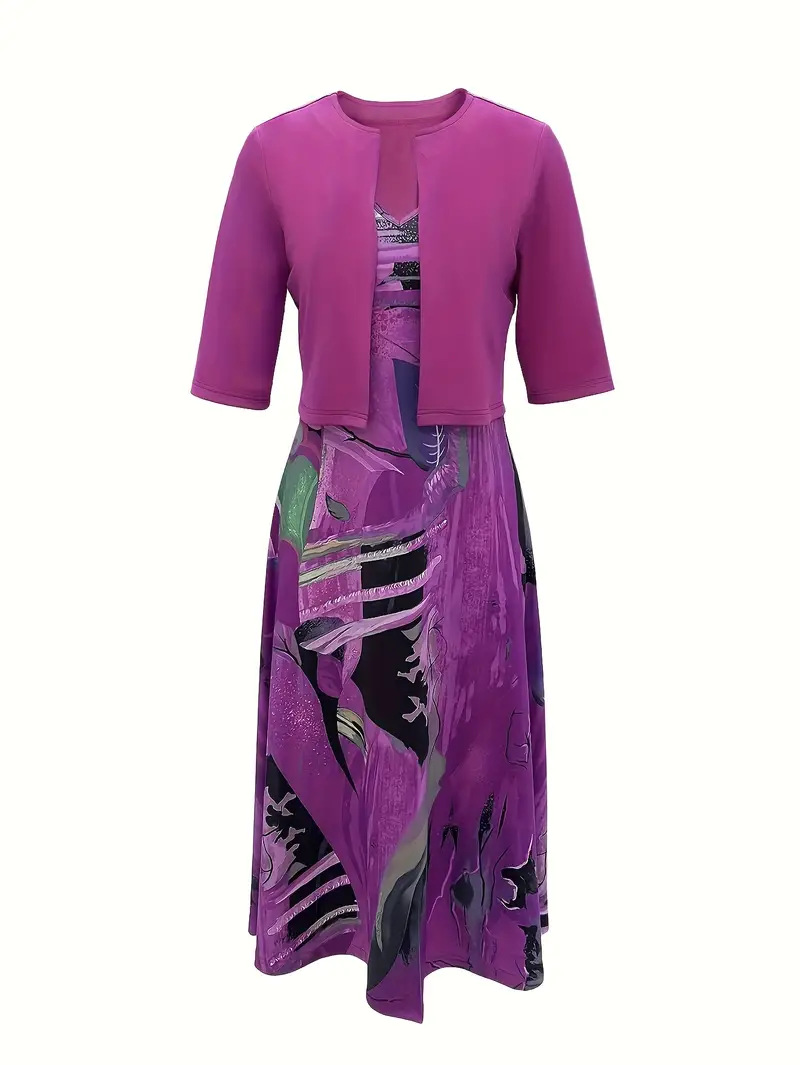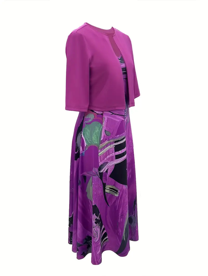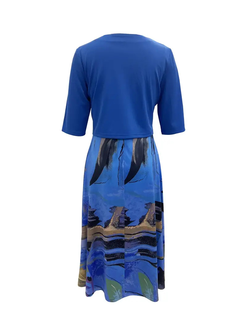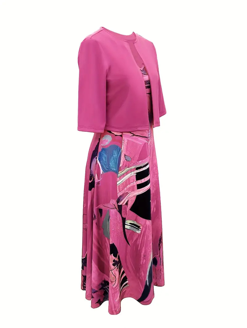 2023印花连衣裙欧美开衫亚马逊系带夏季迪拜优雅长裙套装女