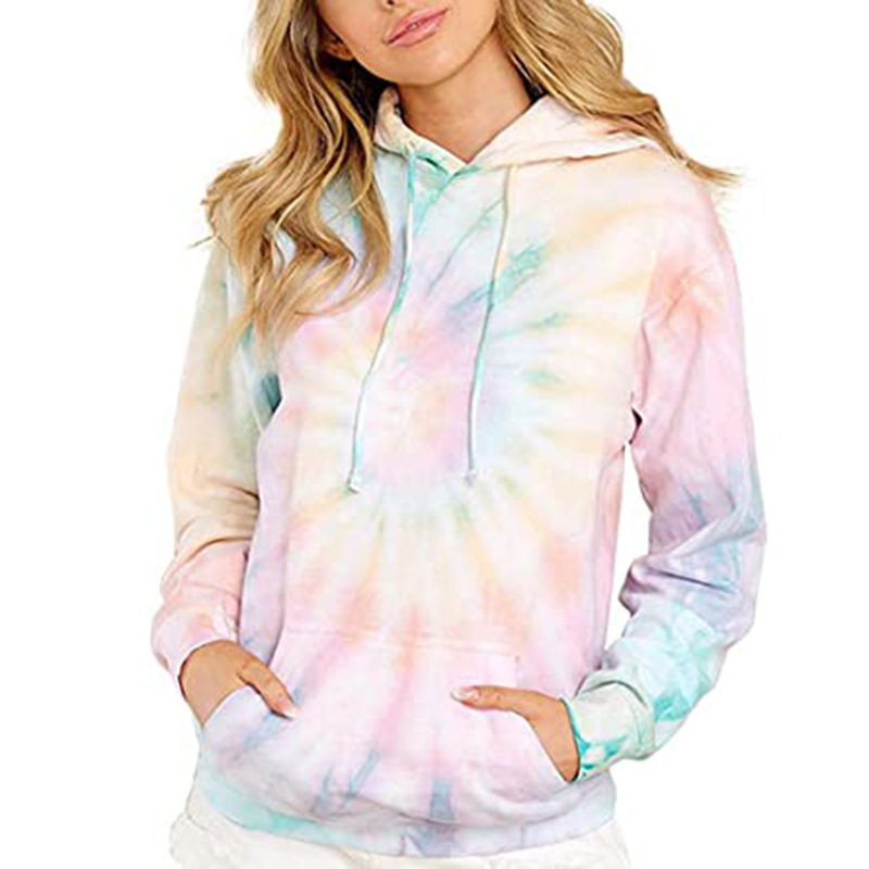 2023亚马逊Wish欧美跨境春秋冬新款女装上衣扎染连帽长袖口袋卫衣