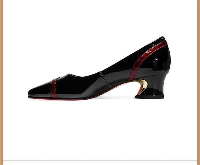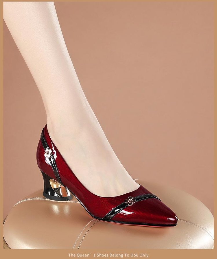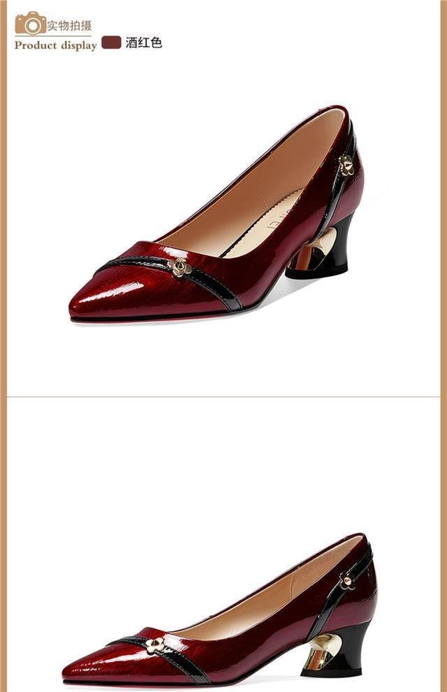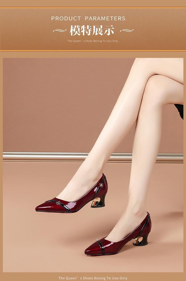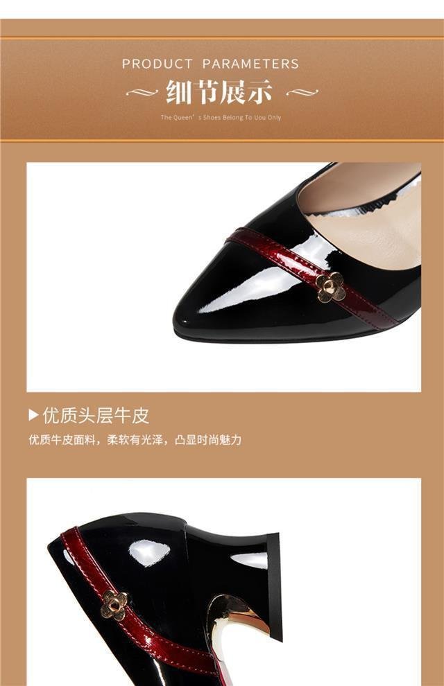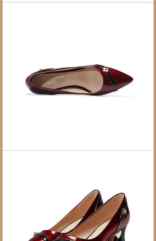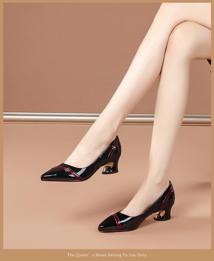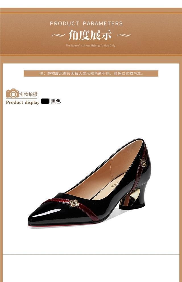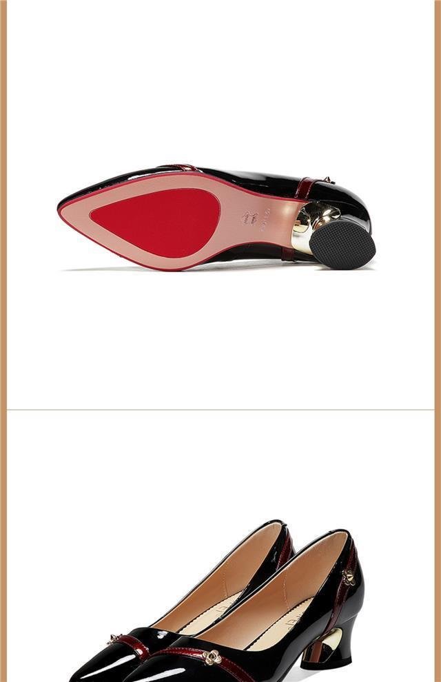 尖头小皮鞋女鞋粗跟气质百搭浅口防滑工作单鞋子轻盈轻奢铆钉女鞋