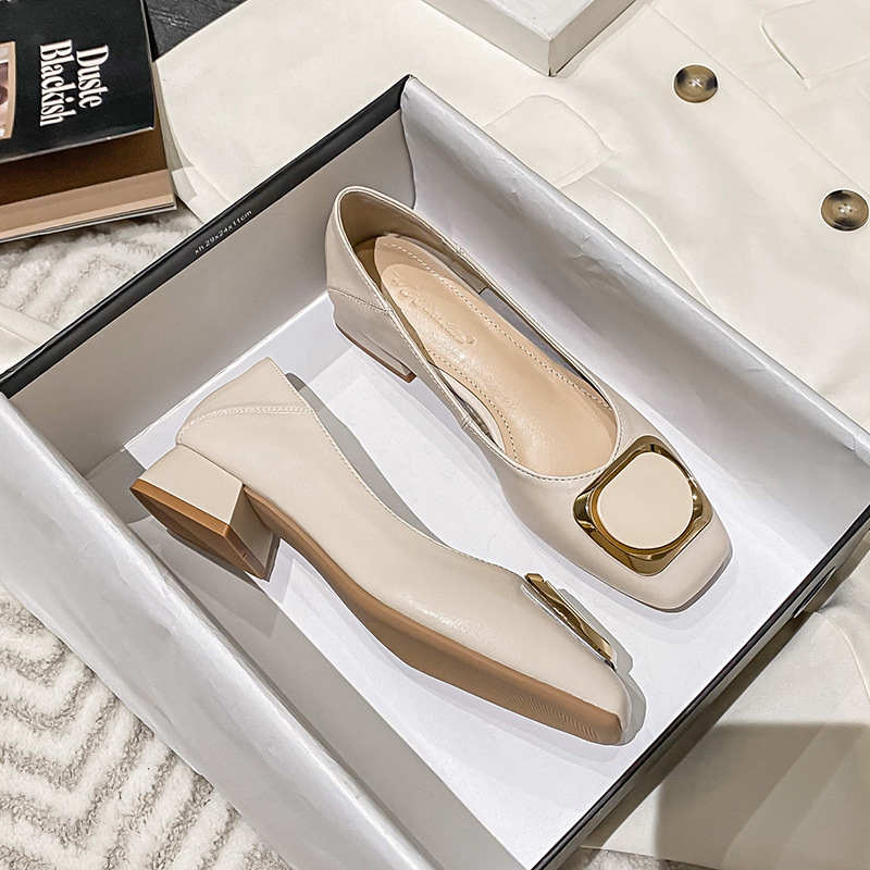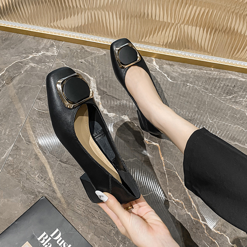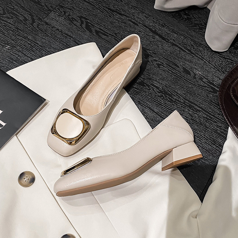 软皮奶奶鞋女粗跟2024春季新款仙女风温柔中跟单鞋大码女鞋34-41