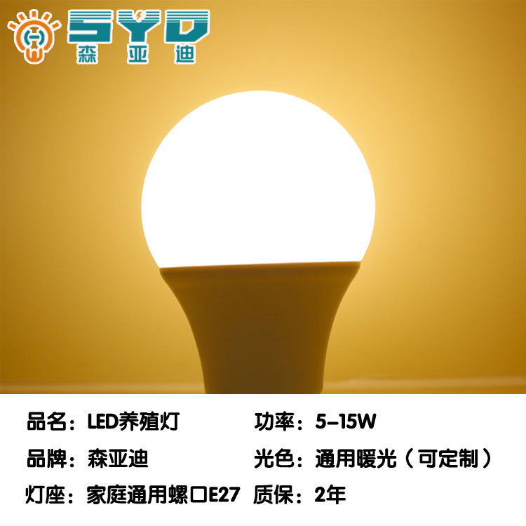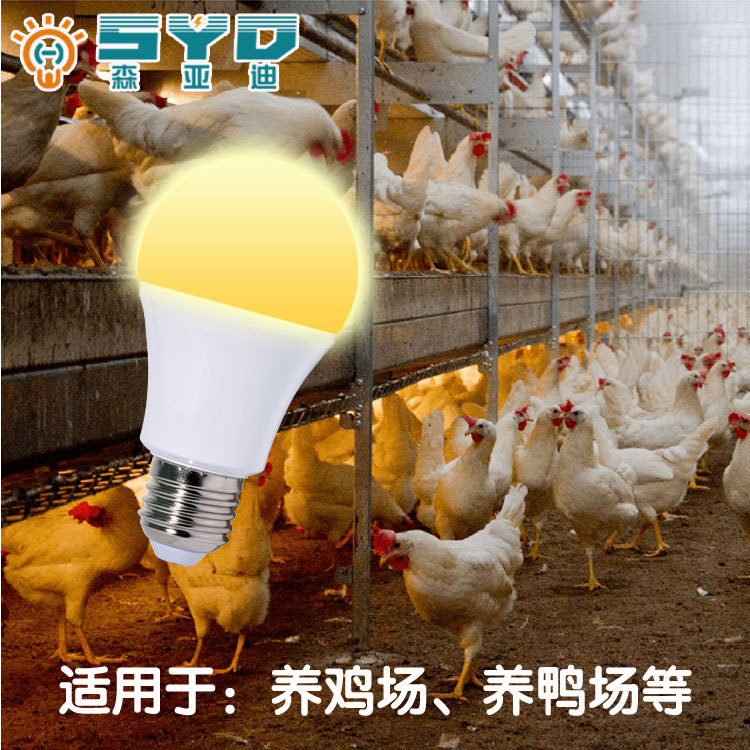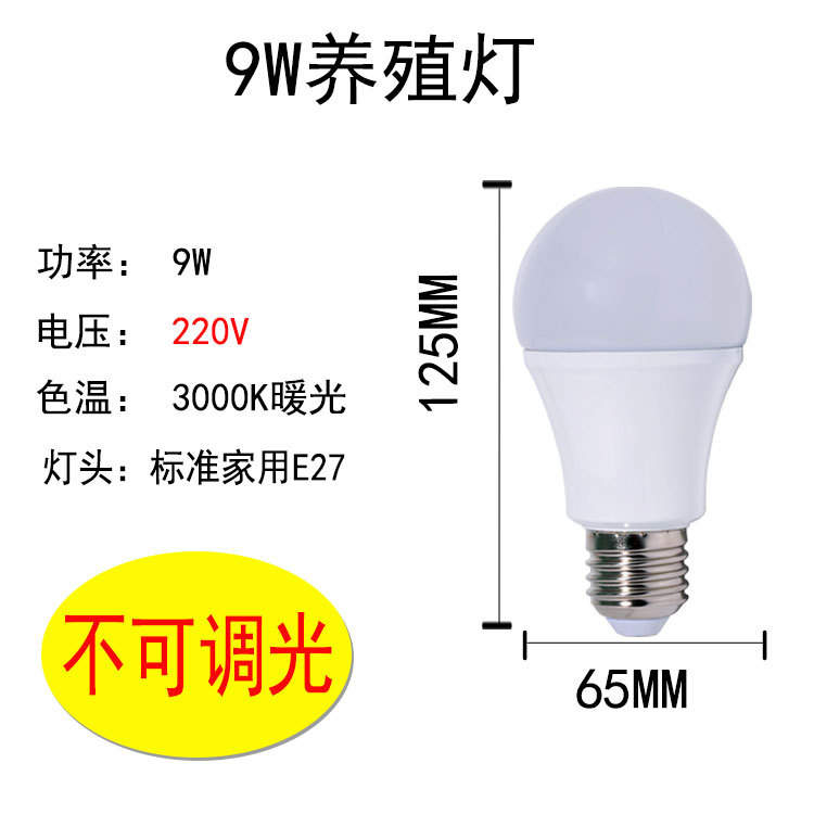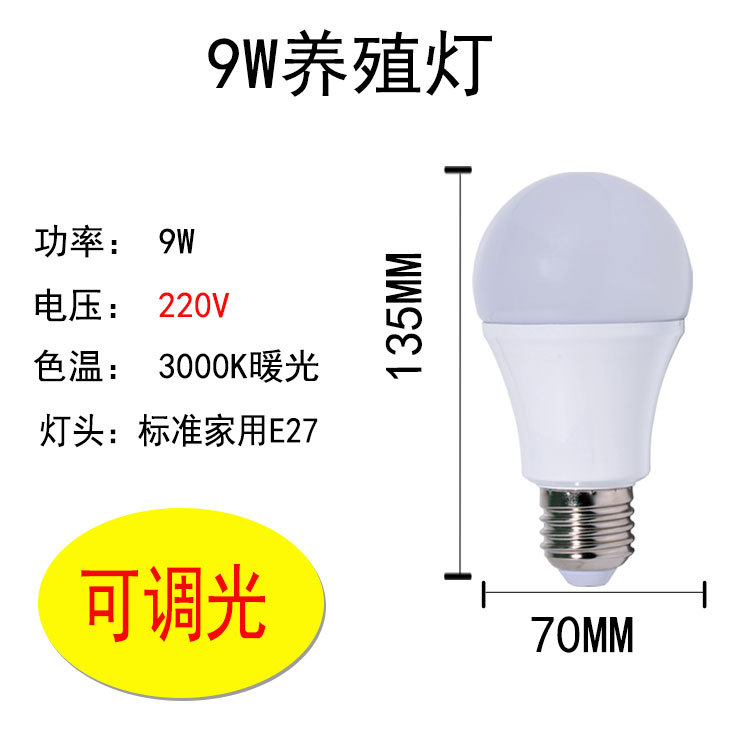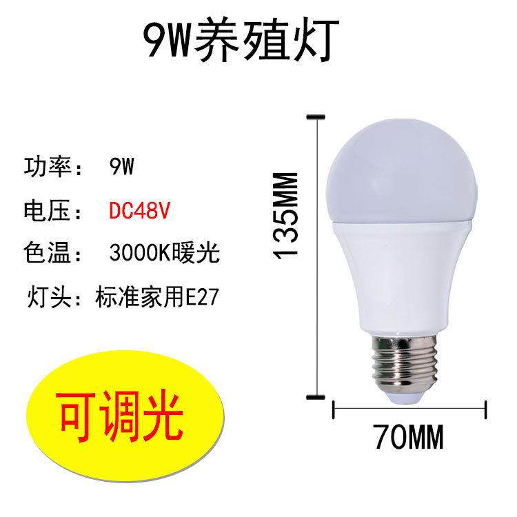 LED养殖灯DC48V7W9W调光暖光220v球泡可调光灯泡养鸡养鸭场专用