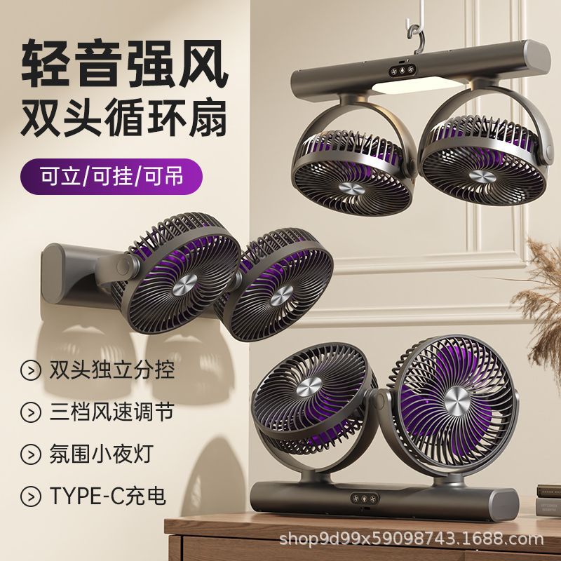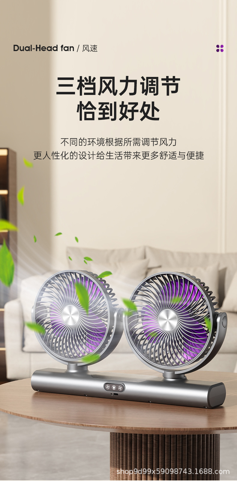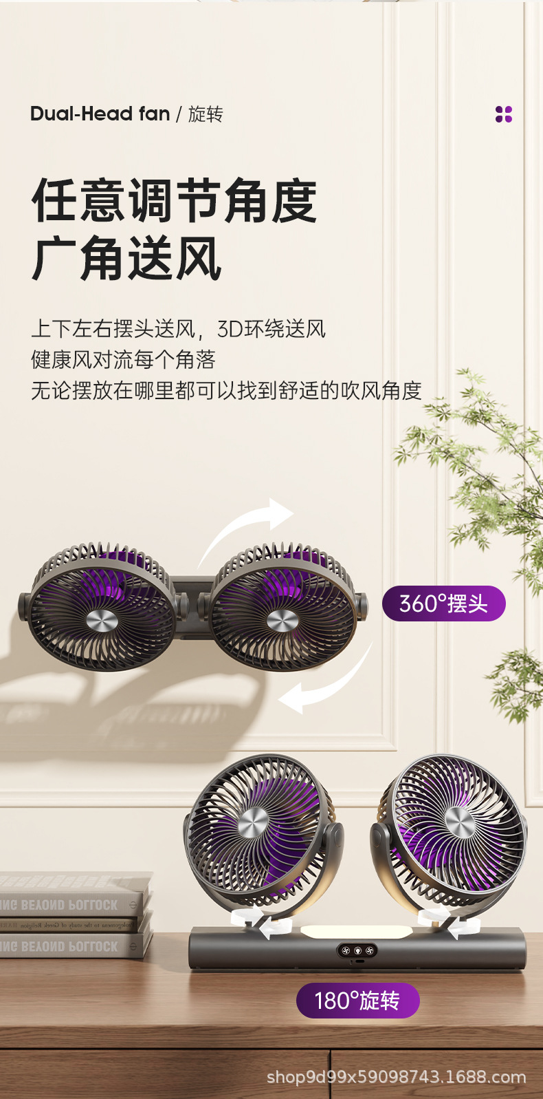 2026新款跨境桌面风扇车载立挂可调节多功能双头风扇夏季家用风扇