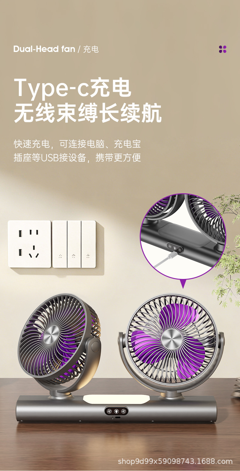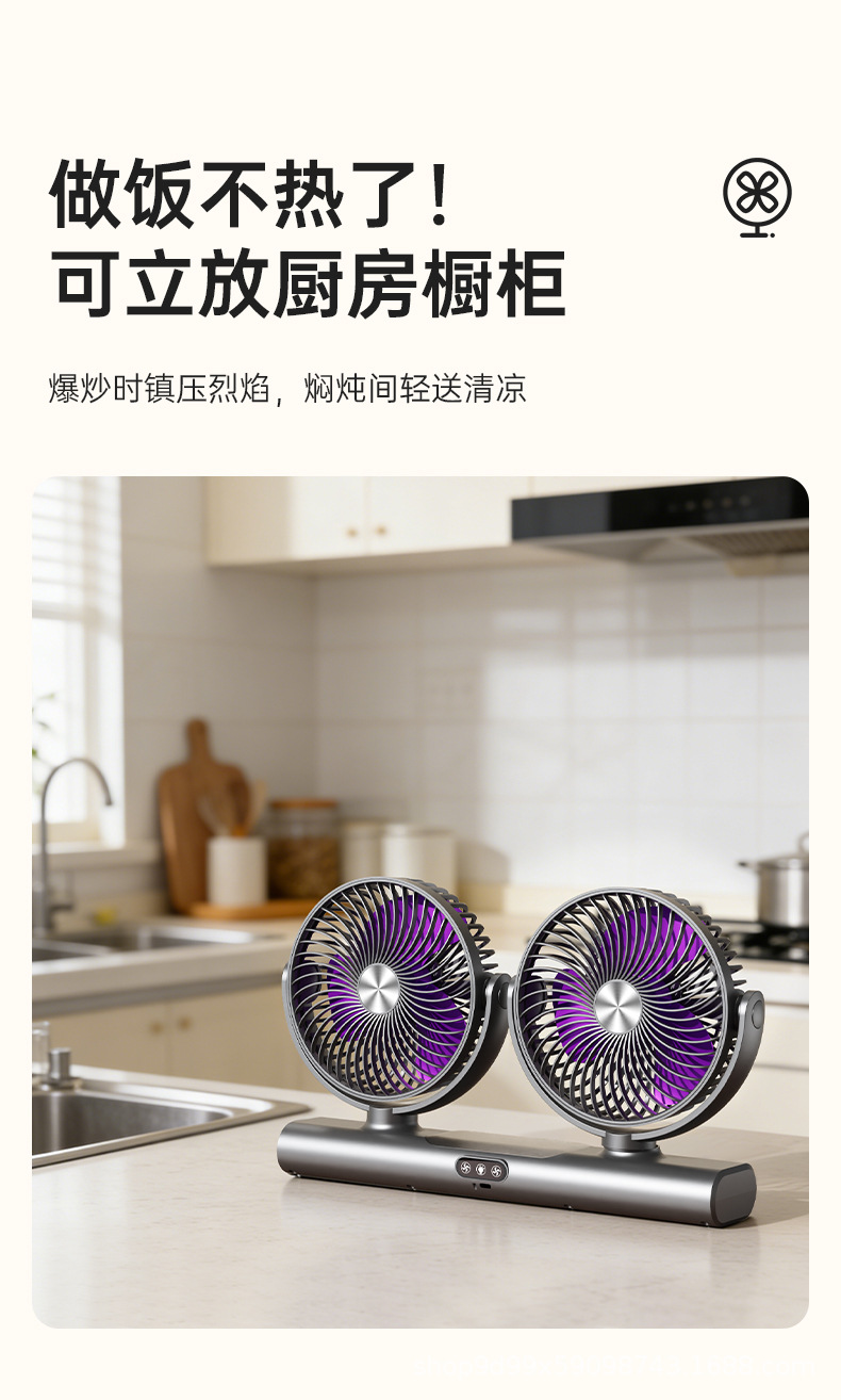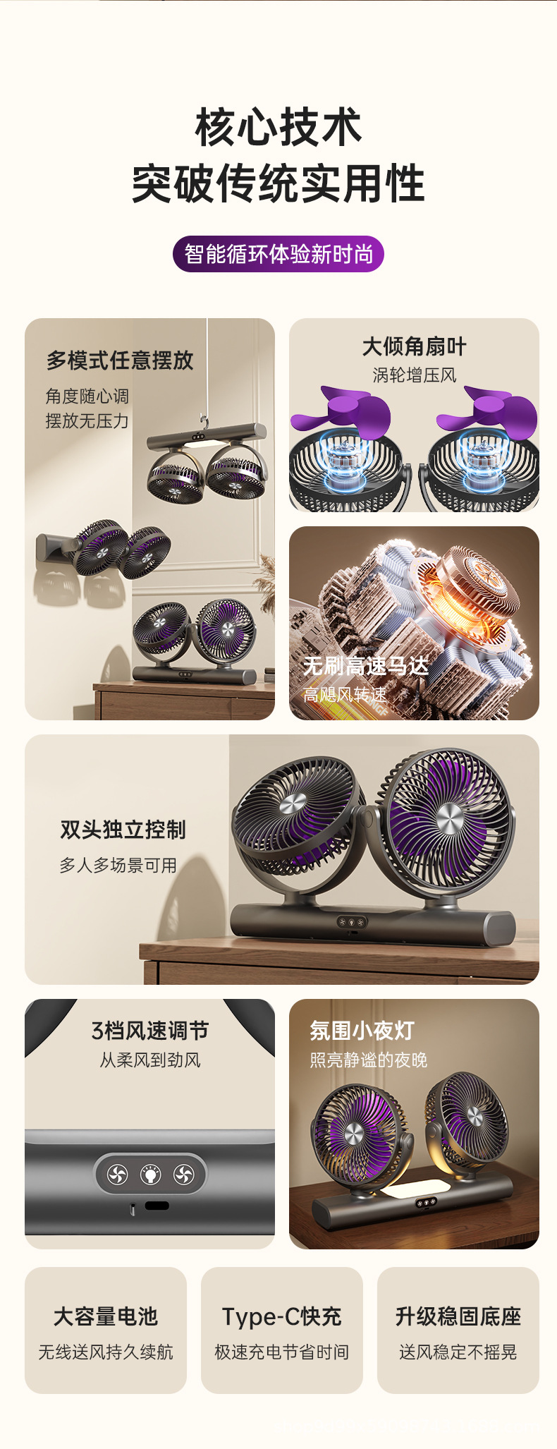2026新款跨境桌面风扇车载立挂可调节多功能双头风扇夏季家用风扇