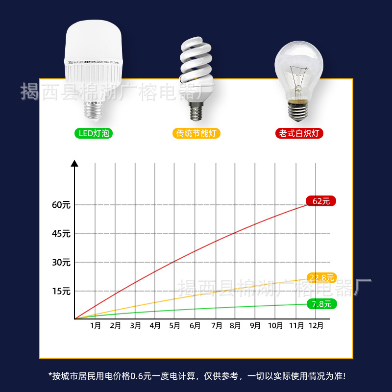 LED灯泡螺口E27仓库家用水晶灯商用车间厂房led球泡灯办公专用