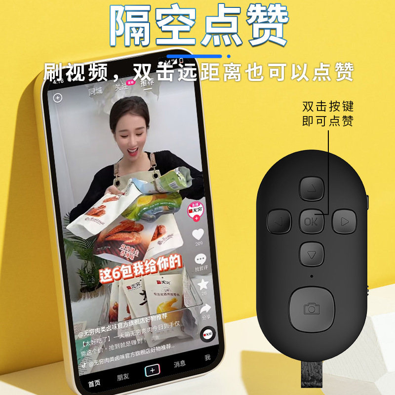 手机蓝牙遥控器大7键充电款无线拍照自录视频抖音快手赞翻页