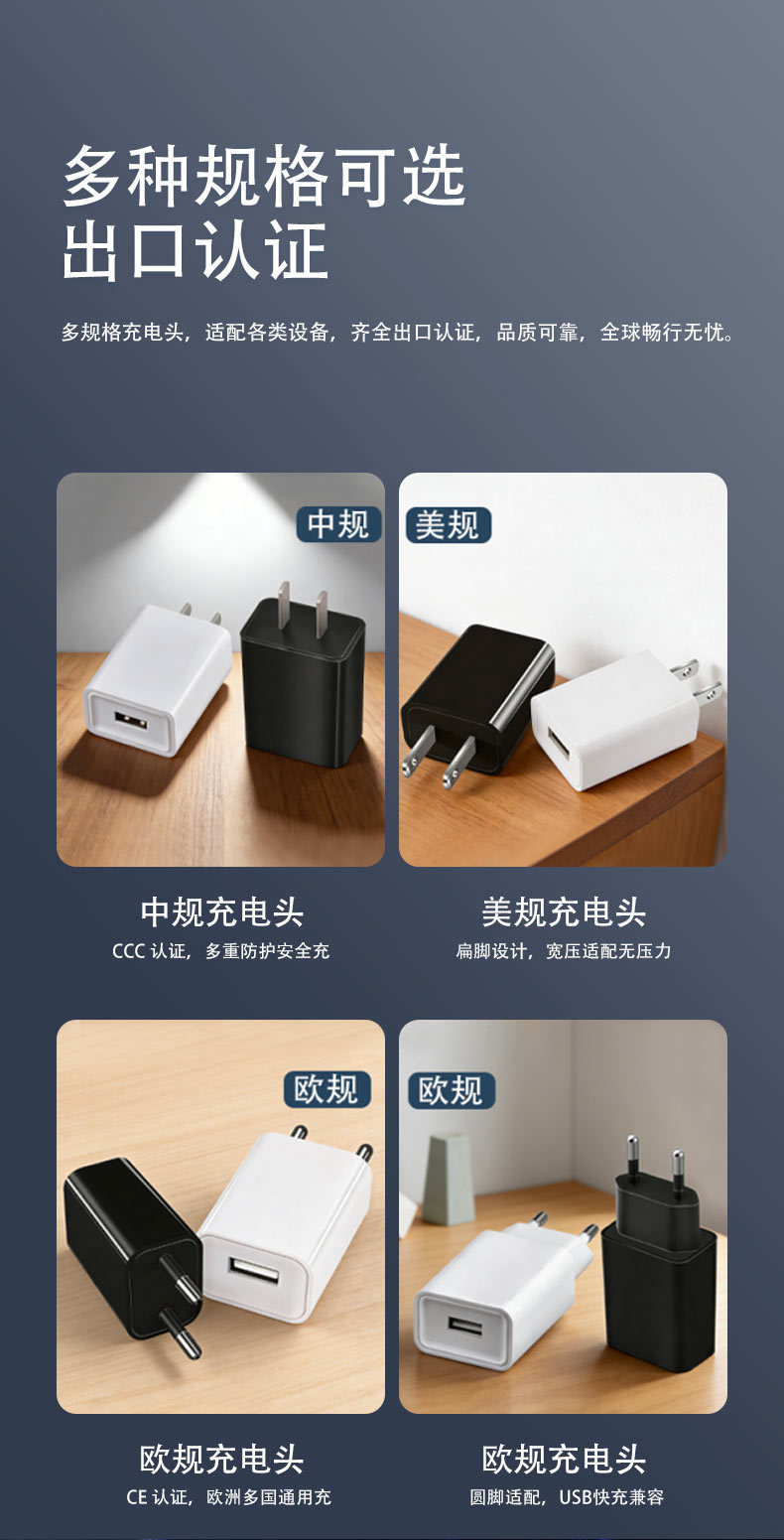 国标3C认证5v2a充电头FCC美规1a安手机充电器CE欧规usb电源适配器