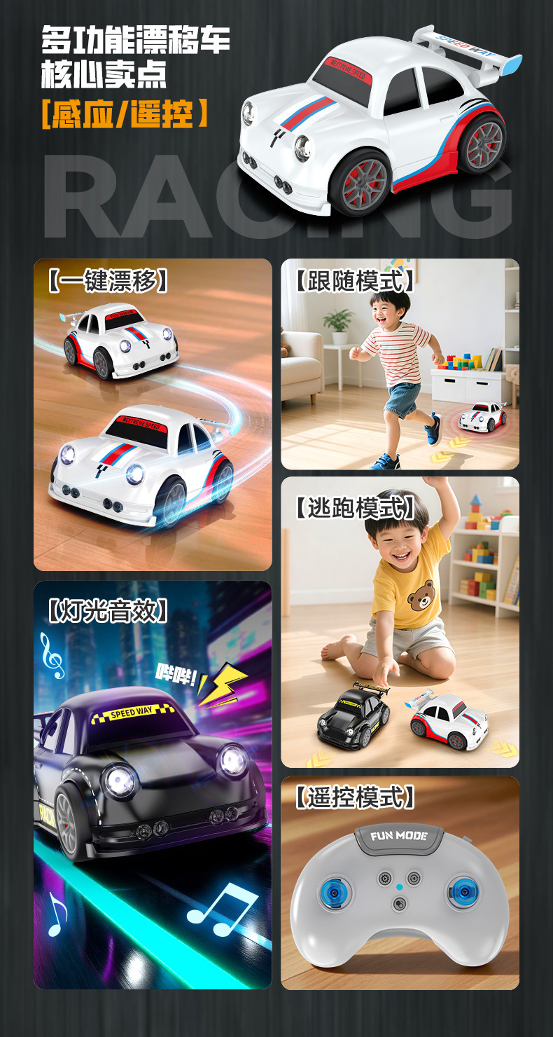 跨境爆款智能感应跟随车四驱跟随遥控车汽车模型男孩生日礼物漂移