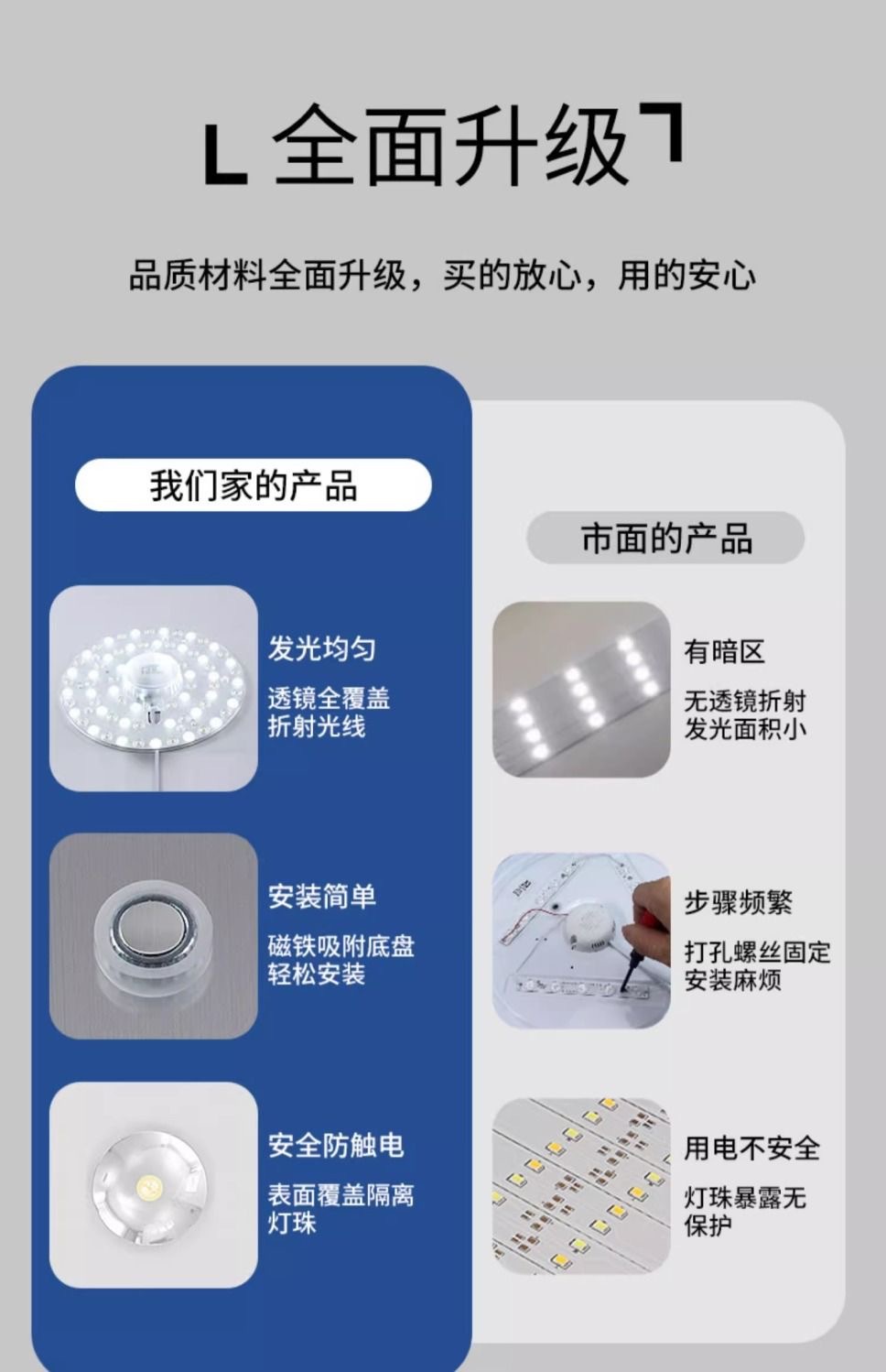 led吸顶灯灯芯替换磁吸灯条盘灯管客厅改造灯板护眼led节能灯泡