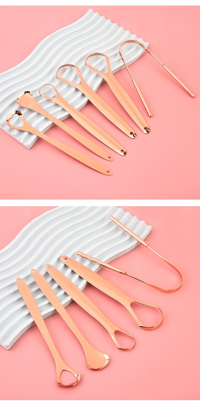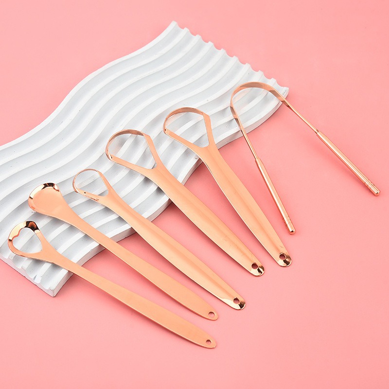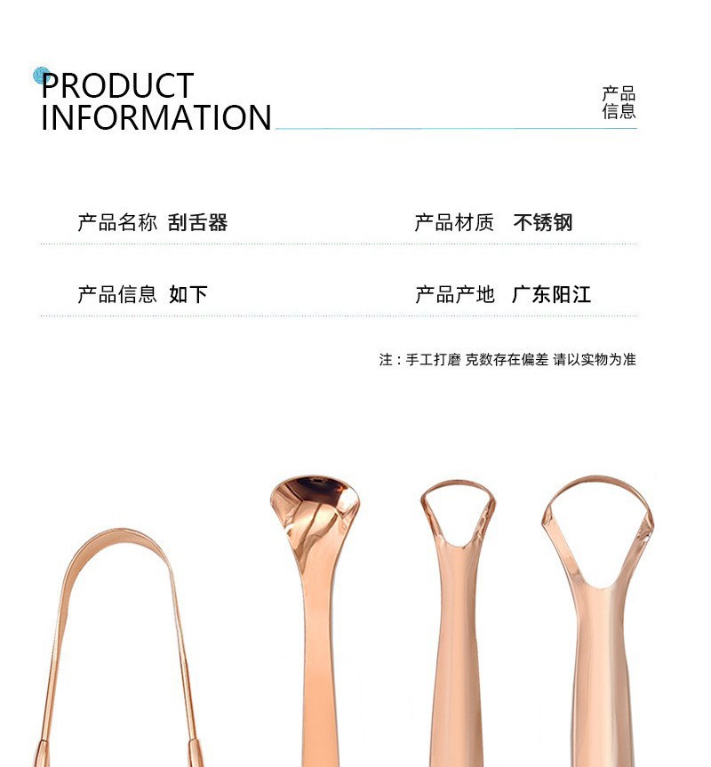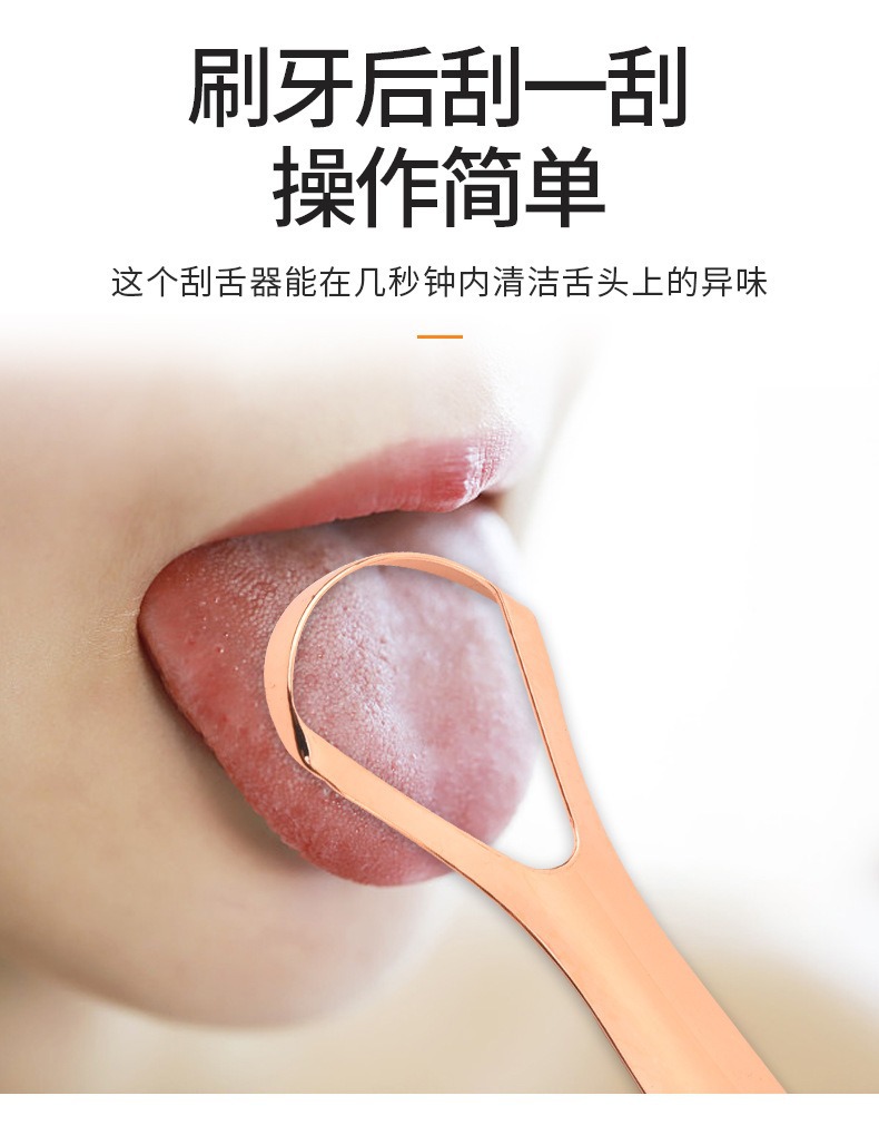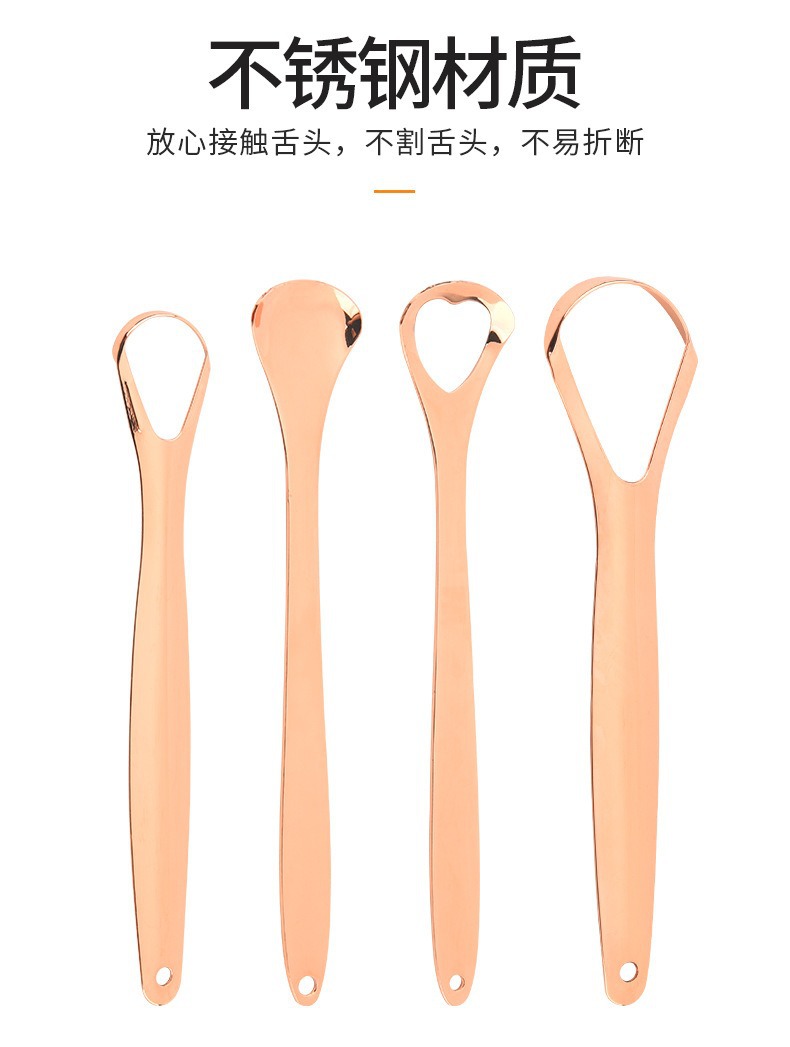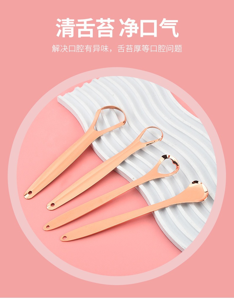跨境不锈钢玫瑰金刮舌器舌苔清洁器口腔清洁护理舌头刷刮舌苔器