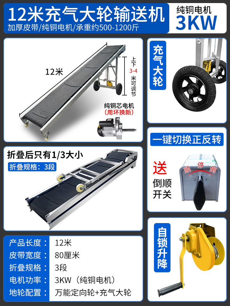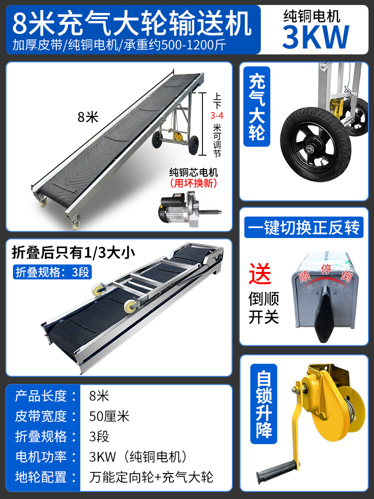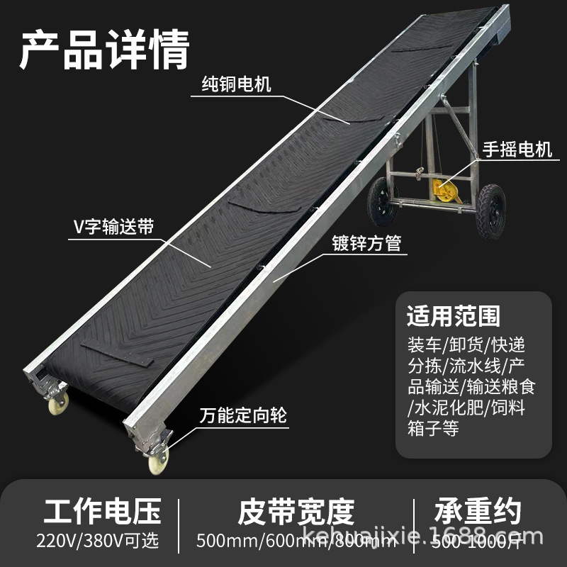 皮带输送机小型装车卸货神器电动升降移动传送带折叠式爬坡输送带