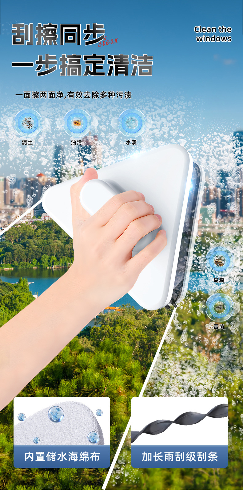 家政玻璃清洁刷双层高楼三角强磁家用双面中空刮水器清洁窗户工具