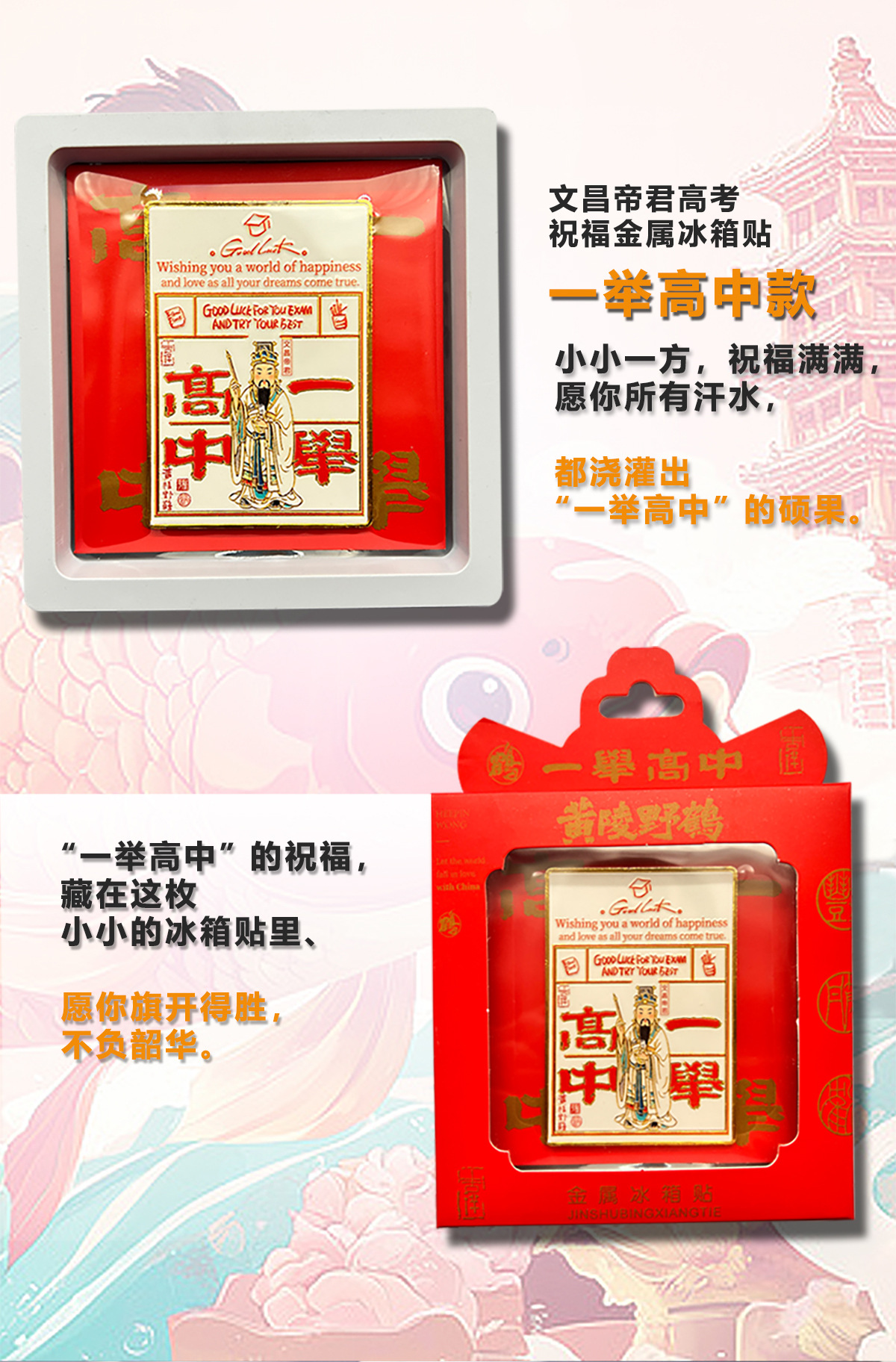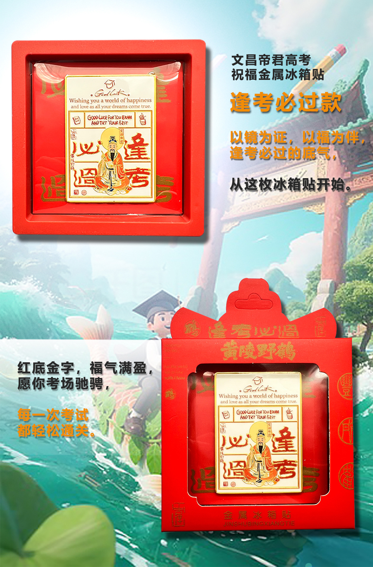 高考祝福金榜题名文创冰箱贴磁吸金属小礼品中国景区旅游盲盒礼物