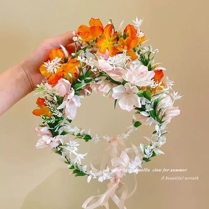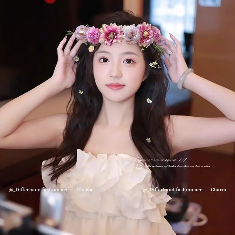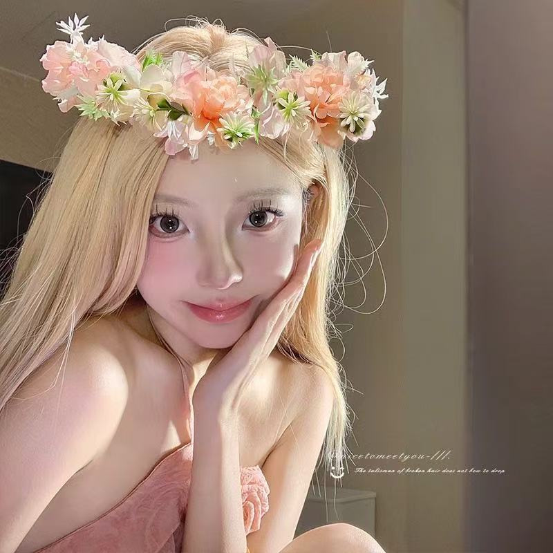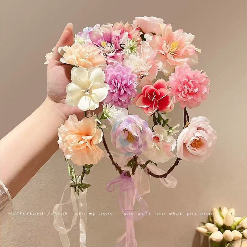 超仙花环头饰森系仿真花藤条发箍春夏旅游拍照头箍氛围感发饰发卡