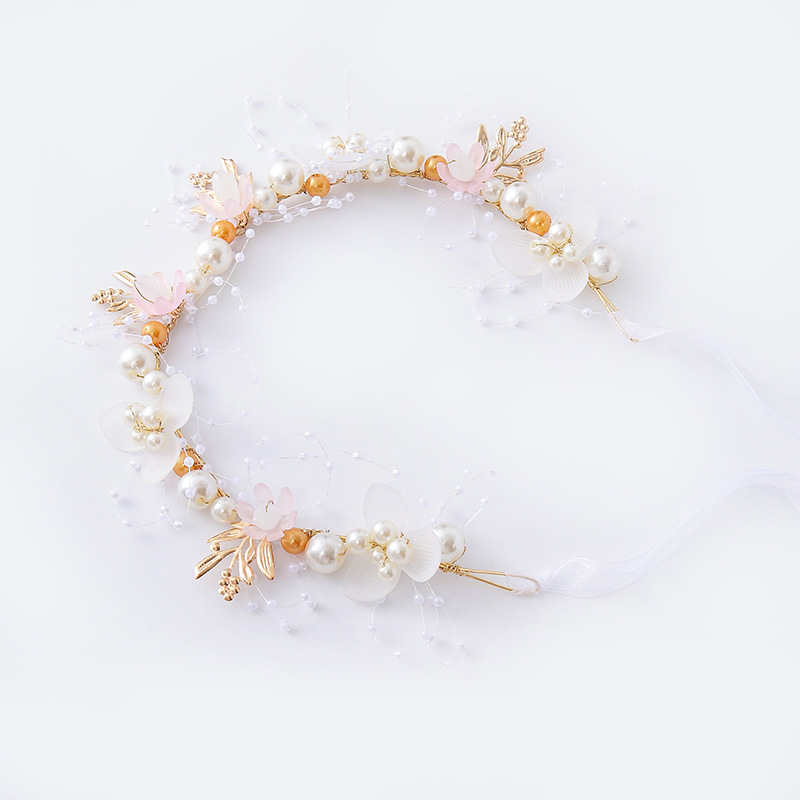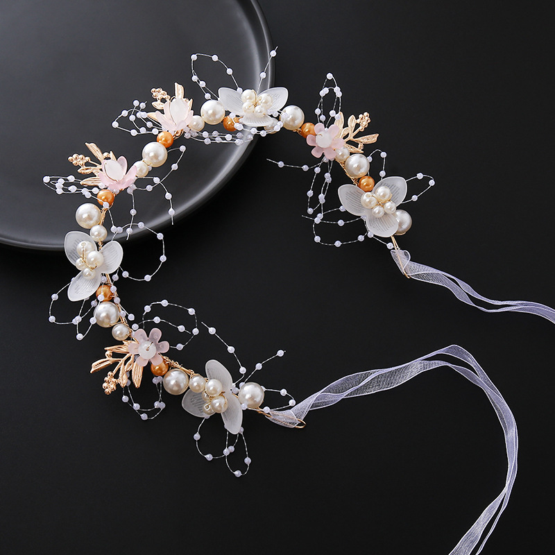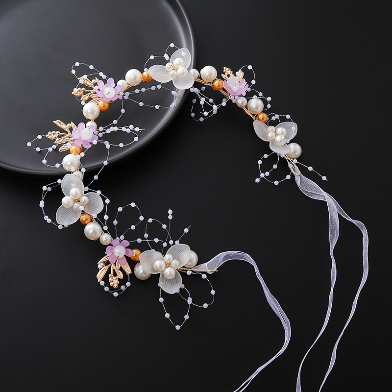 新娘发带珍珠花朵发带儿童花环超仙公主发饰头箍头饰丝带