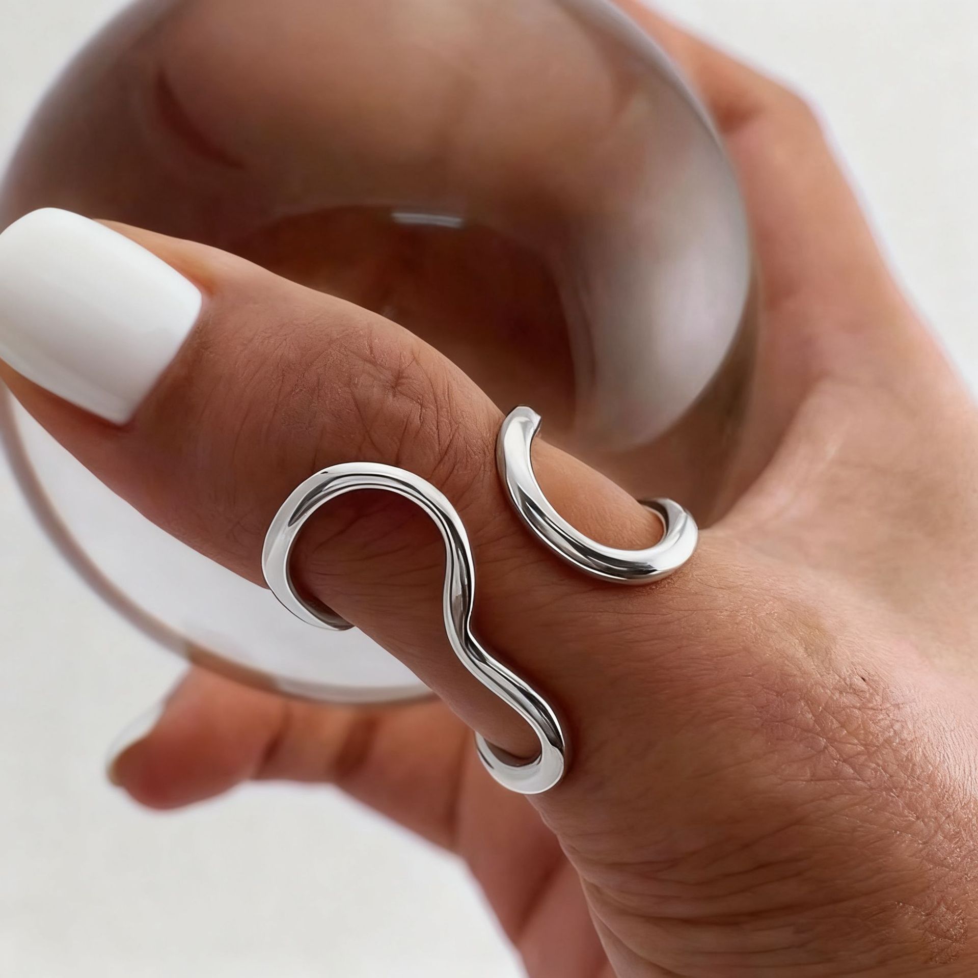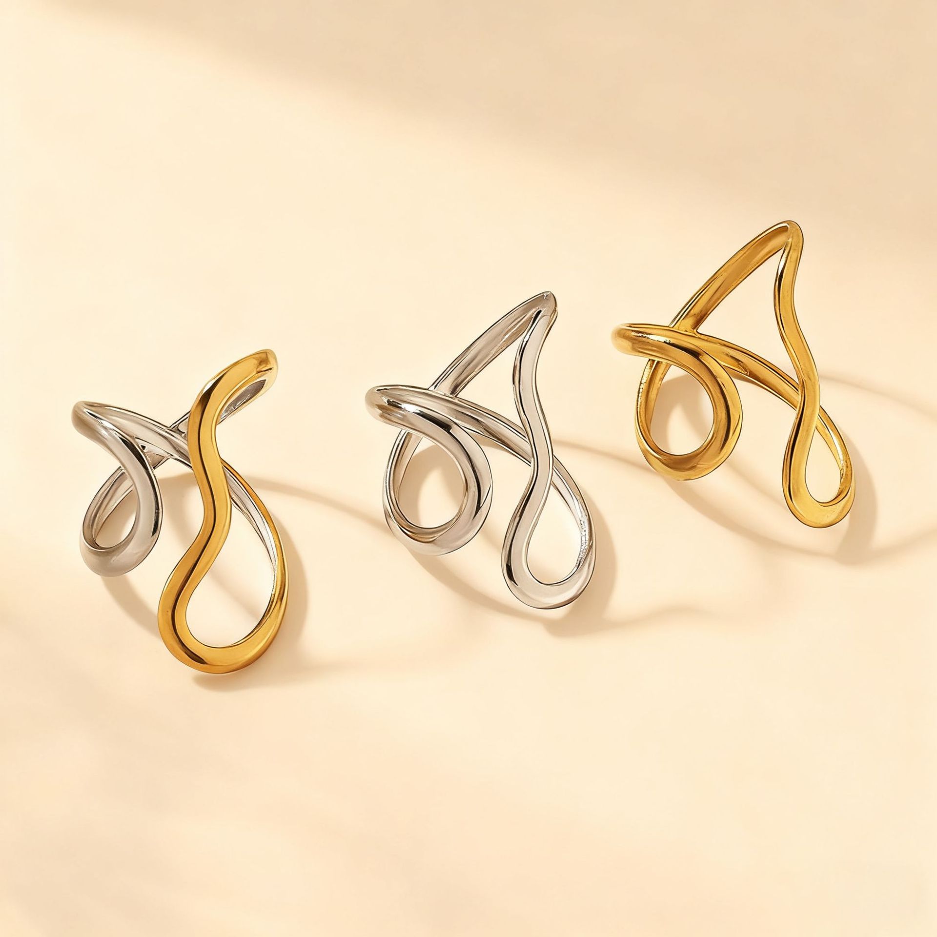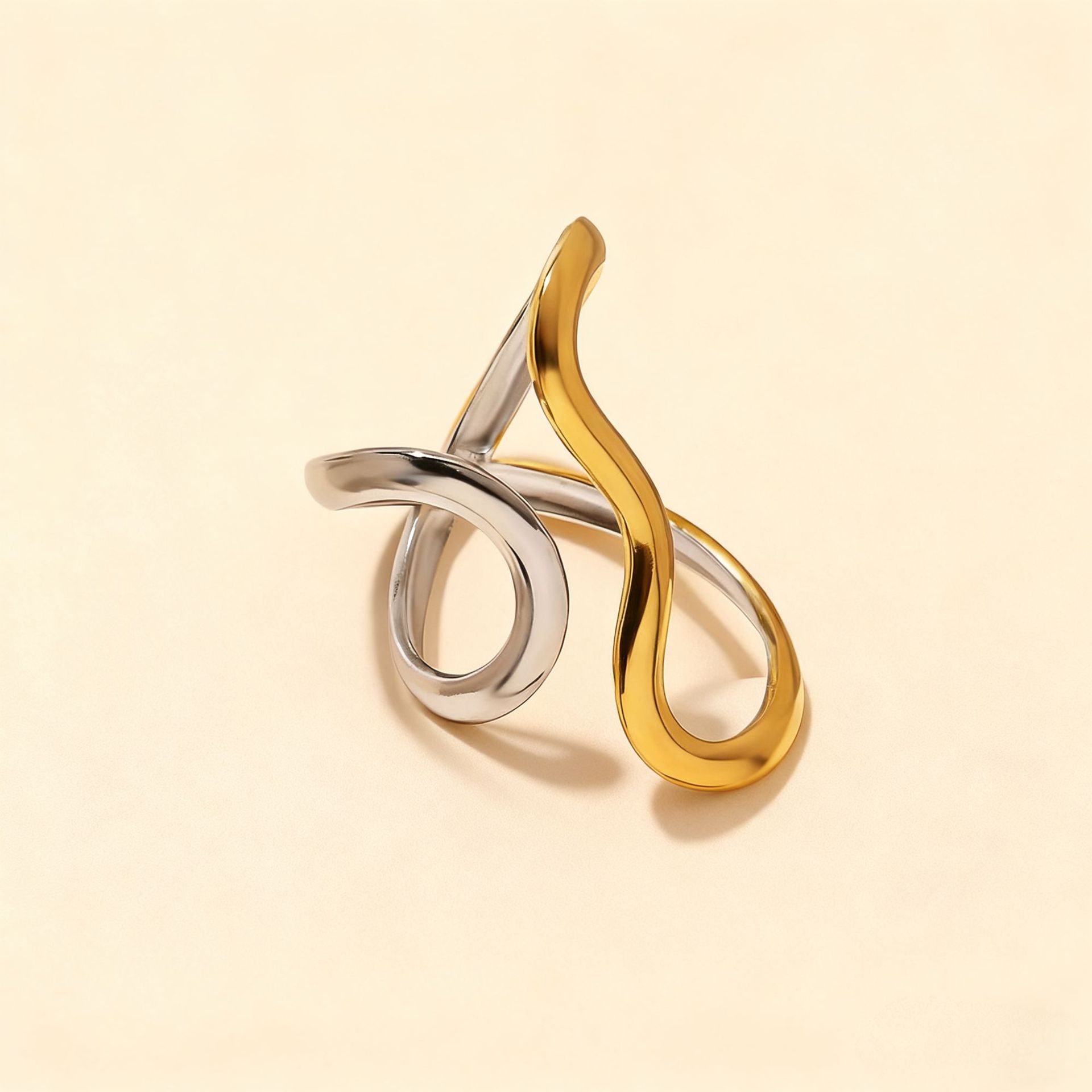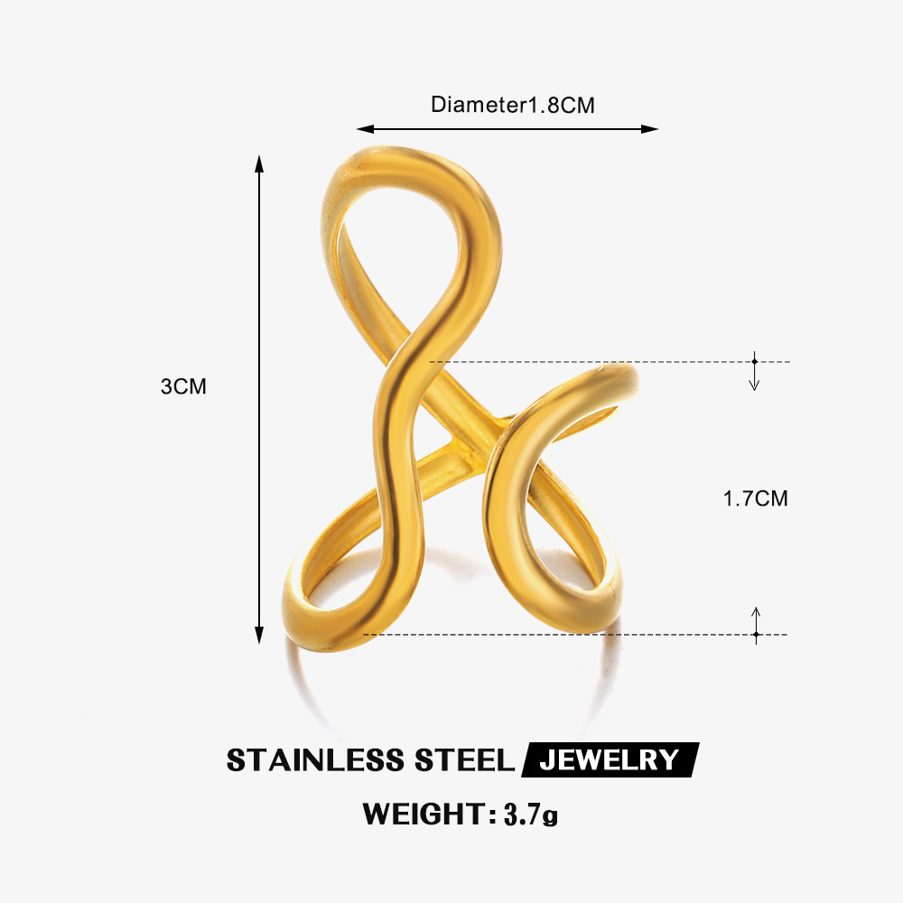 欧美跨境不锈钢戒指女轻奢高级感不规则线条镀金开口戒指首饰套装