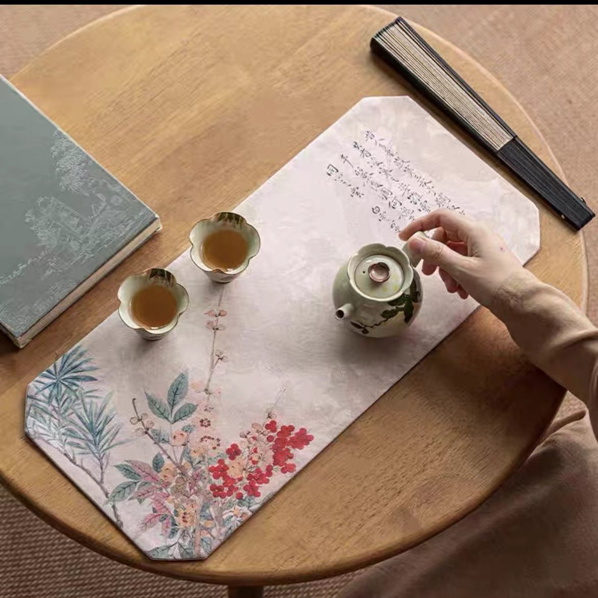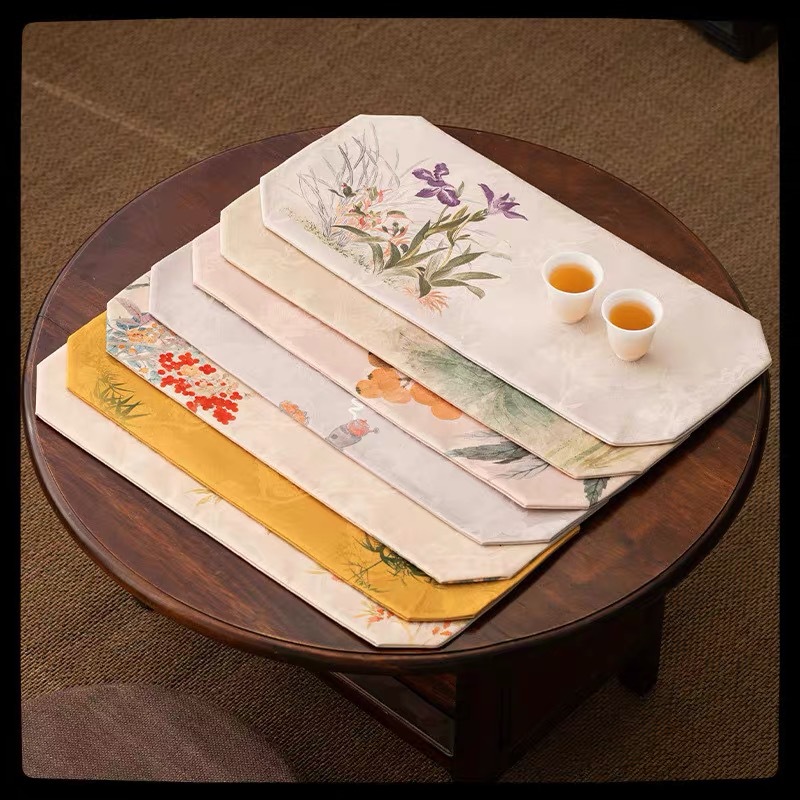 中式禅意小茶席茶桌隔热防水布垫子中国风香云纱布艺双面干泡垫
