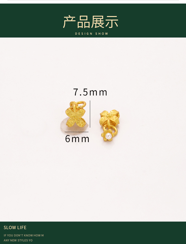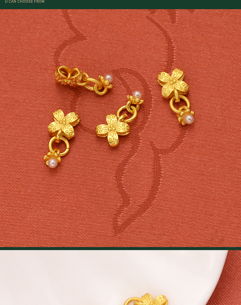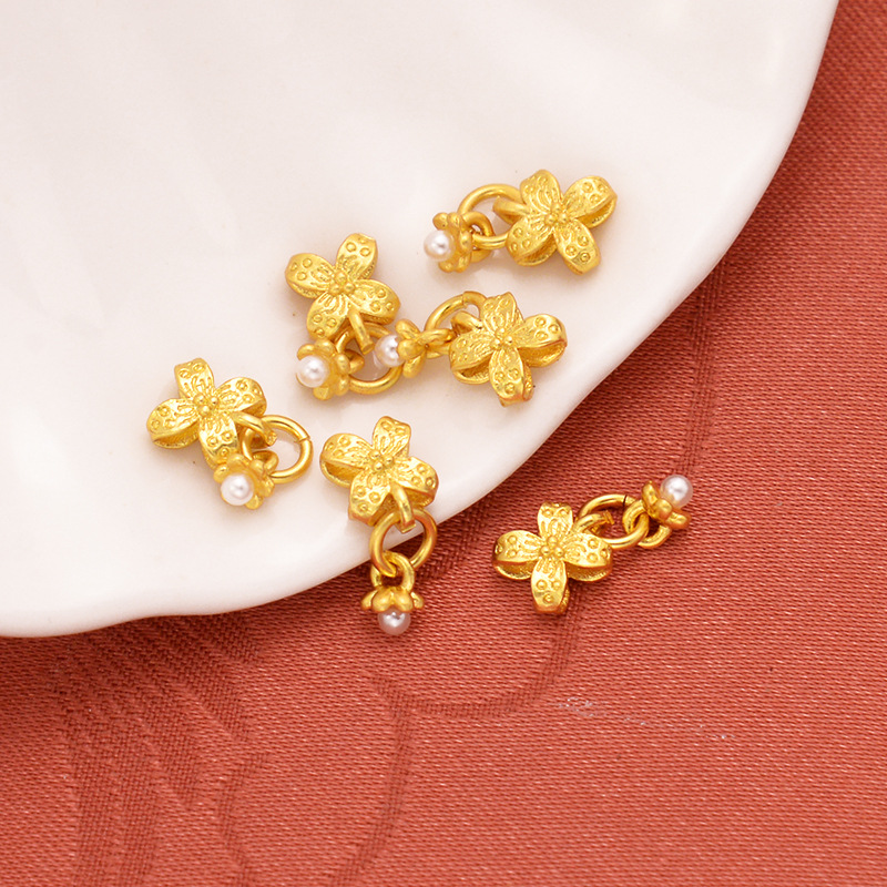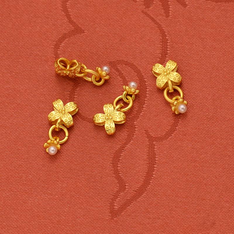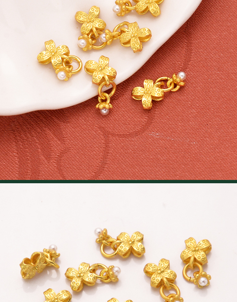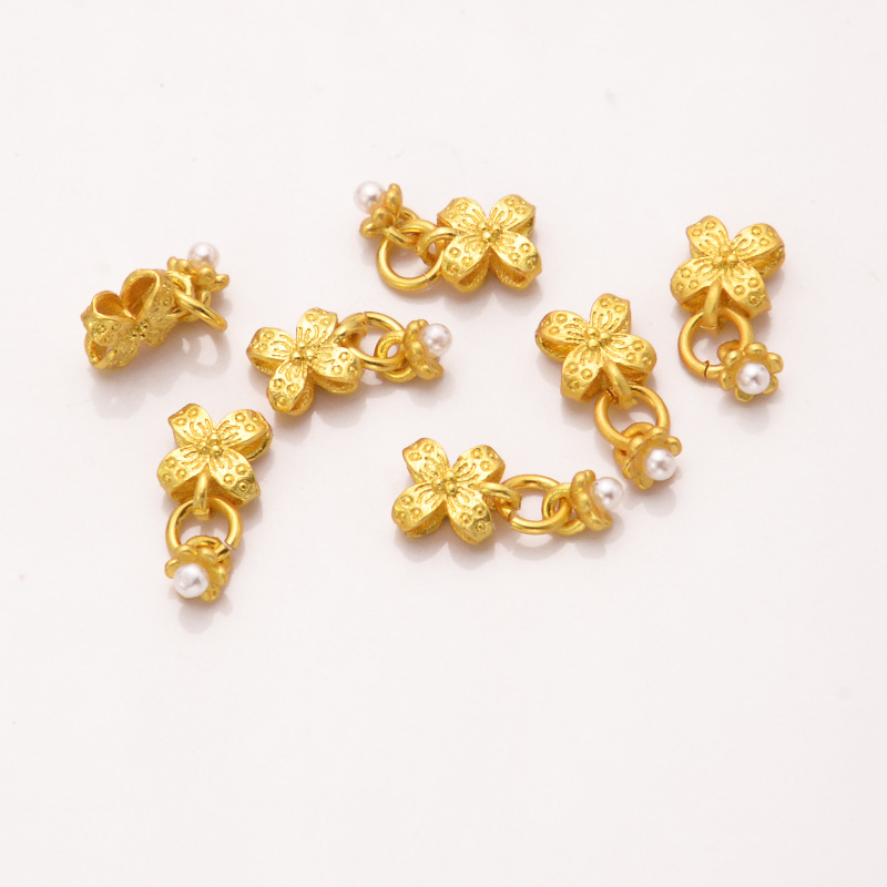 强保色沙金配件diy饰品古法金珍珠四叶草流苏挂件手链手绳耳饰