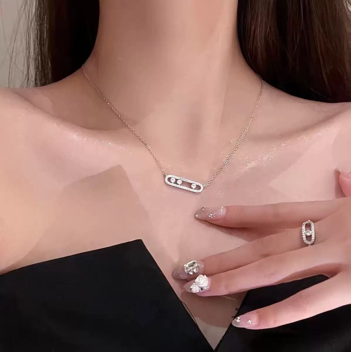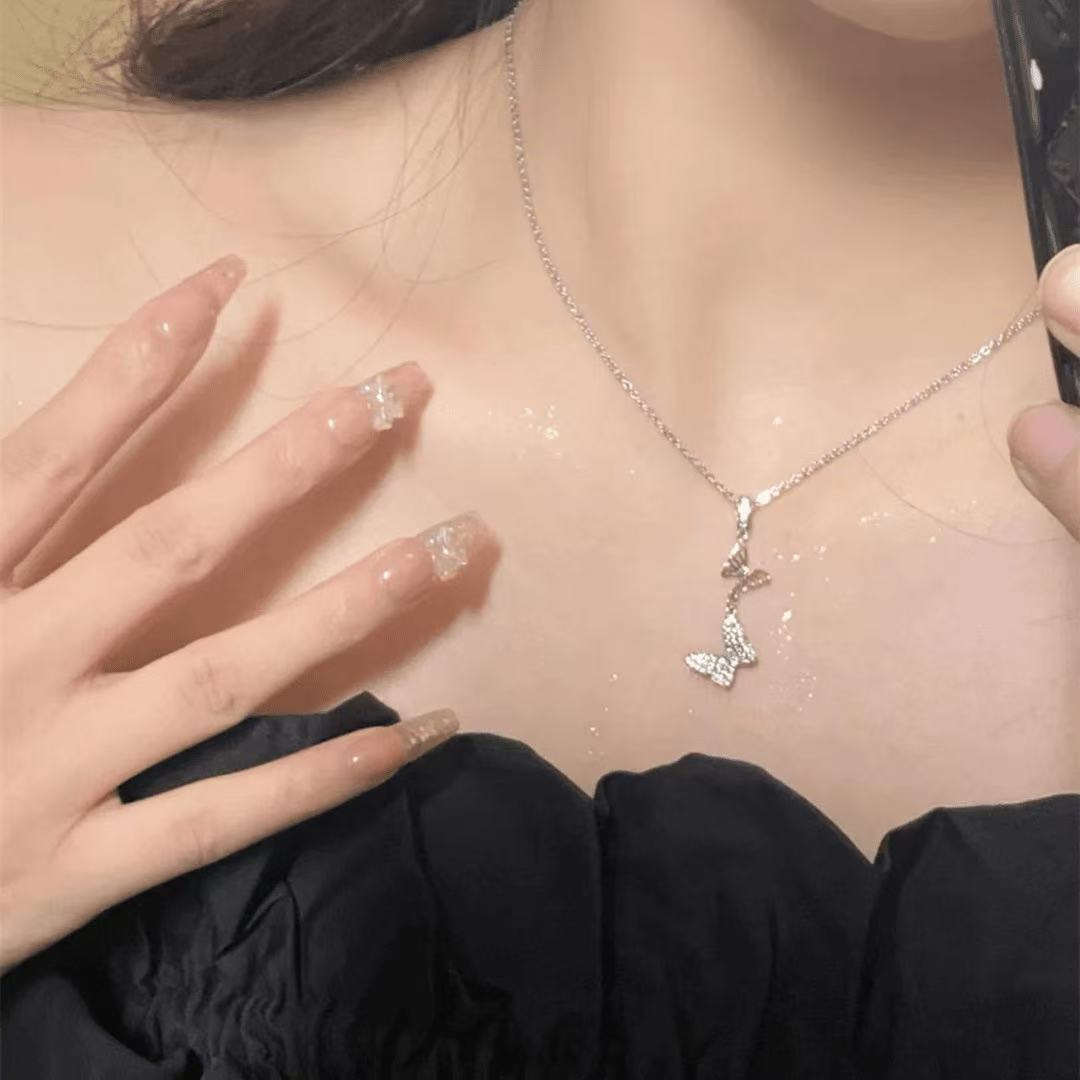 新款韩版花蝴蝶流苏钛钢项链女镶嵌锆石时尚简约风锁骨链饰品批发
