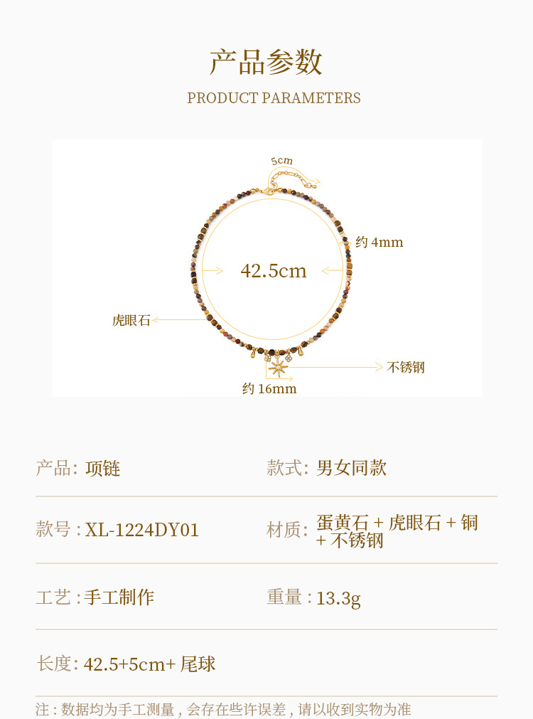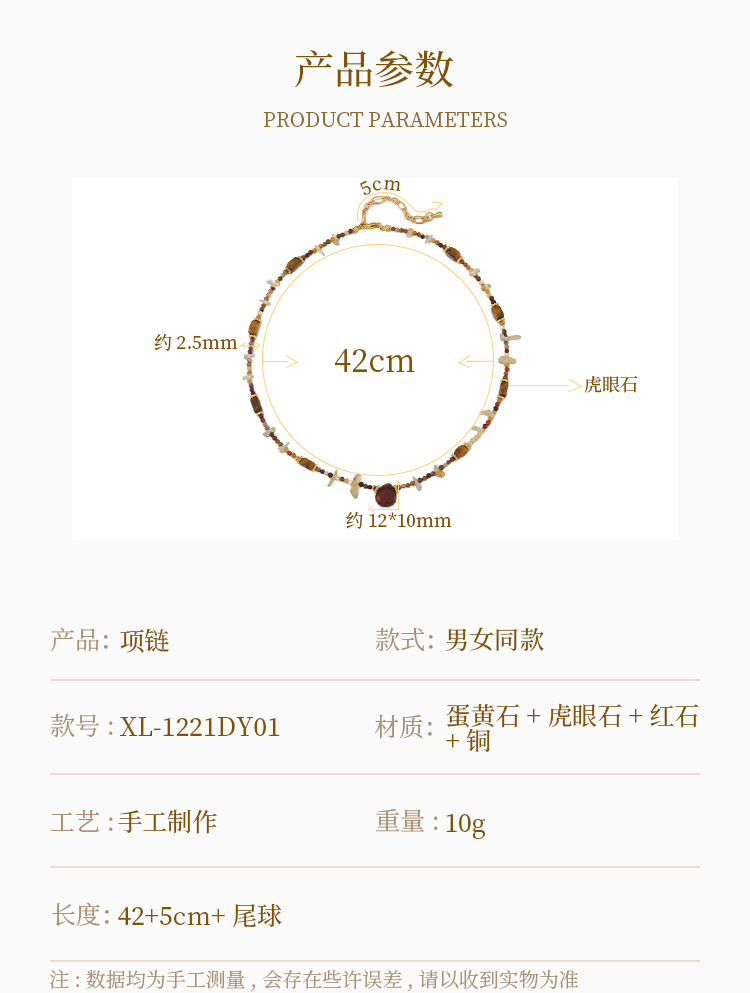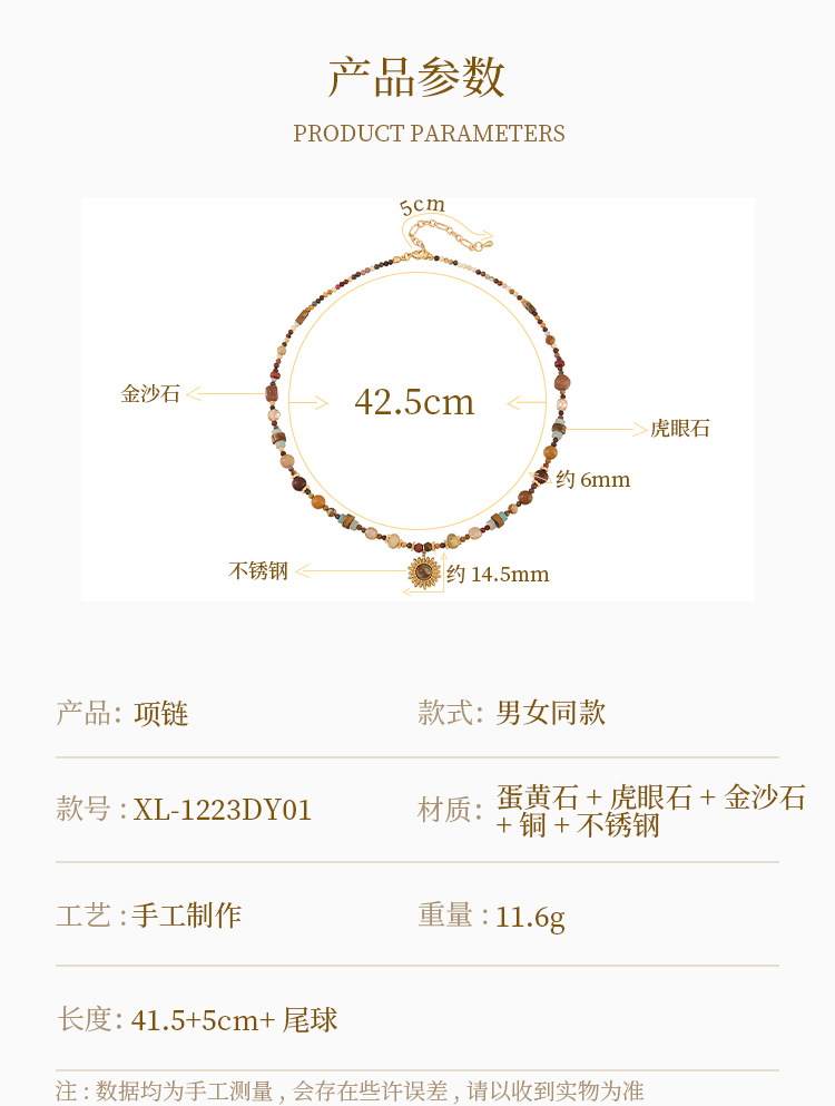 美拉德系手工老钱风虎眼石串珠项链高级感轻奢原创设计秋冬毛衣链
