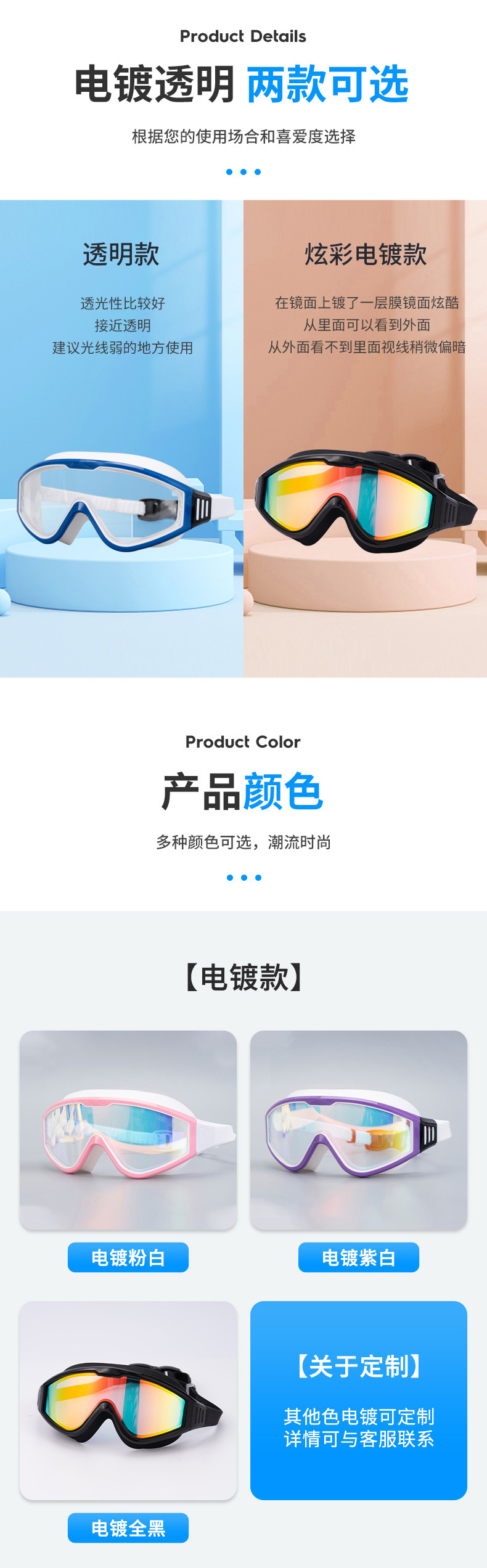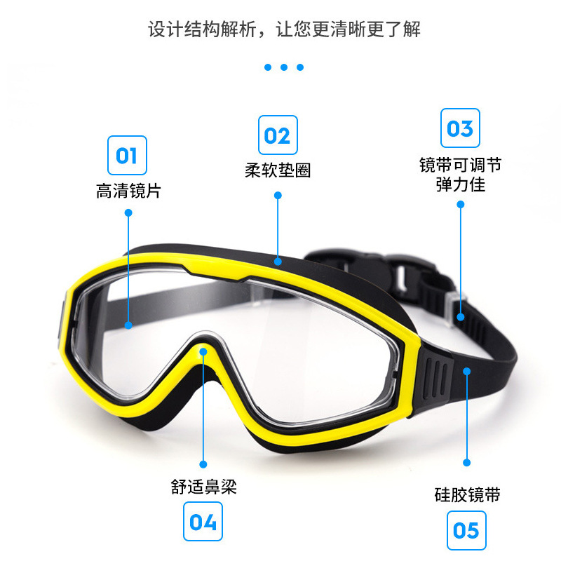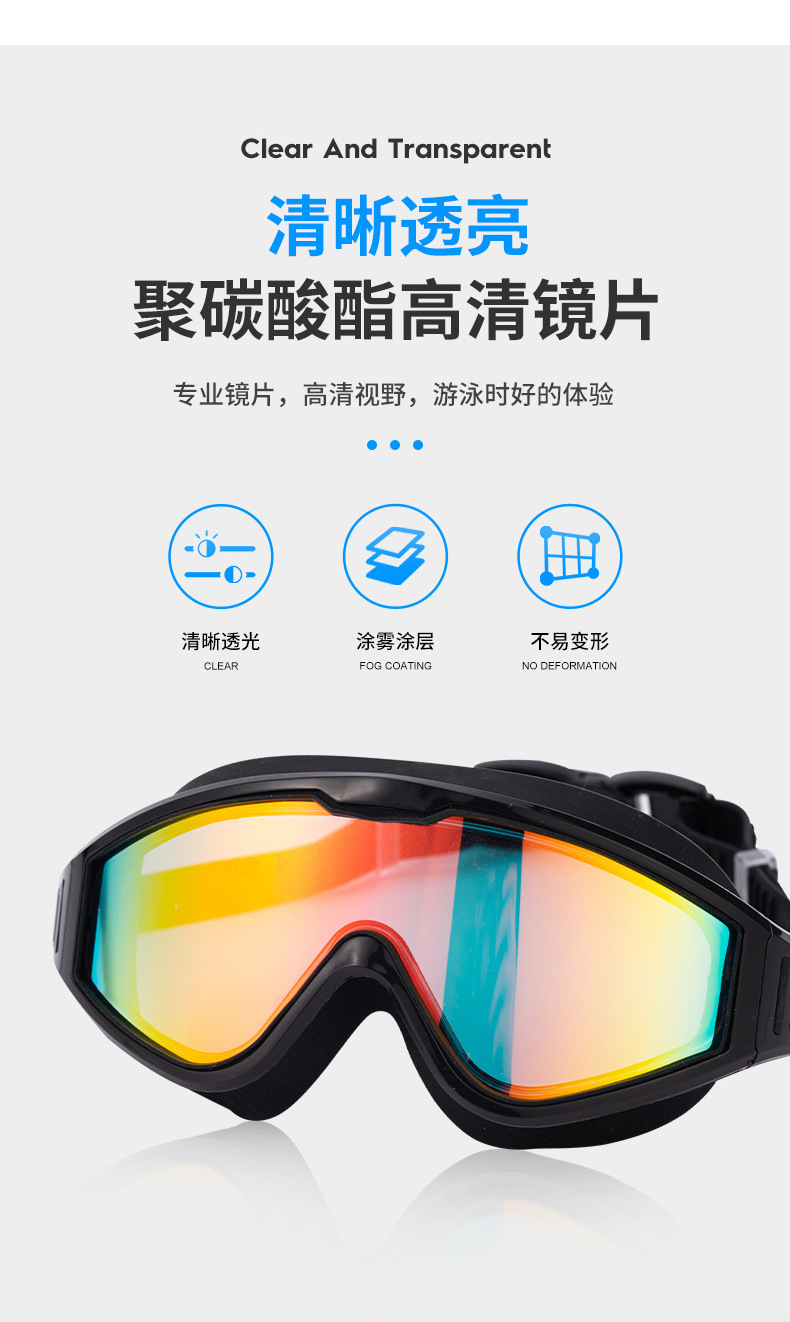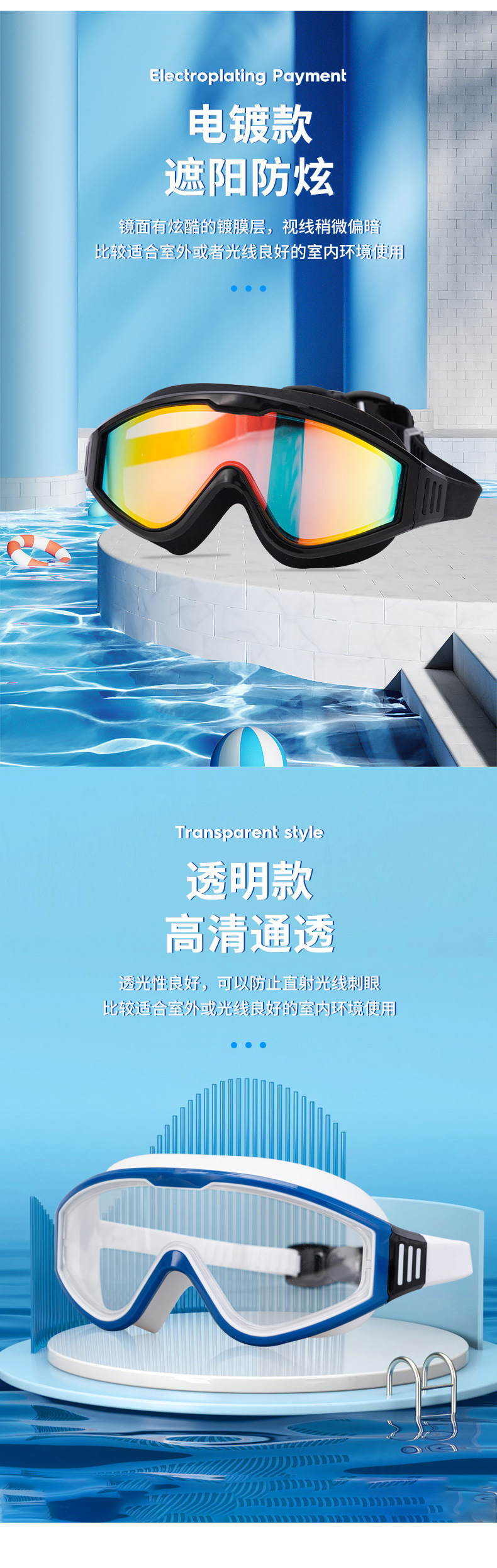 跨境成人大框泳镜硅胶防雾高清电镀遮阳透明款游泳眼镜护目游泳镜