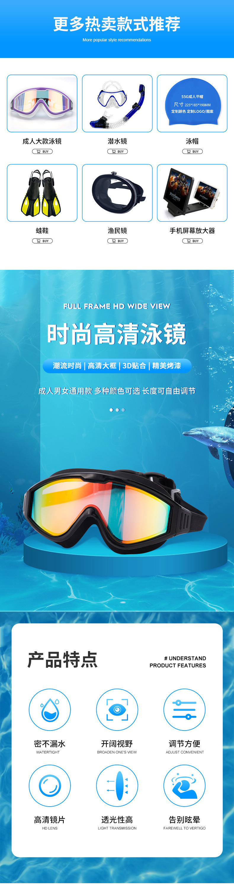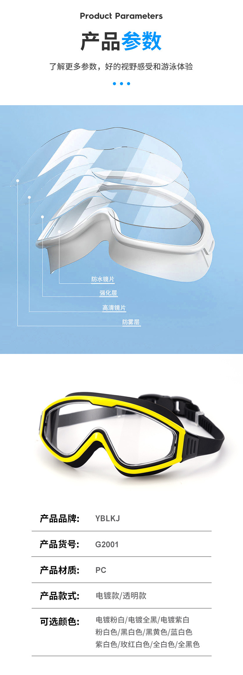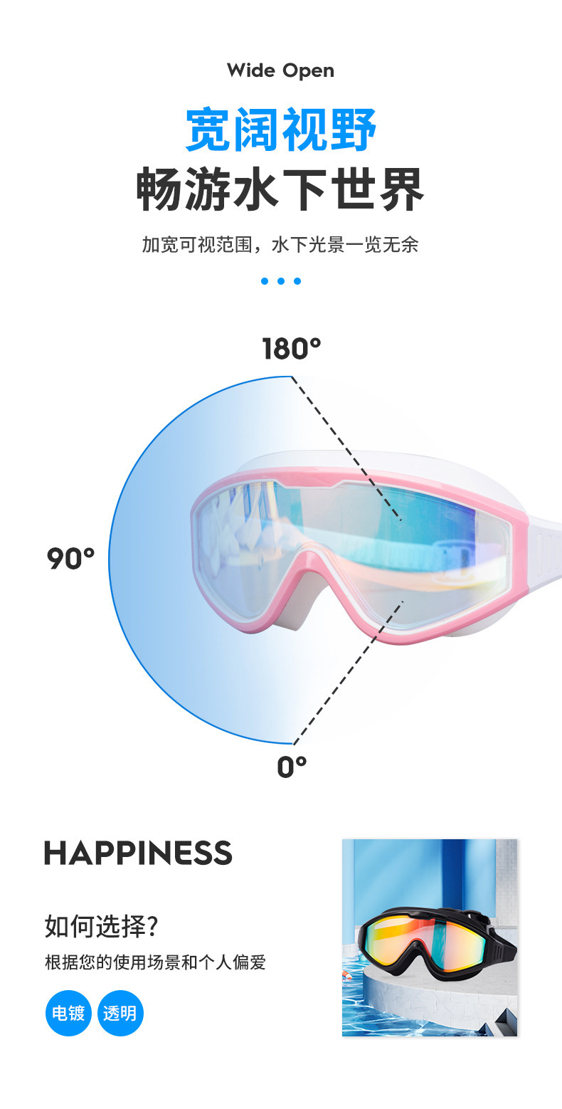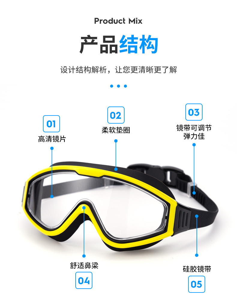 跨境成人大框泳镜硅胶防雾高清电镀遮阳透明款游泳眼镜护目游泳镜
