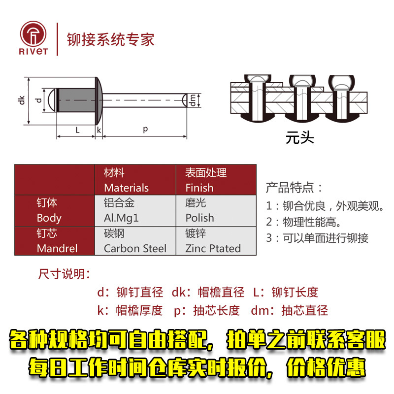 铝制开口型平圆头抽芯铆钉 拉铆钉gb12618 装潢钉铝拉钉工厂现货