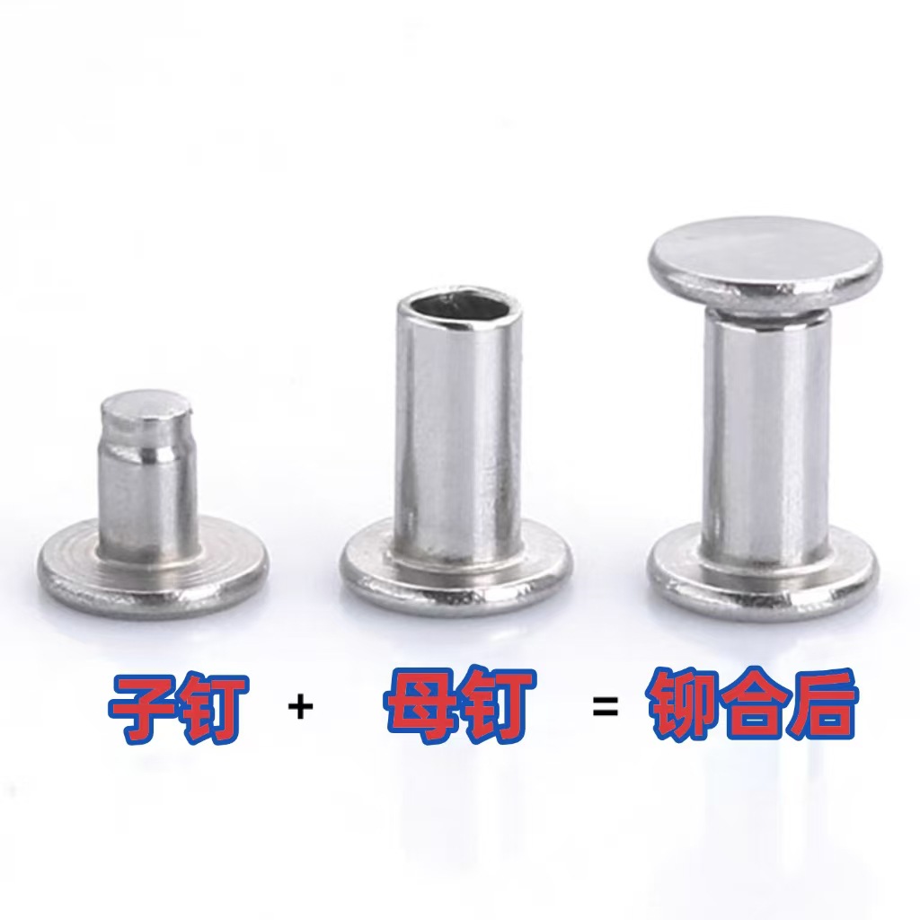对敲子母扣不锈钢半空心铆钉子母螺丝空心铆钉铁黄紫铜铝可定柳丁