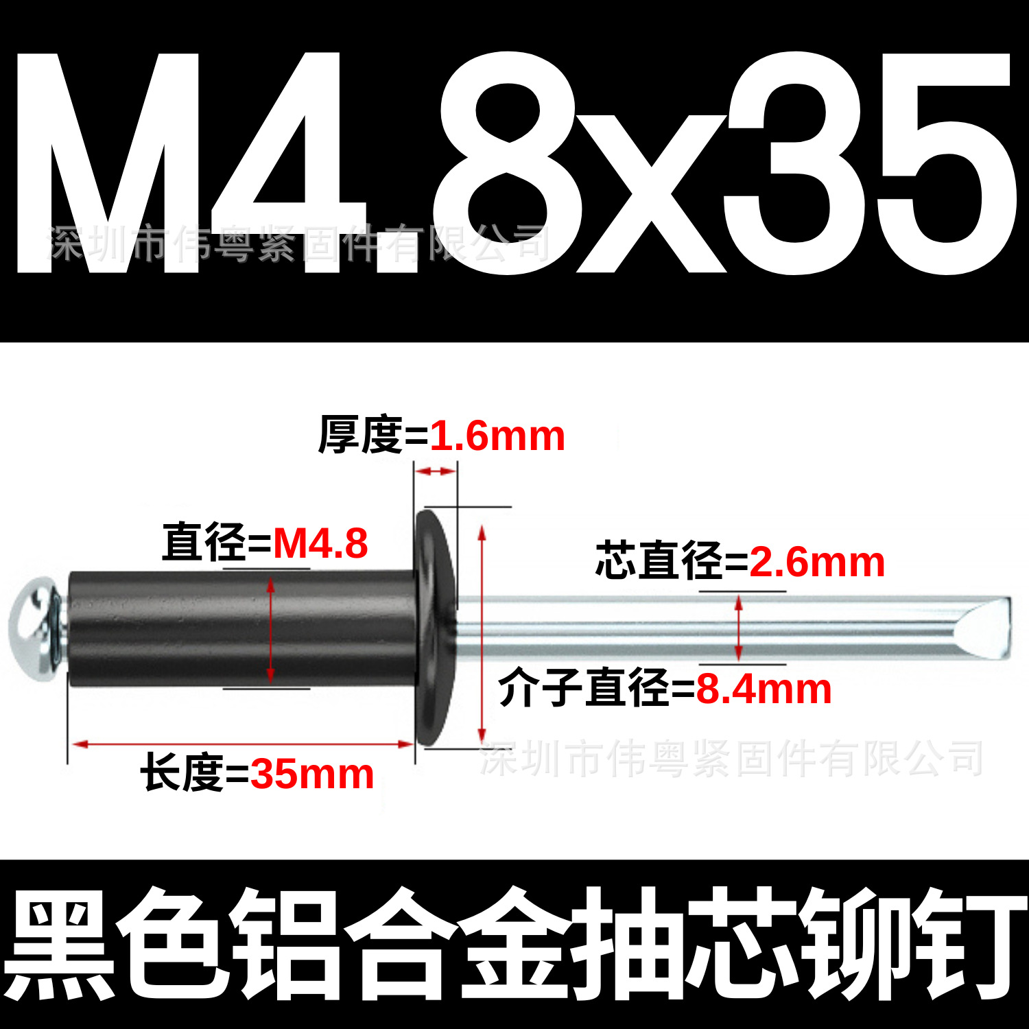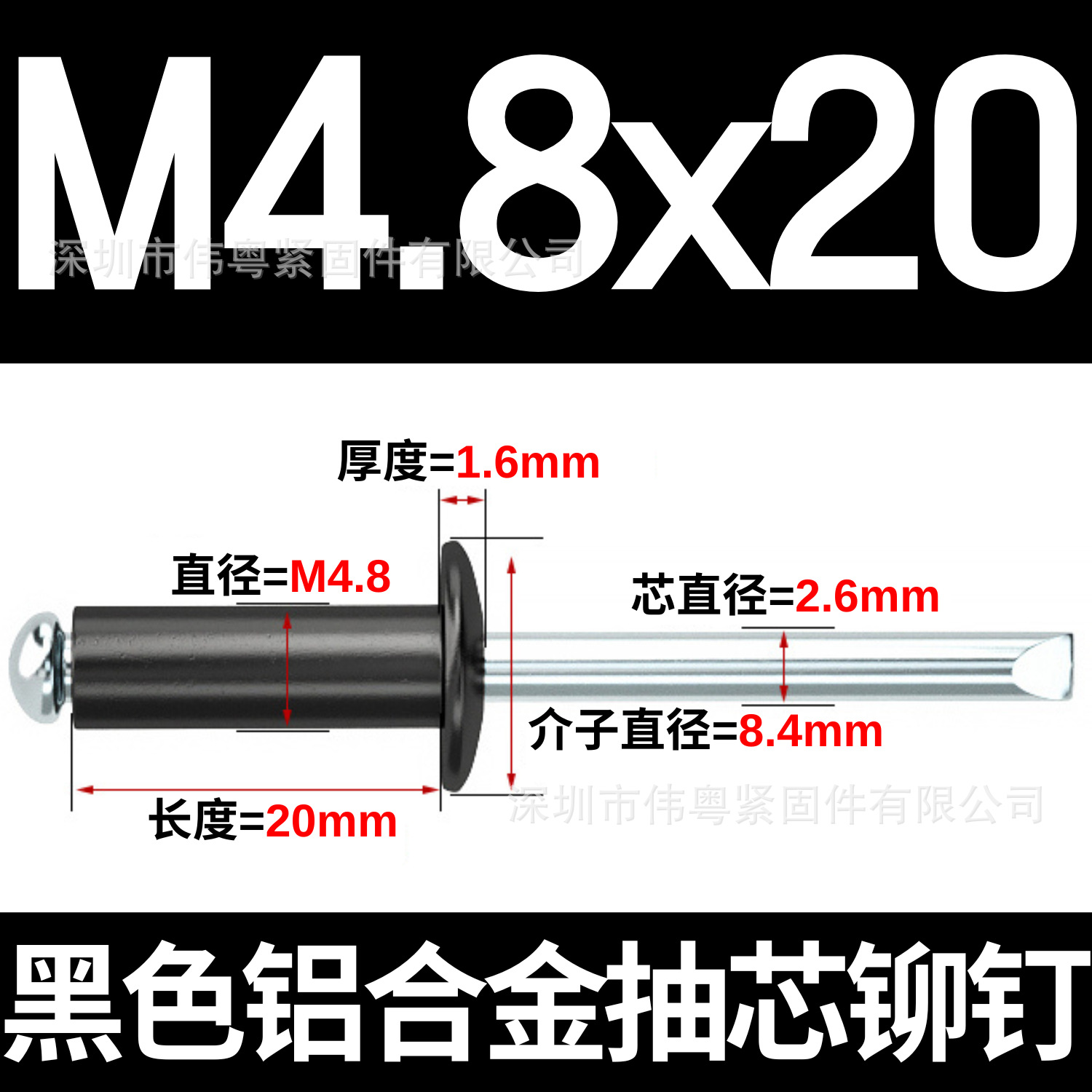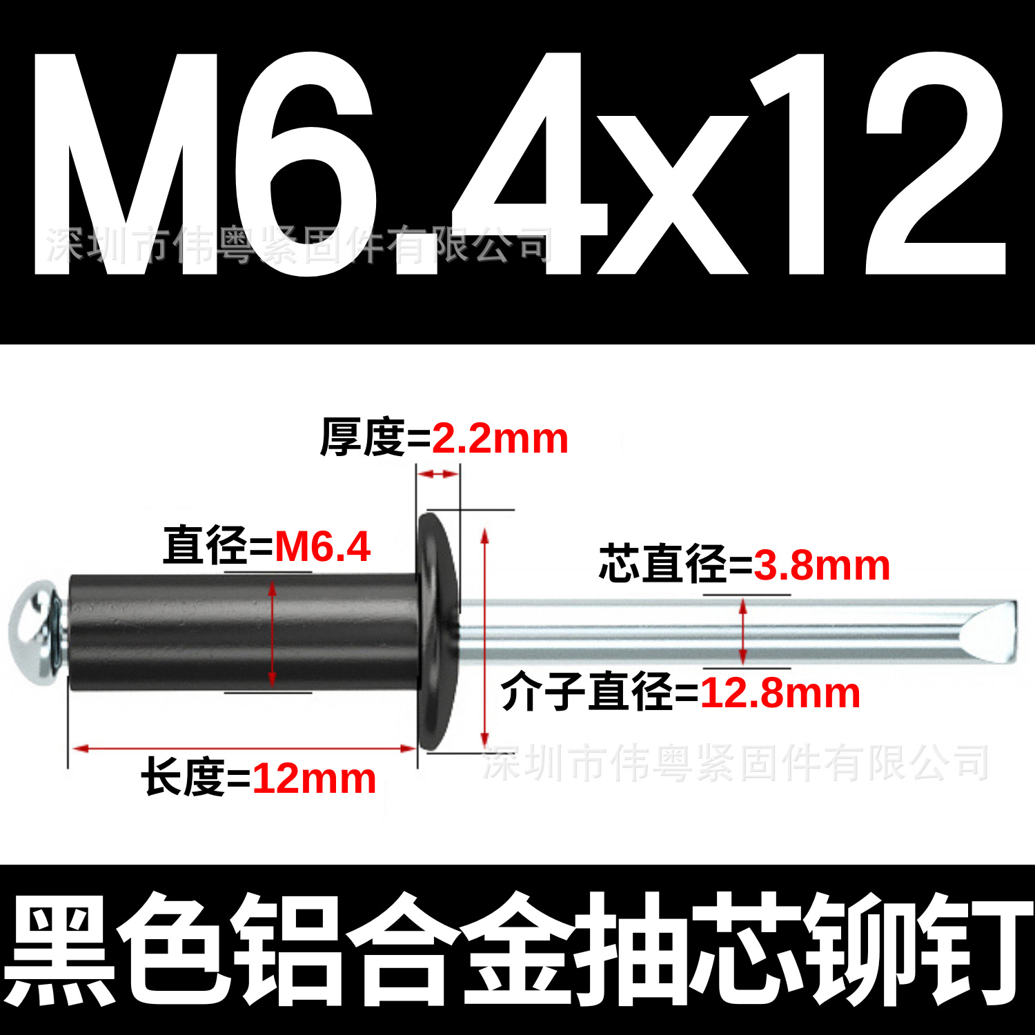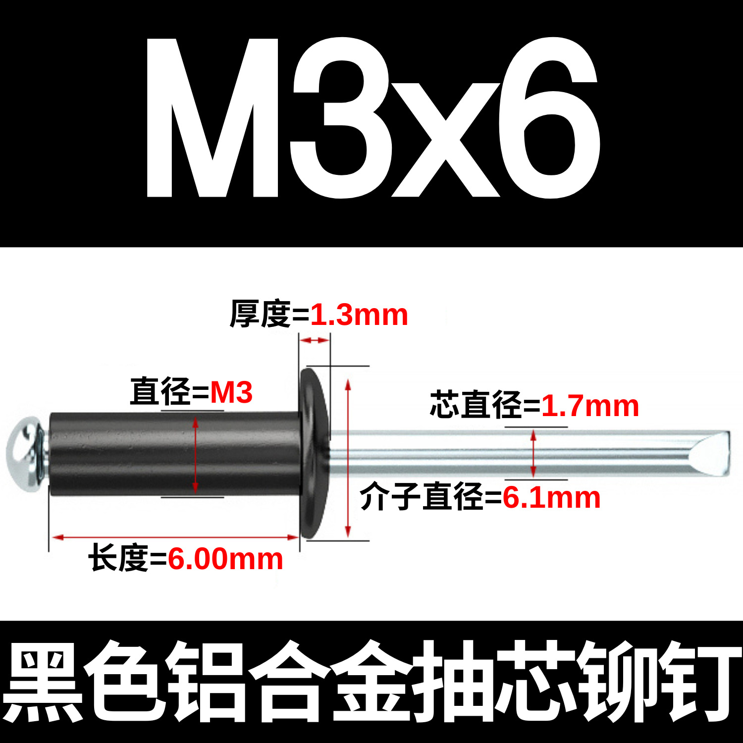 批发铝铁拉钉 铝合金门窗固定镀锌圆头烤漆黑色抽芯铆钉M2.4-M6.4