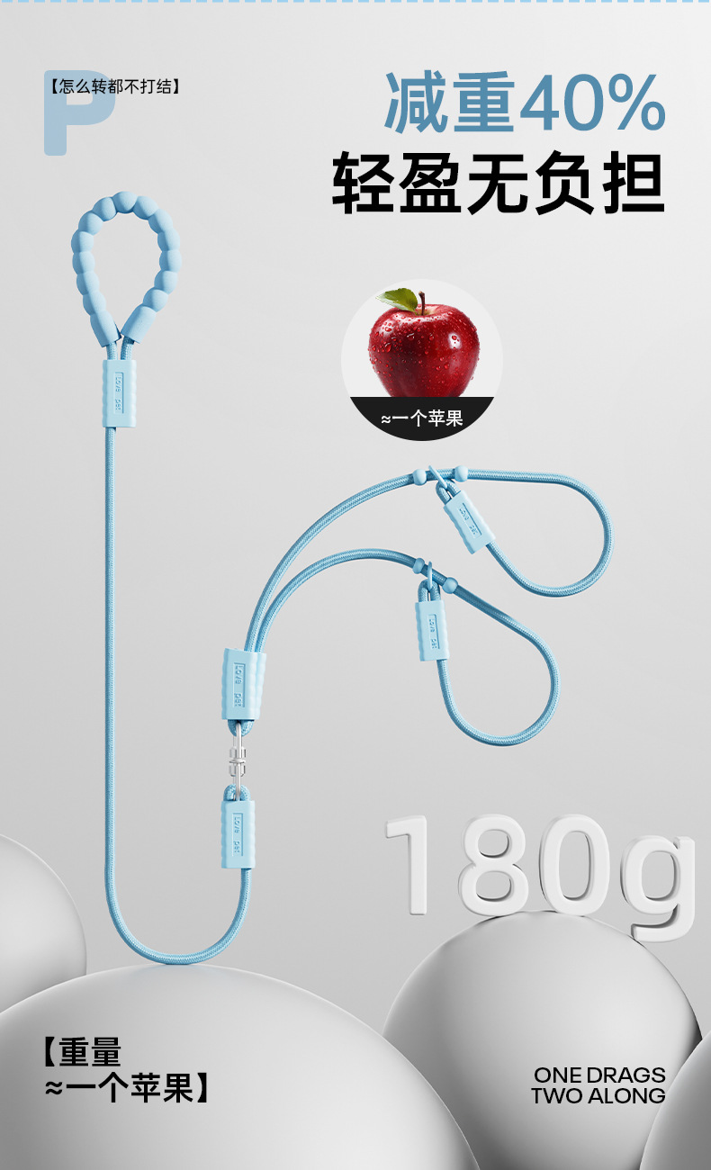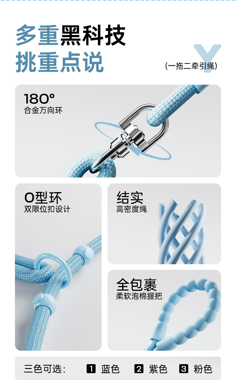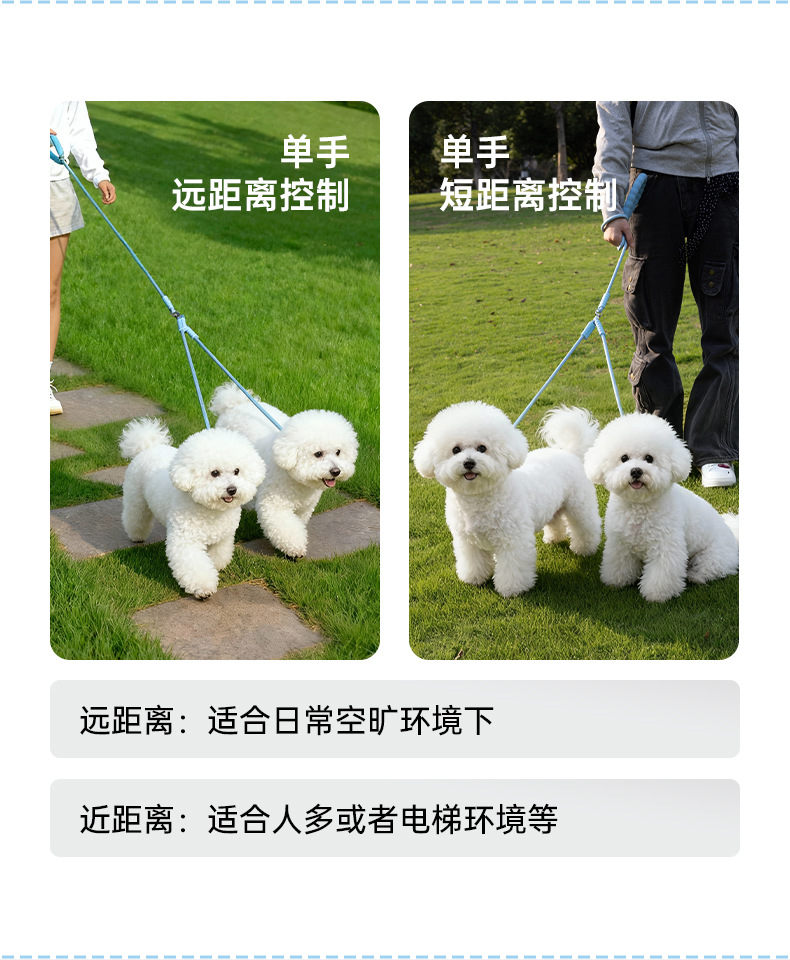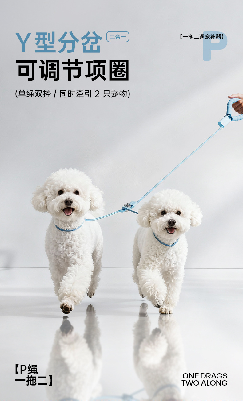新款一拖二遛狗牵引绳户外出行中小型犬泰迪比熊遛狗绳p绳防挣脱