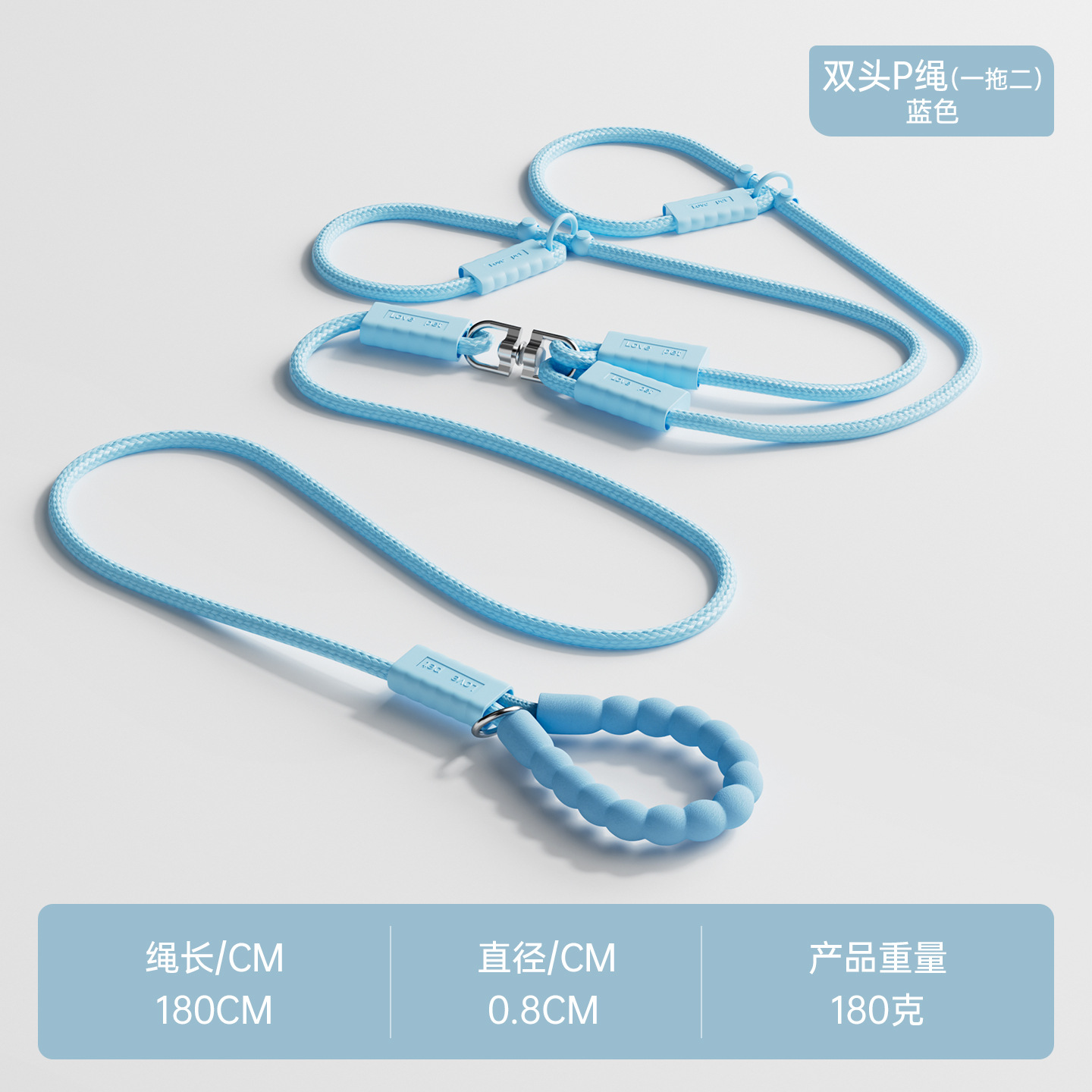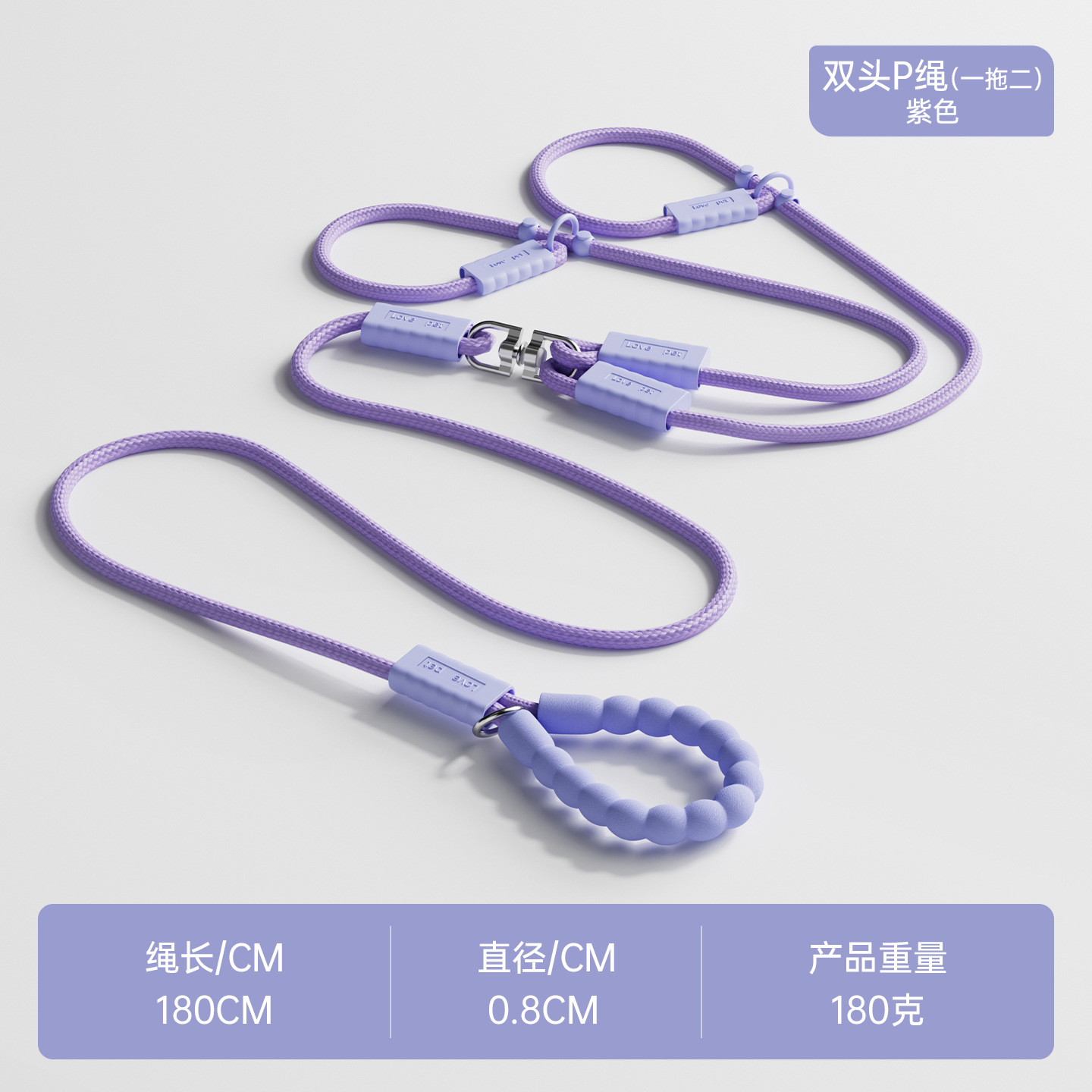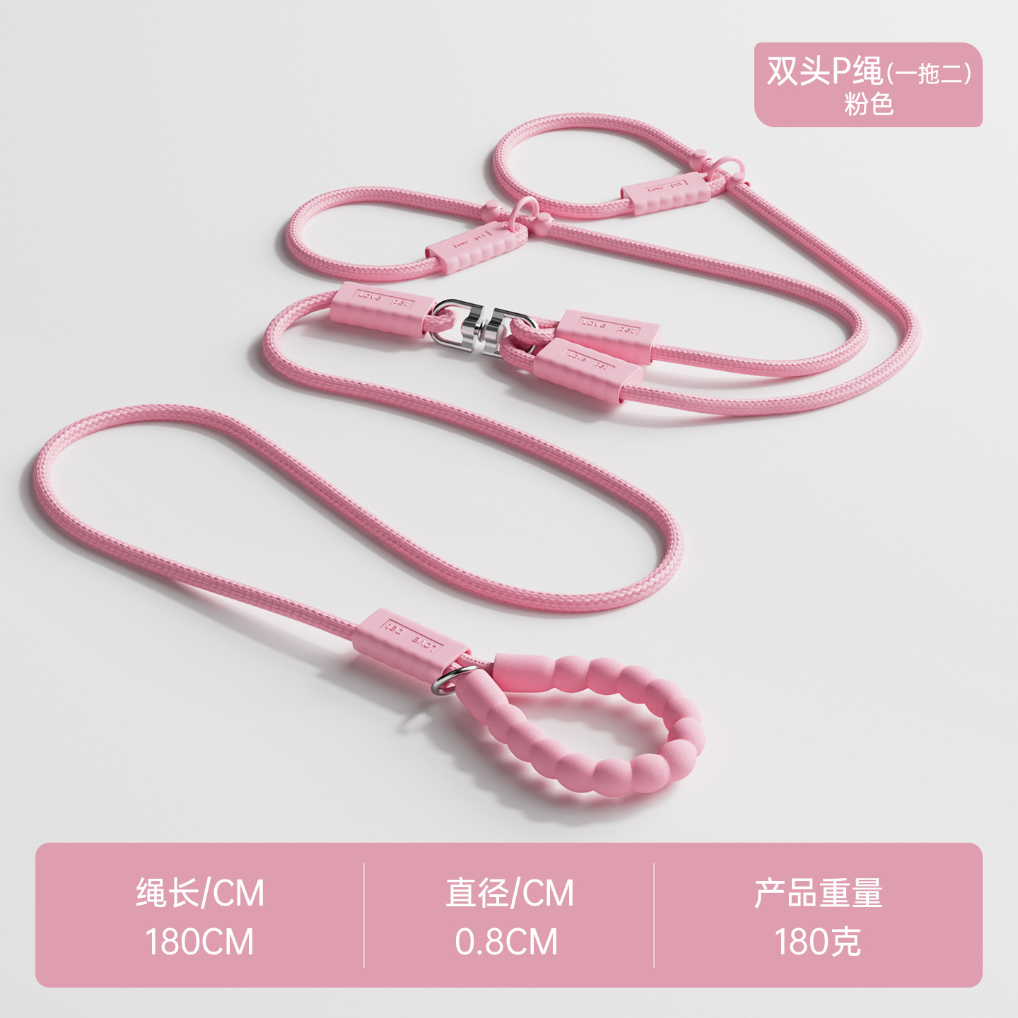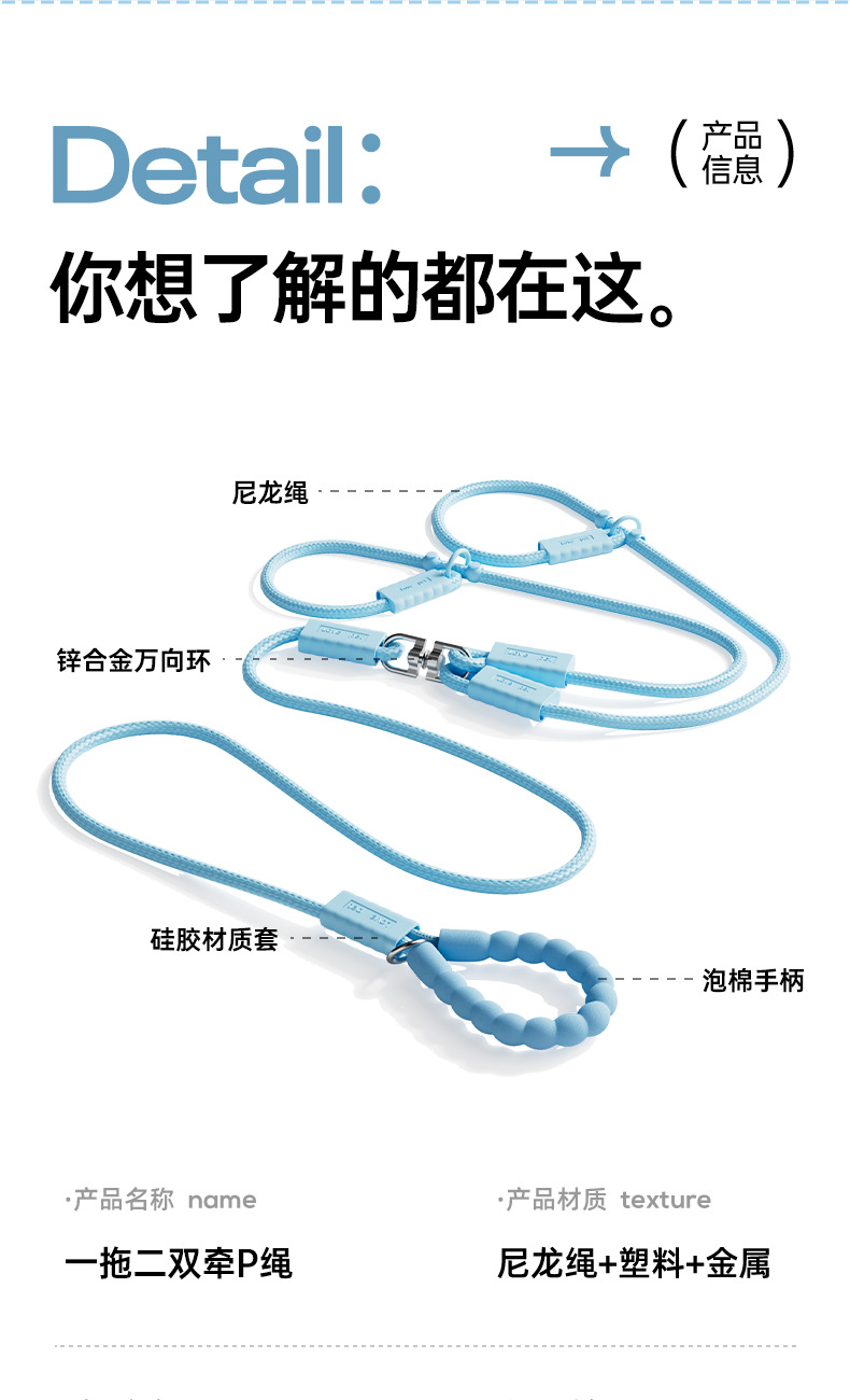 新款一拖二遛狗牵引绳户外出行中小型犬泰迪比熊遛狗绳p绳防挣脱