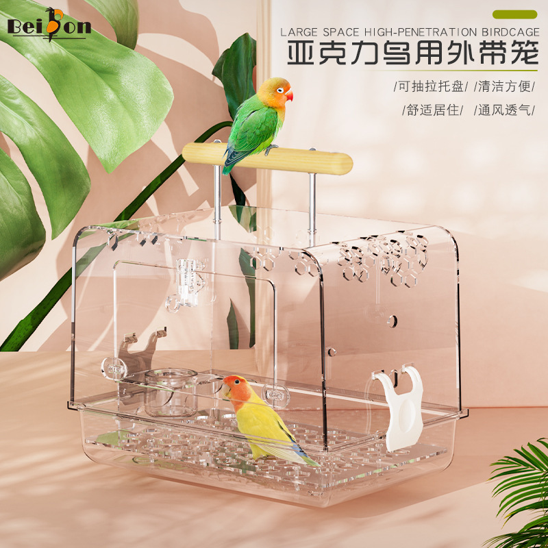 鹦鹉笼鹦鹉外出笼亚克力鸟笼子新款外带外出包便携大号玄凤鸟用
