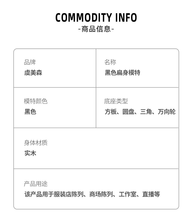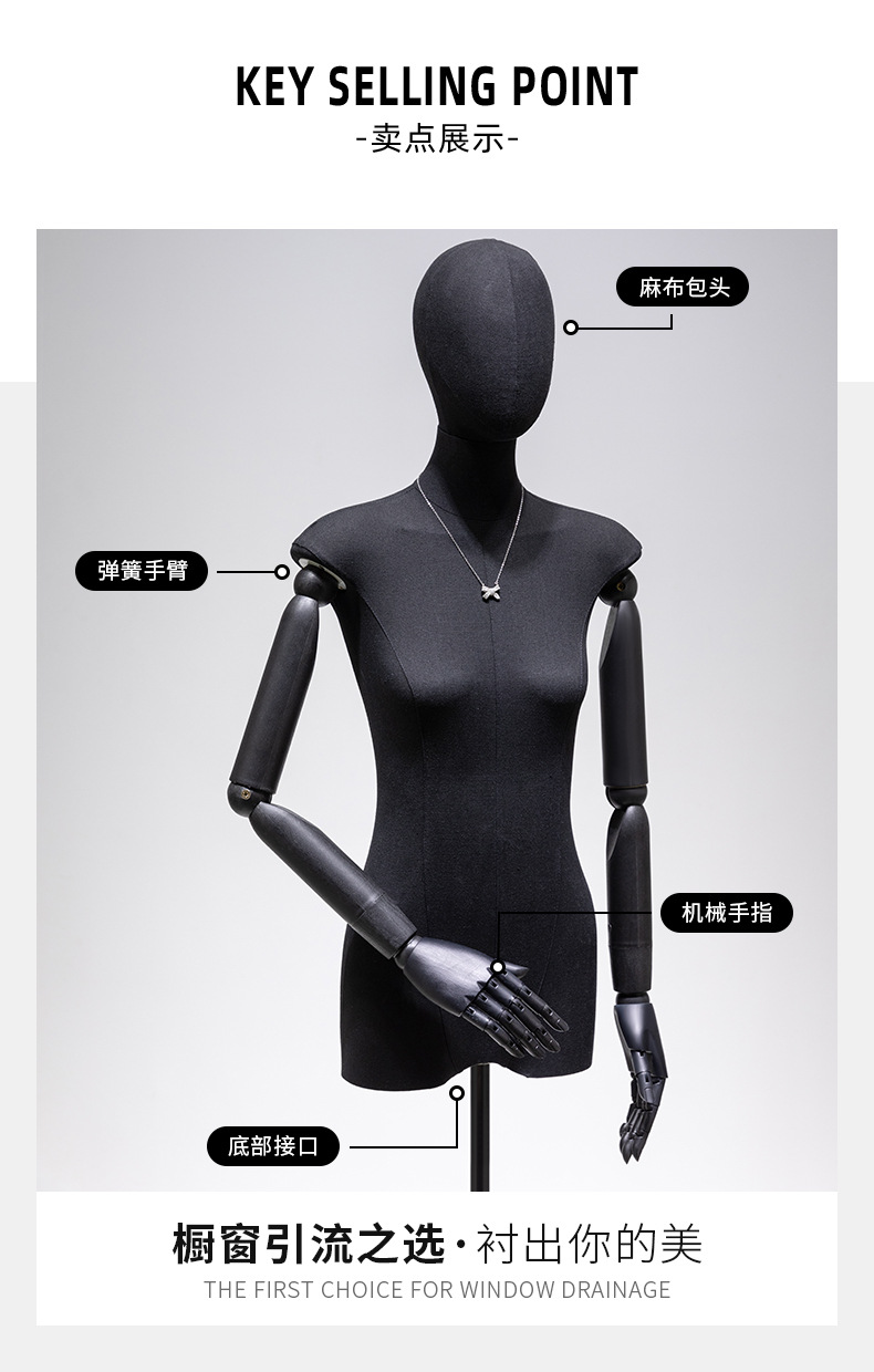 黑色模特展示架女装半身人偶假人全身宽肩服装店橱窗扁身模特道具