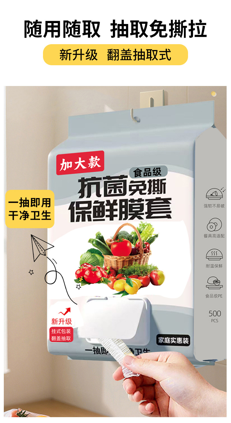 翻盖保鲜膜套食品级一次性保鲜罩防尘保鲜松紧碗罩【翻盖抽取式】